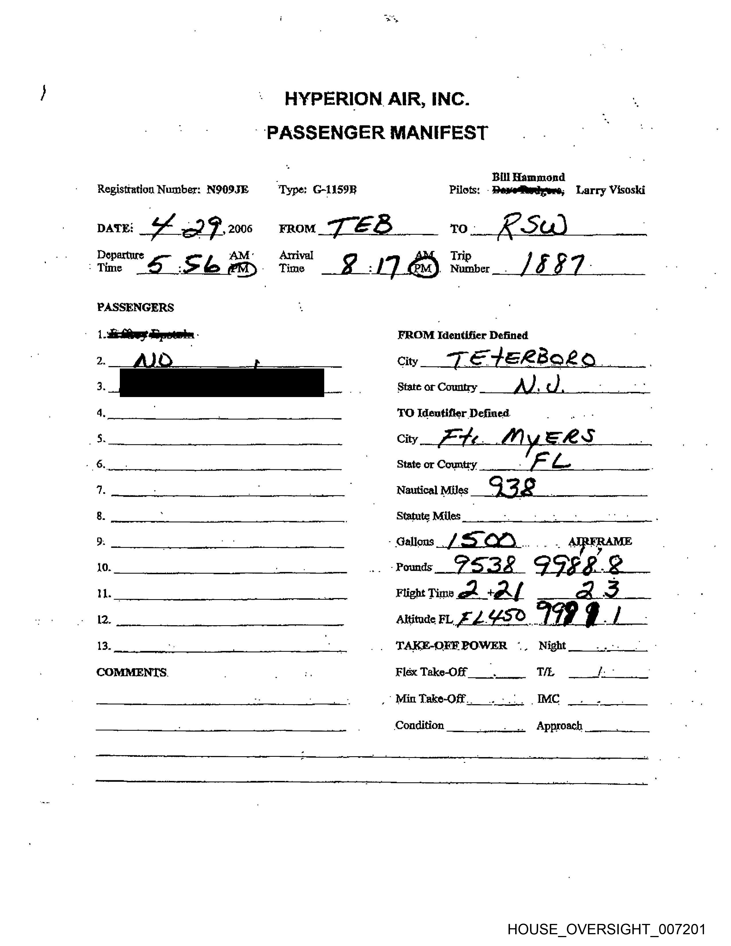 Registration Number: N909JE ‘Type: G+-1159B Pilots: .. Beye Rodgers, Larry Visoski