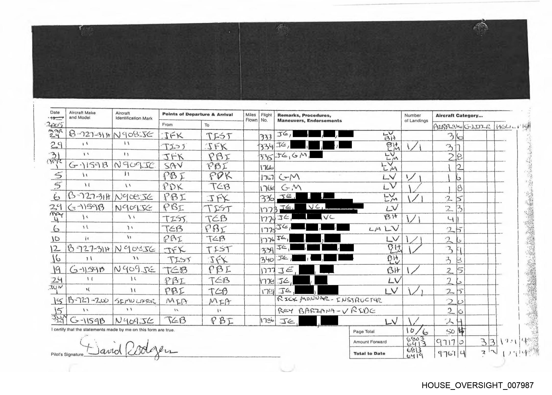 Registration Number: N908JE Type: B-727-31 Pilots: Dave Rodgers, Wi