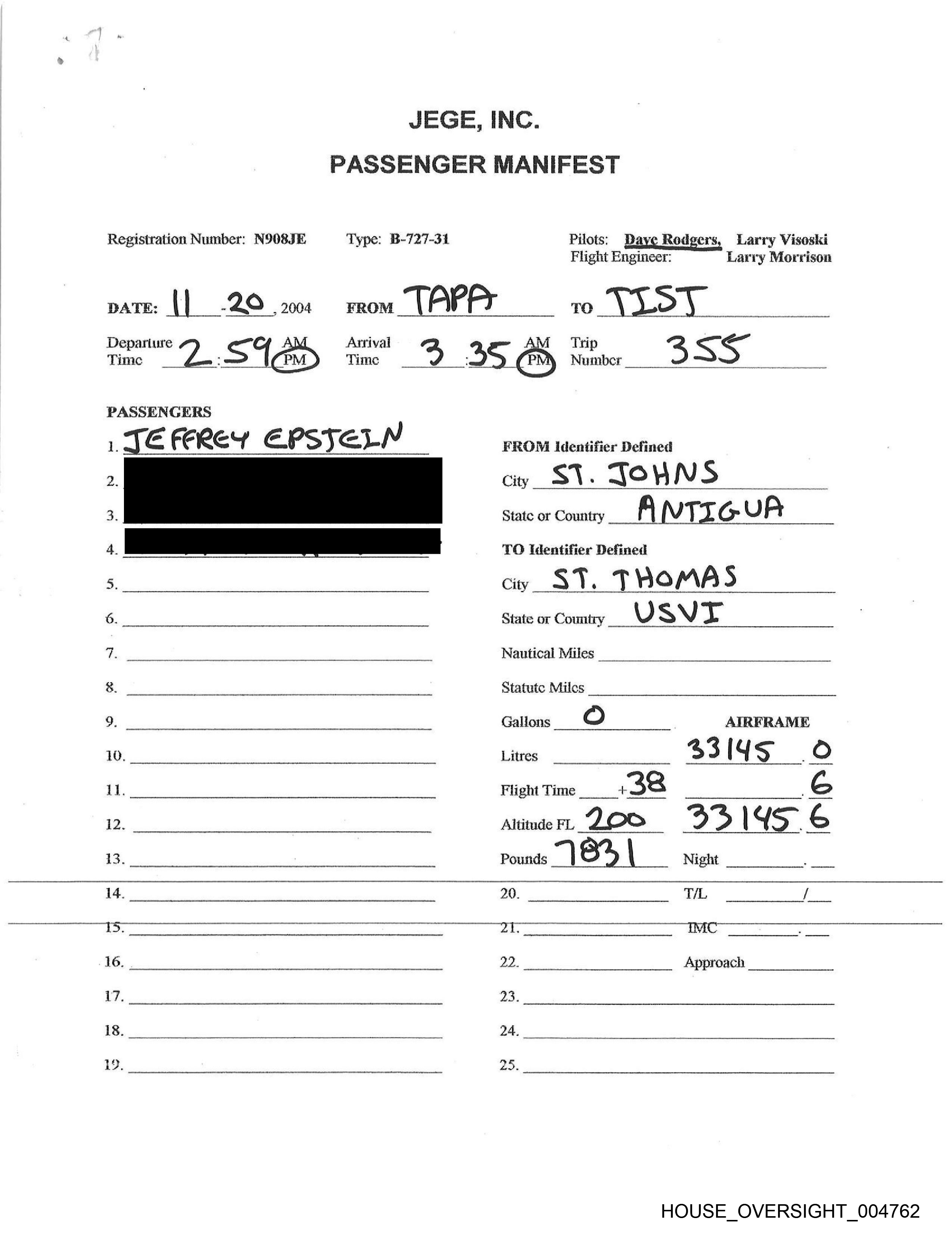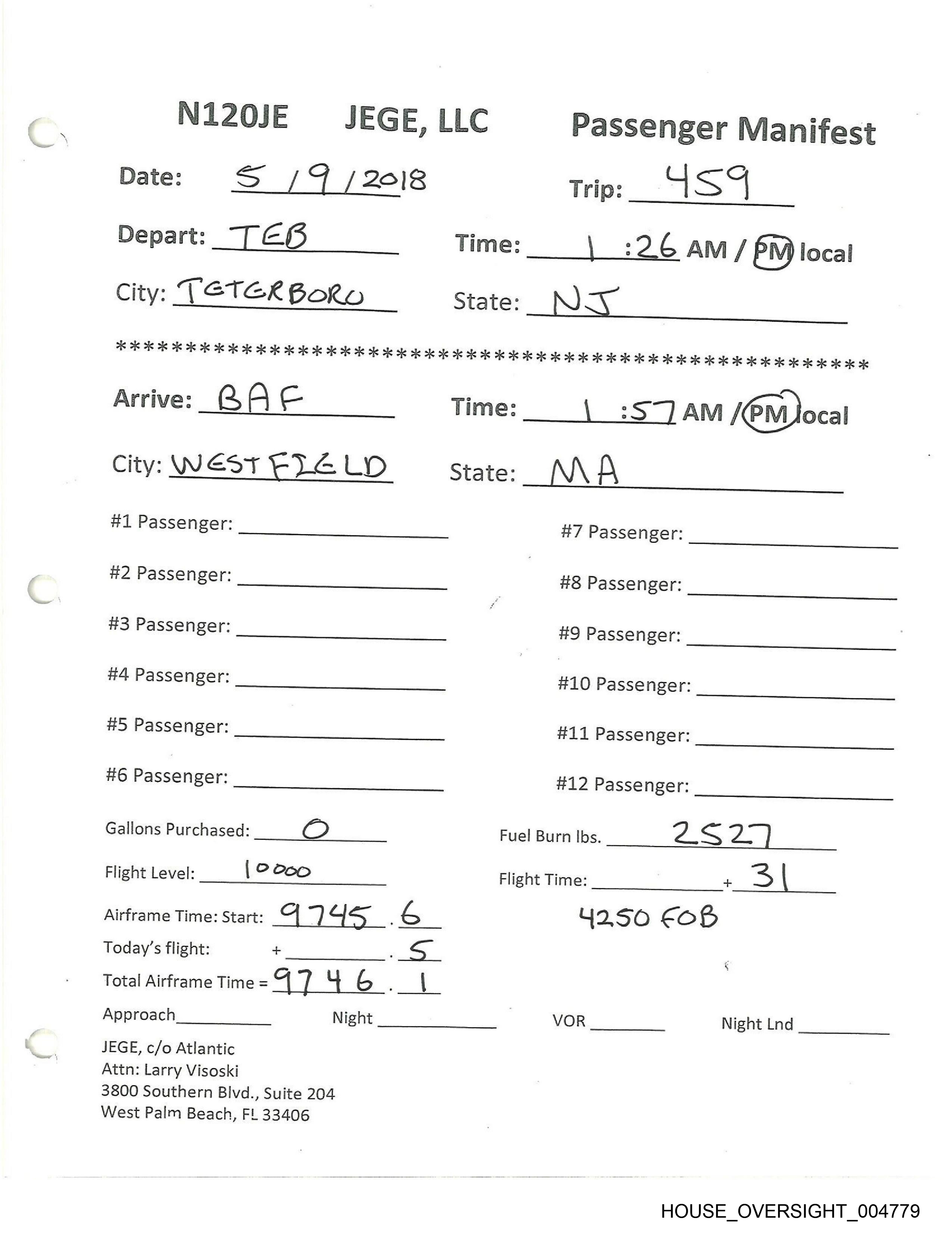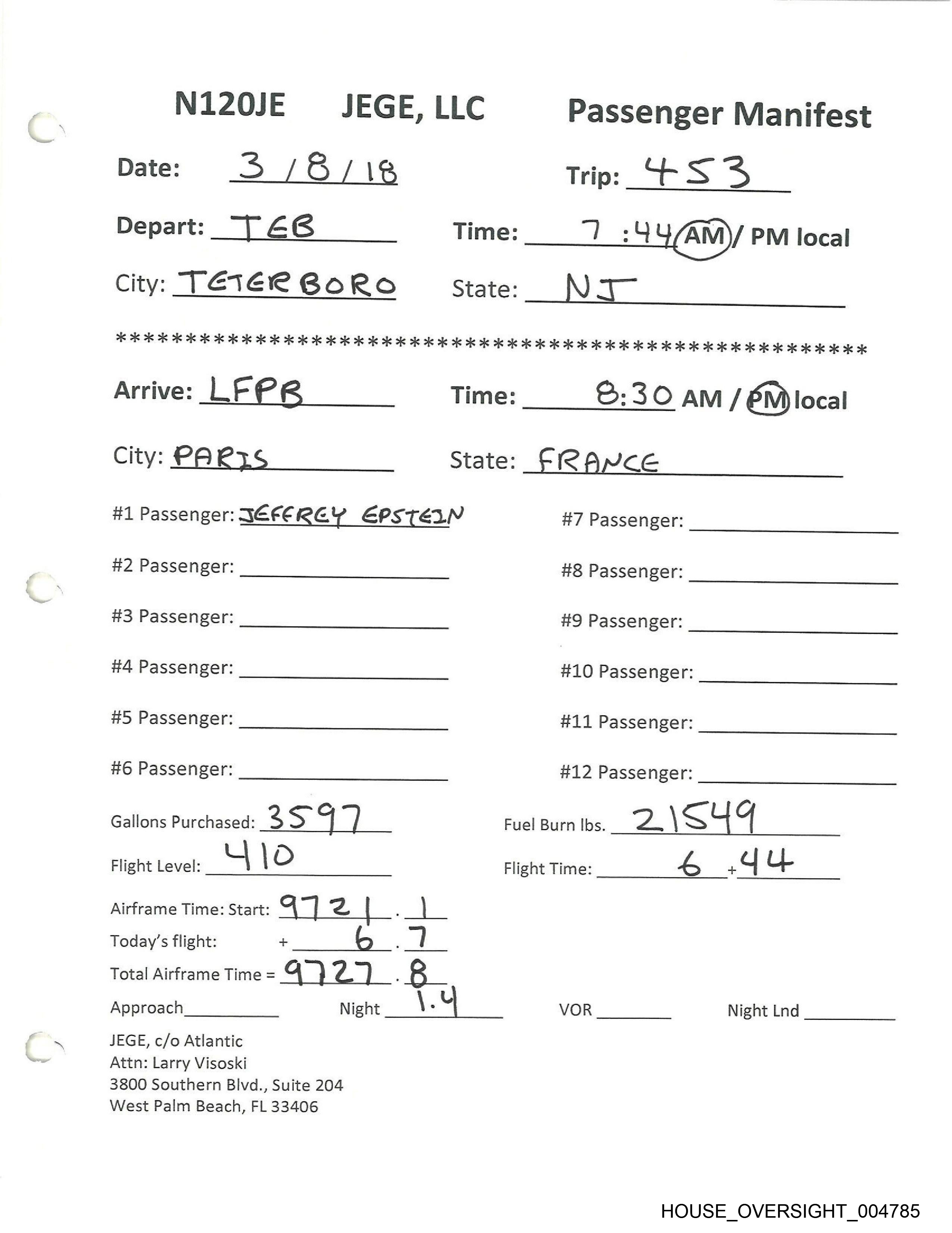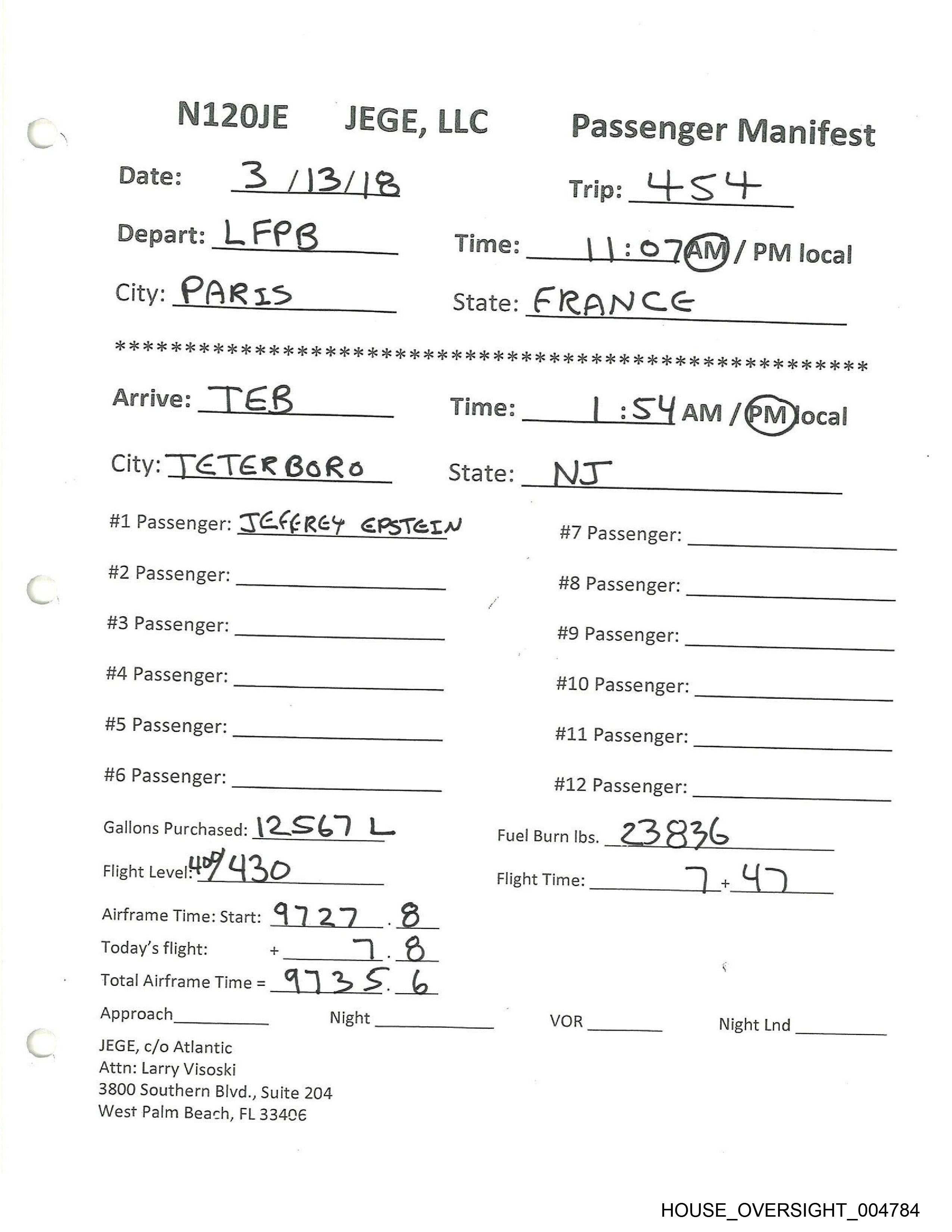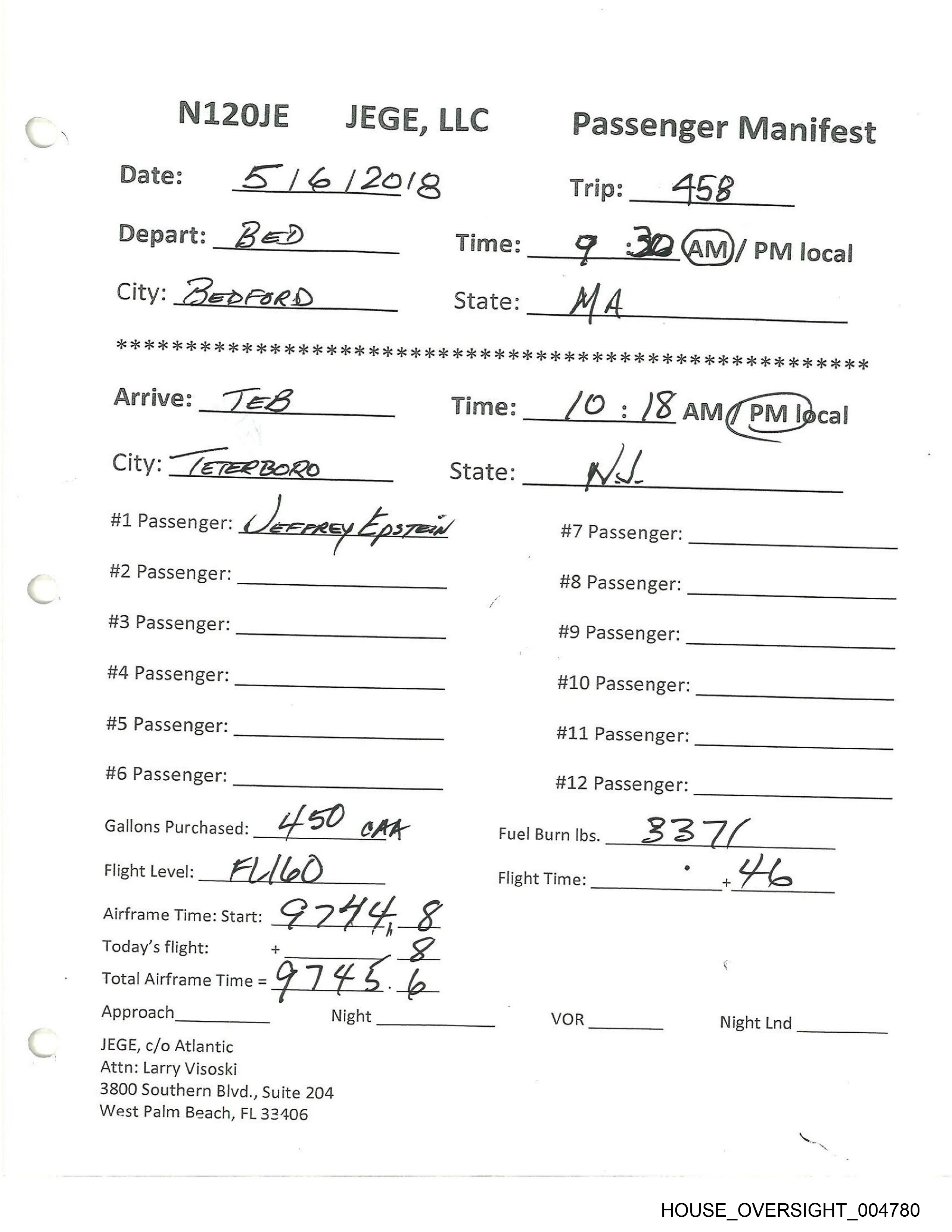 #1 Passenger: JEFEREY EPSTEIN #7 Passenger:
