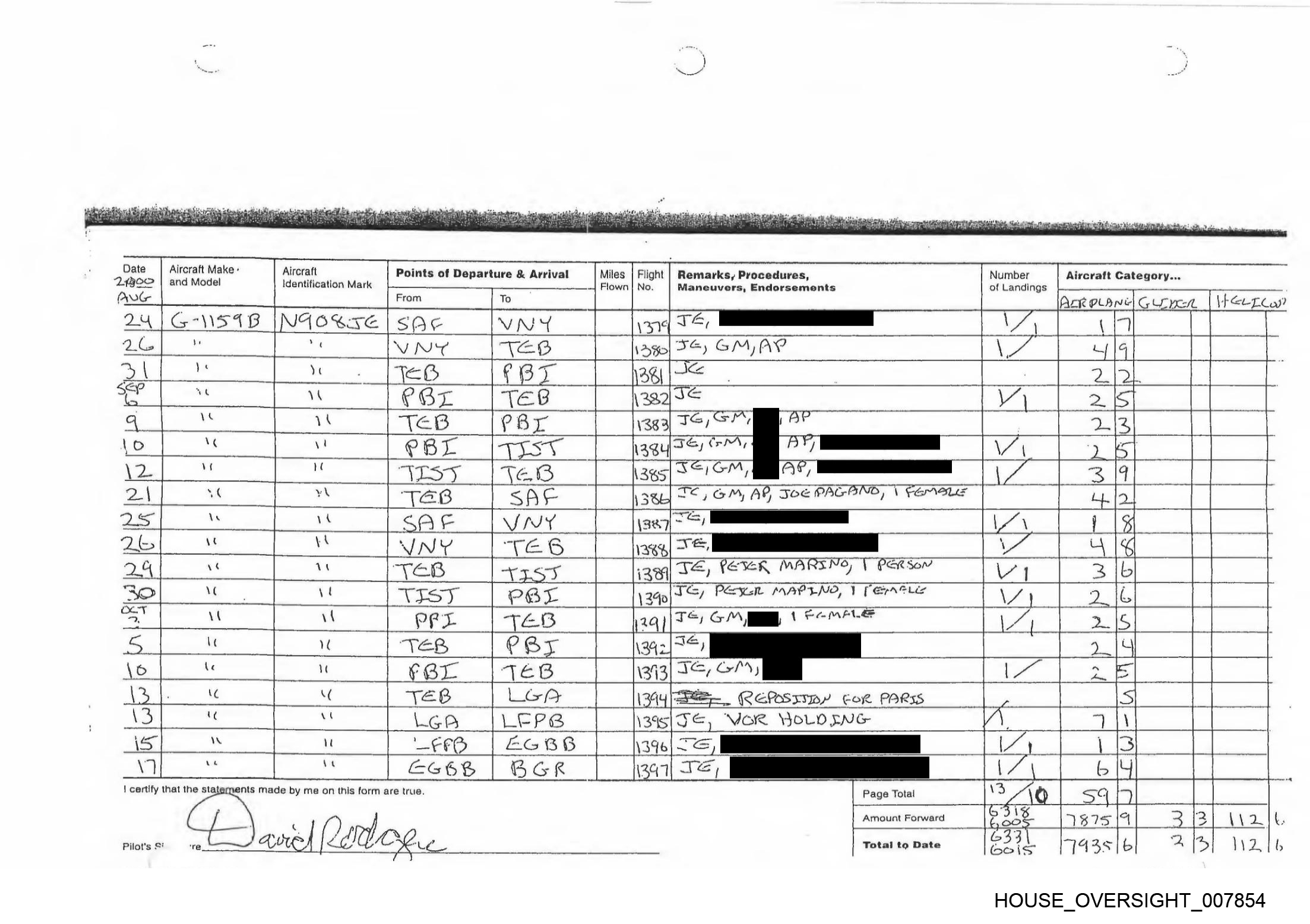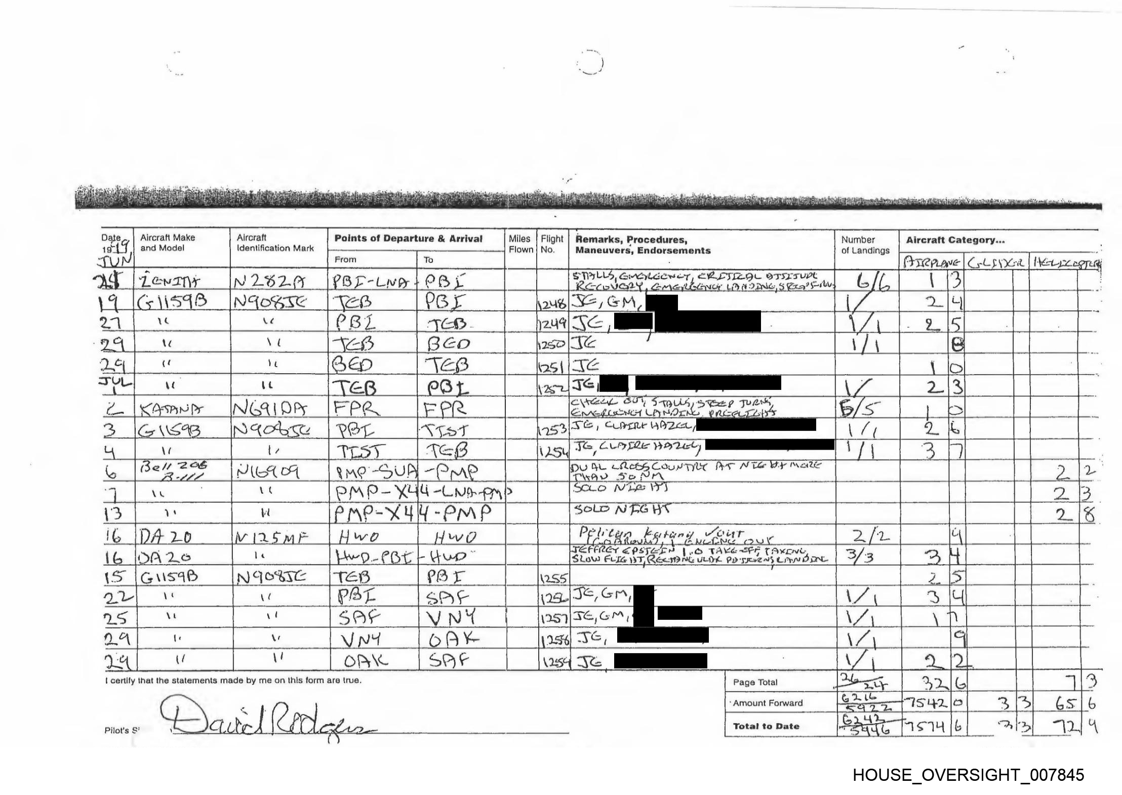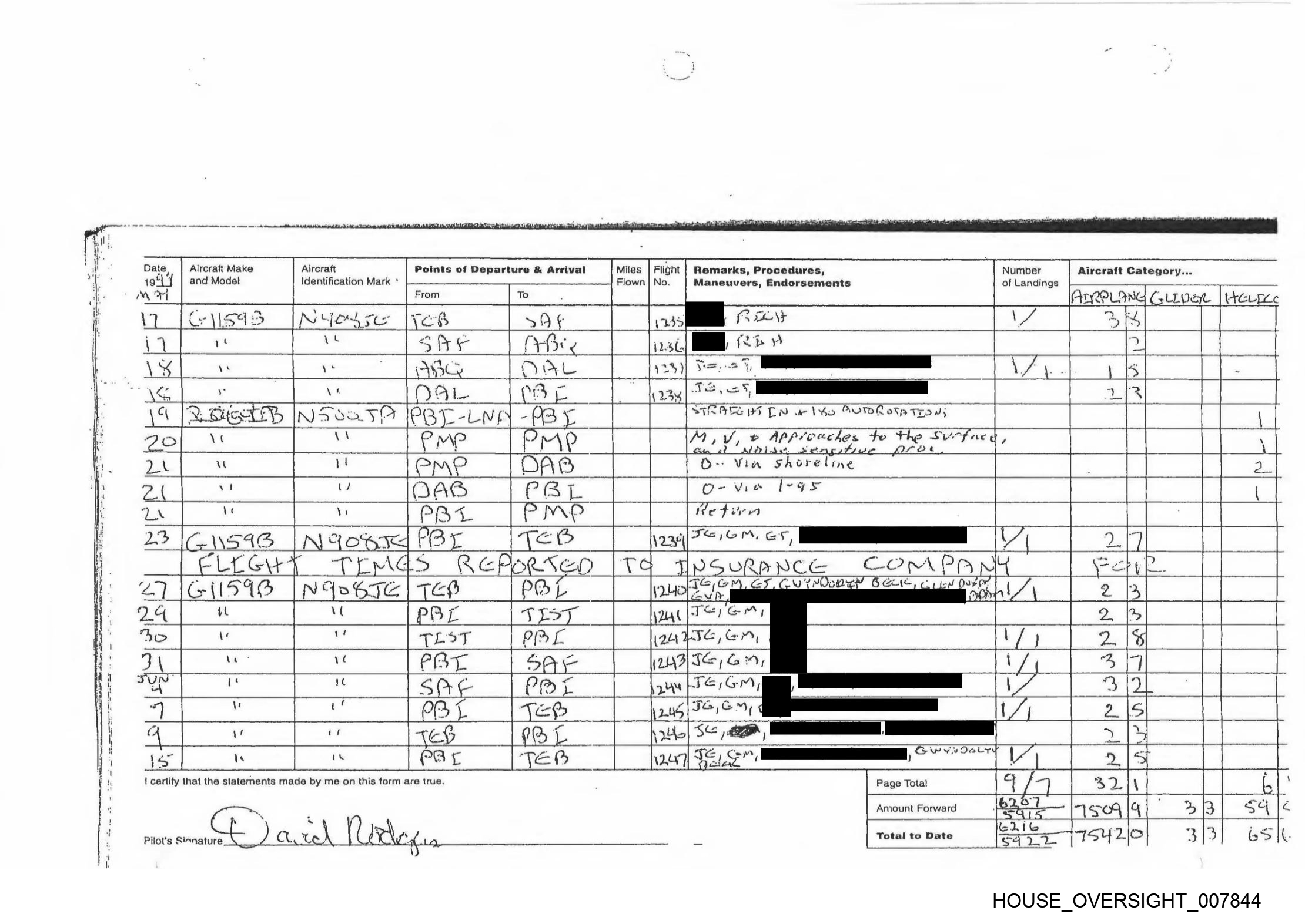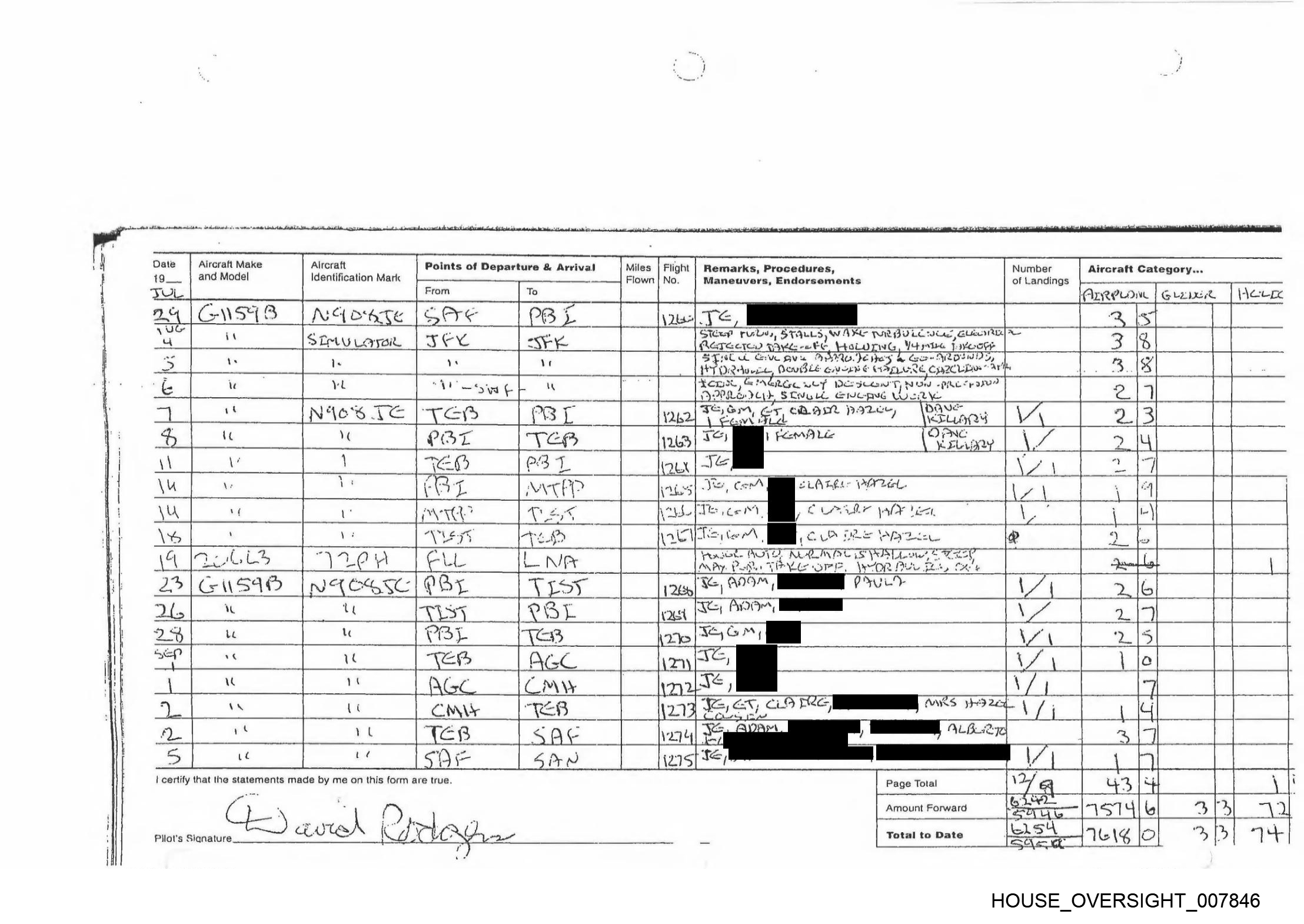 1! Date Aircraft Make Alrcra’ Points of eee & Arrival ea Remarks, Procedures, Number Aircraft Category...