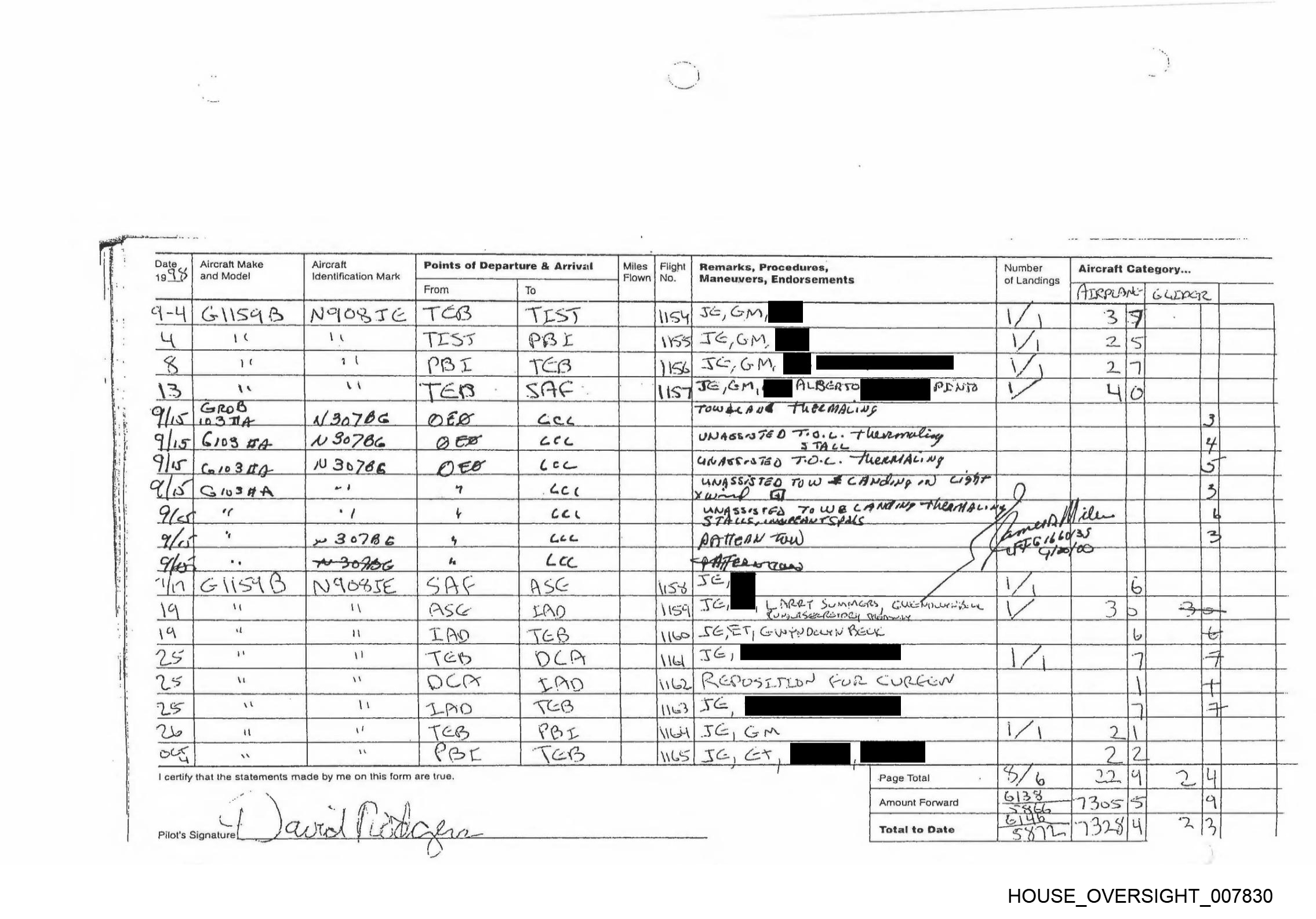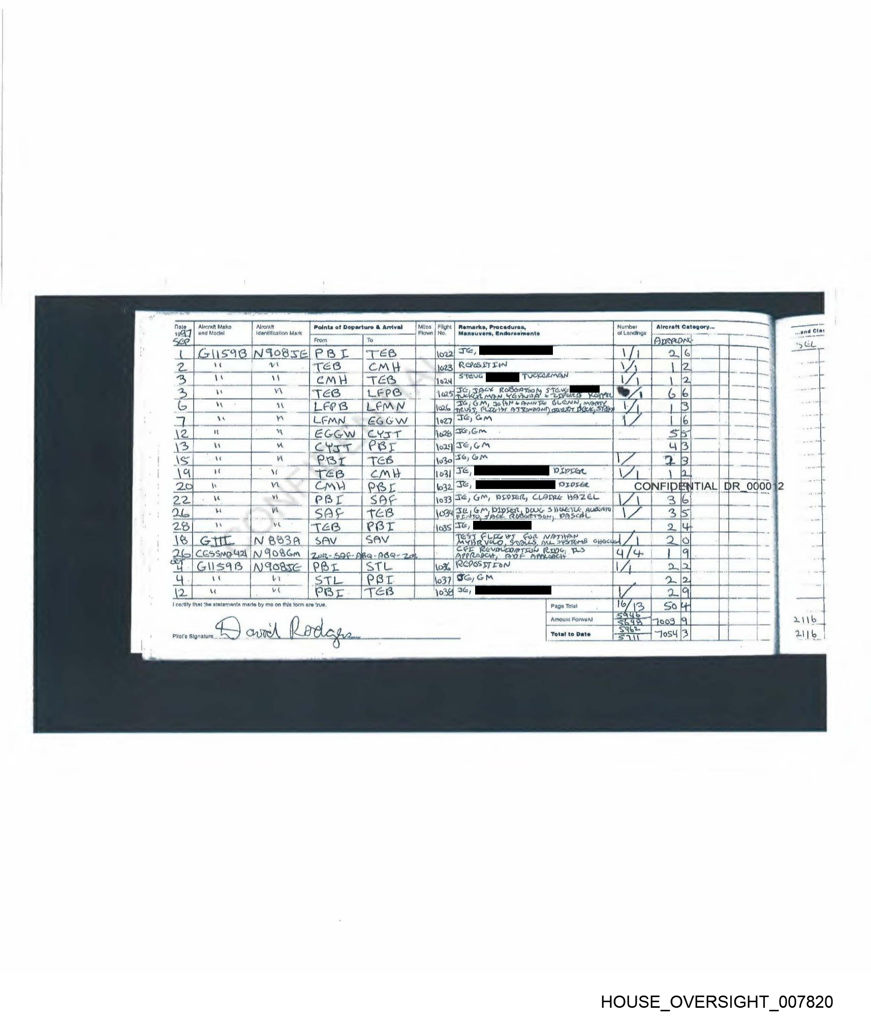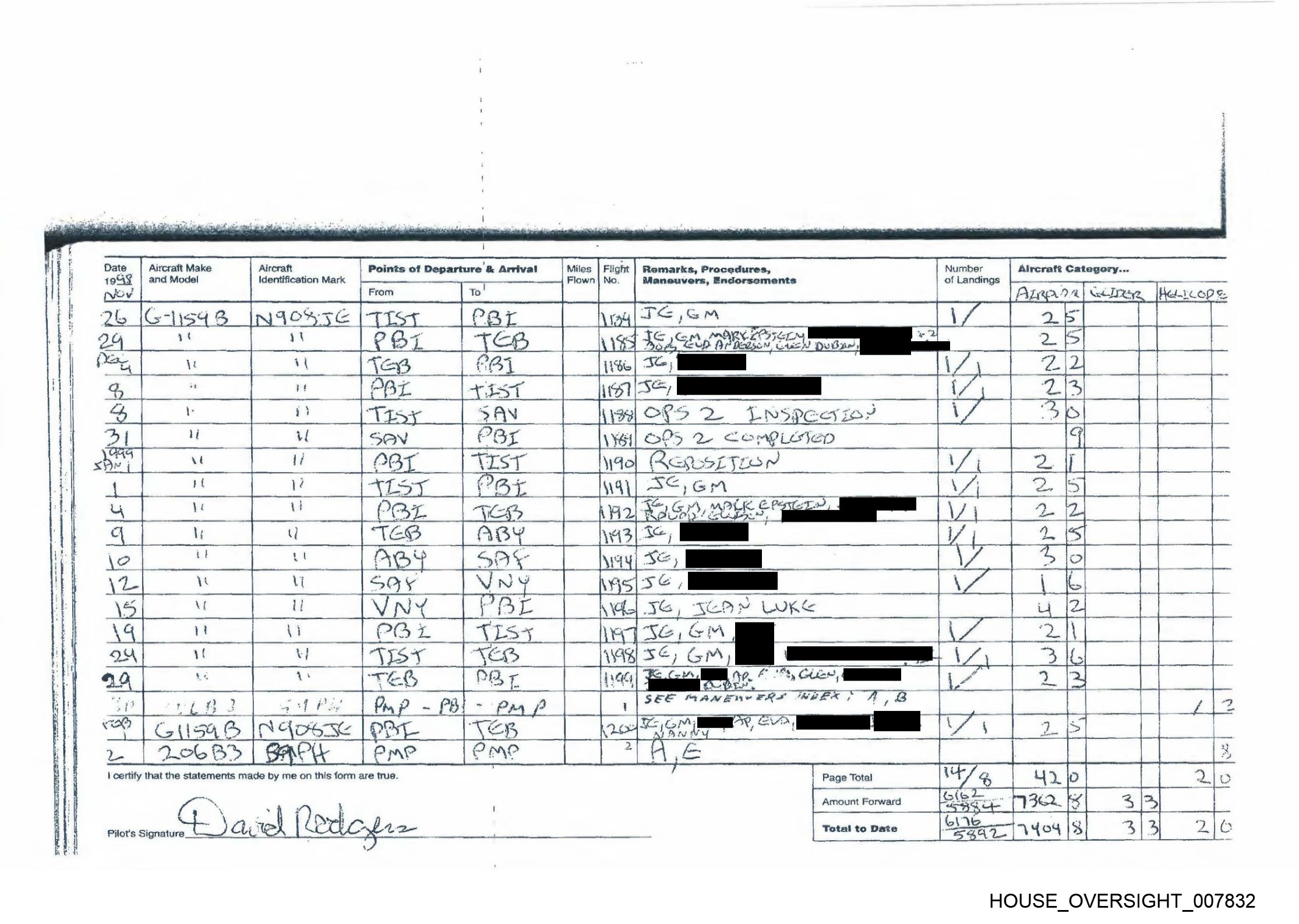 Date Aircraft Make Aircraft Points of Departure & Arrival Miles | Flight | Remarks, Procedures, Number Aircratt Category...