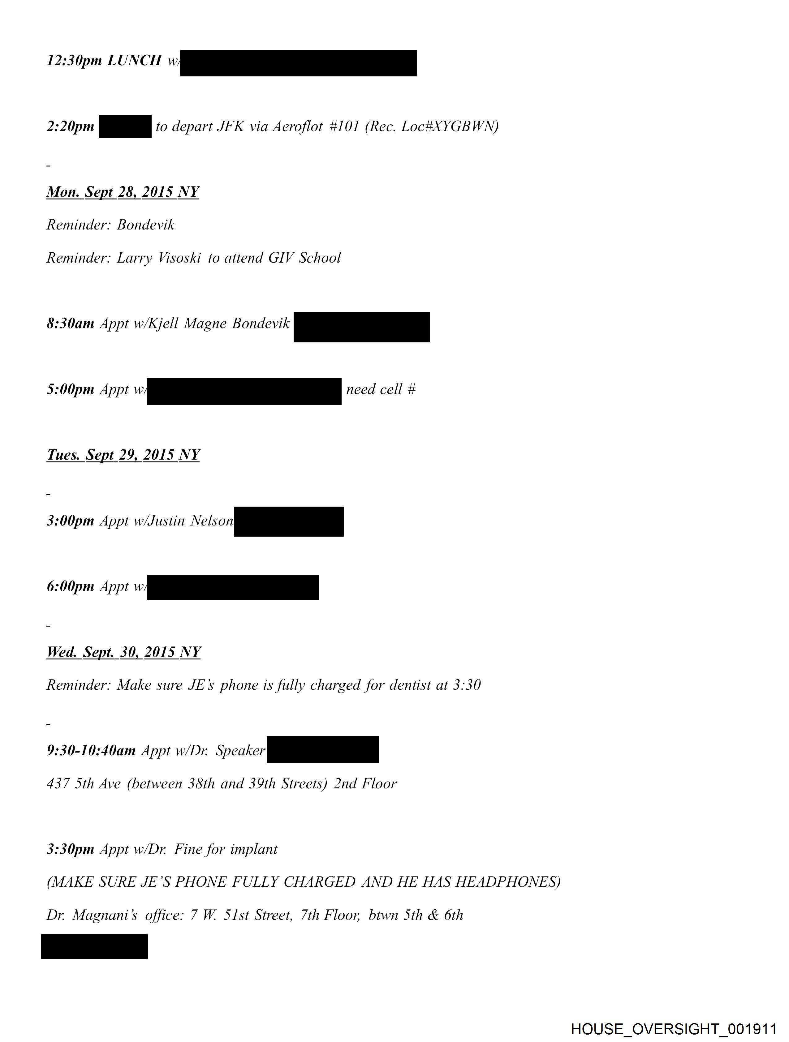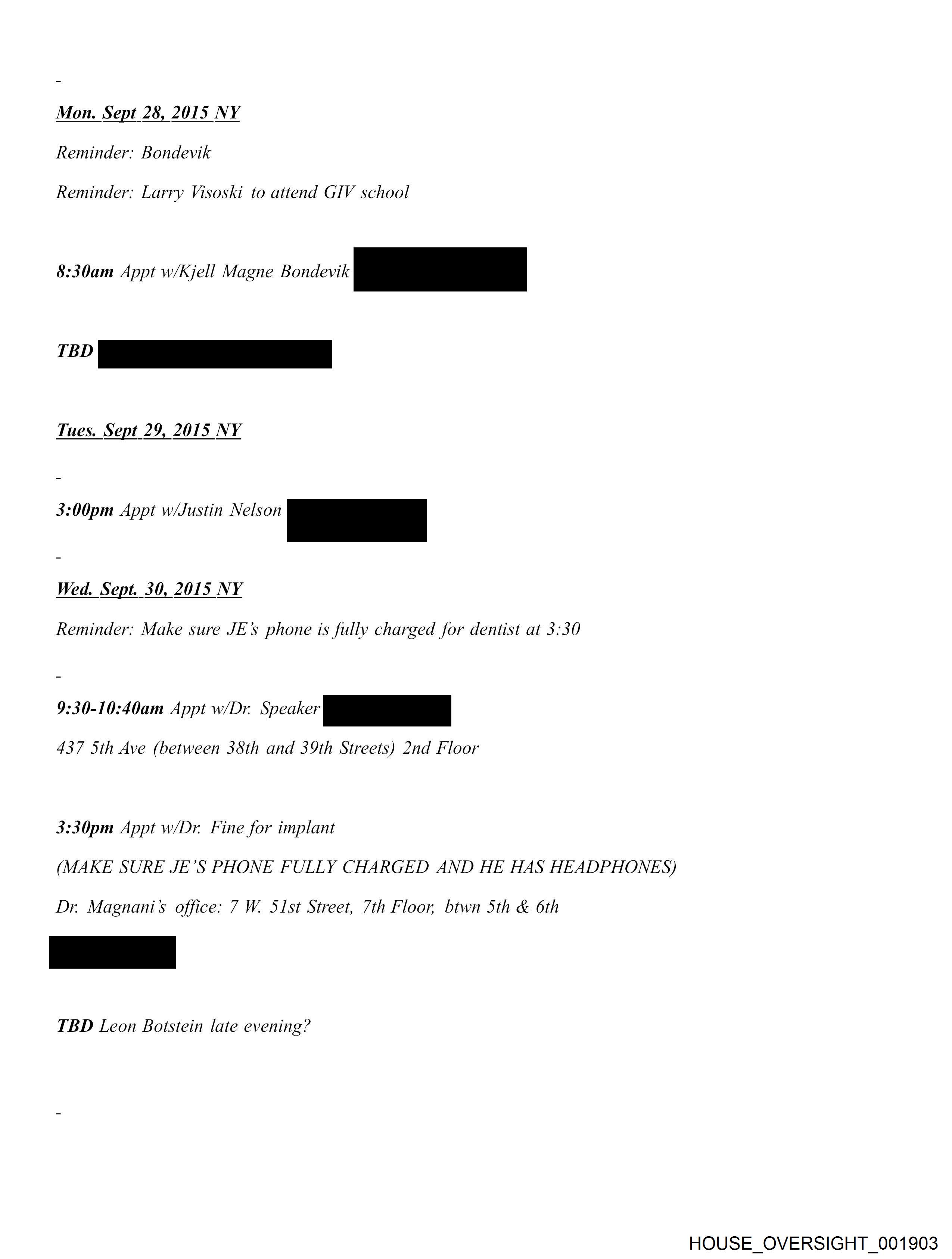 Subject: Schedule Sept 28-Oct. 5, 2015