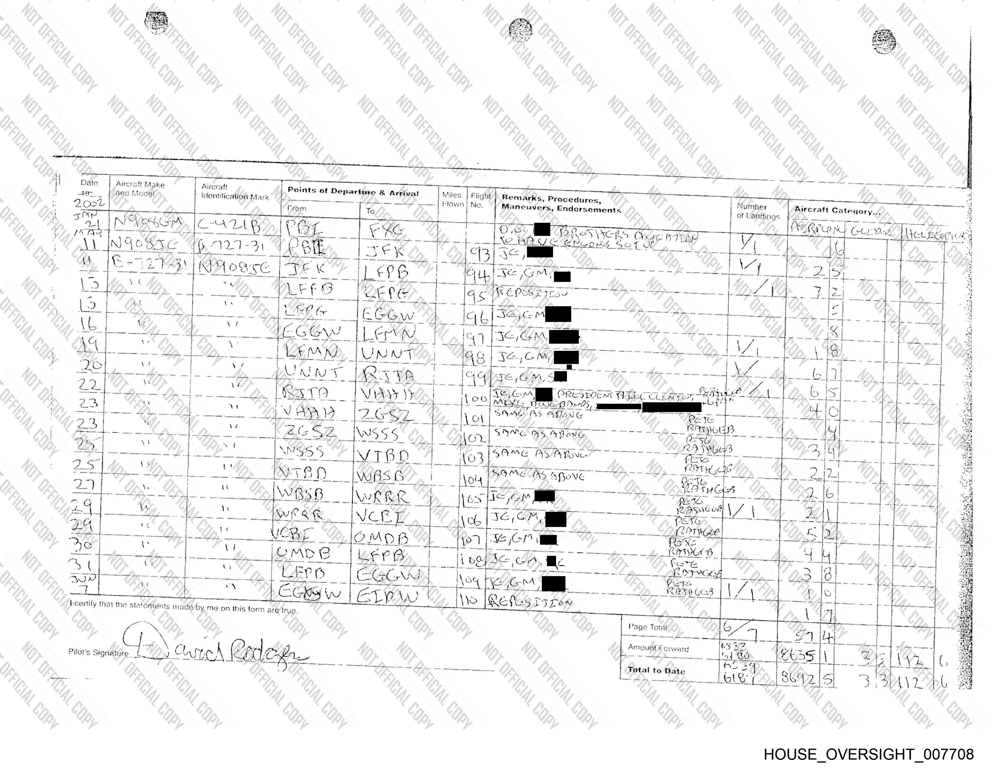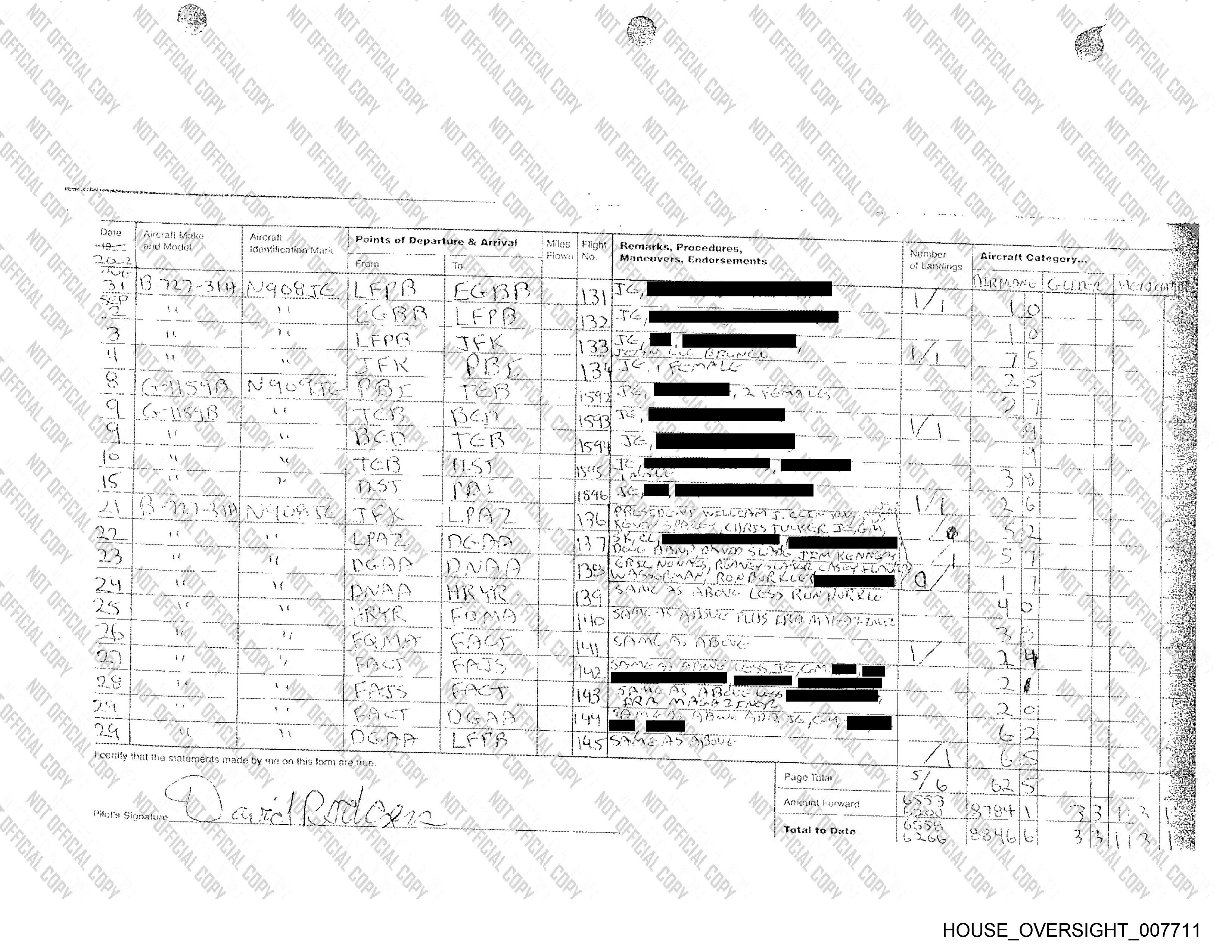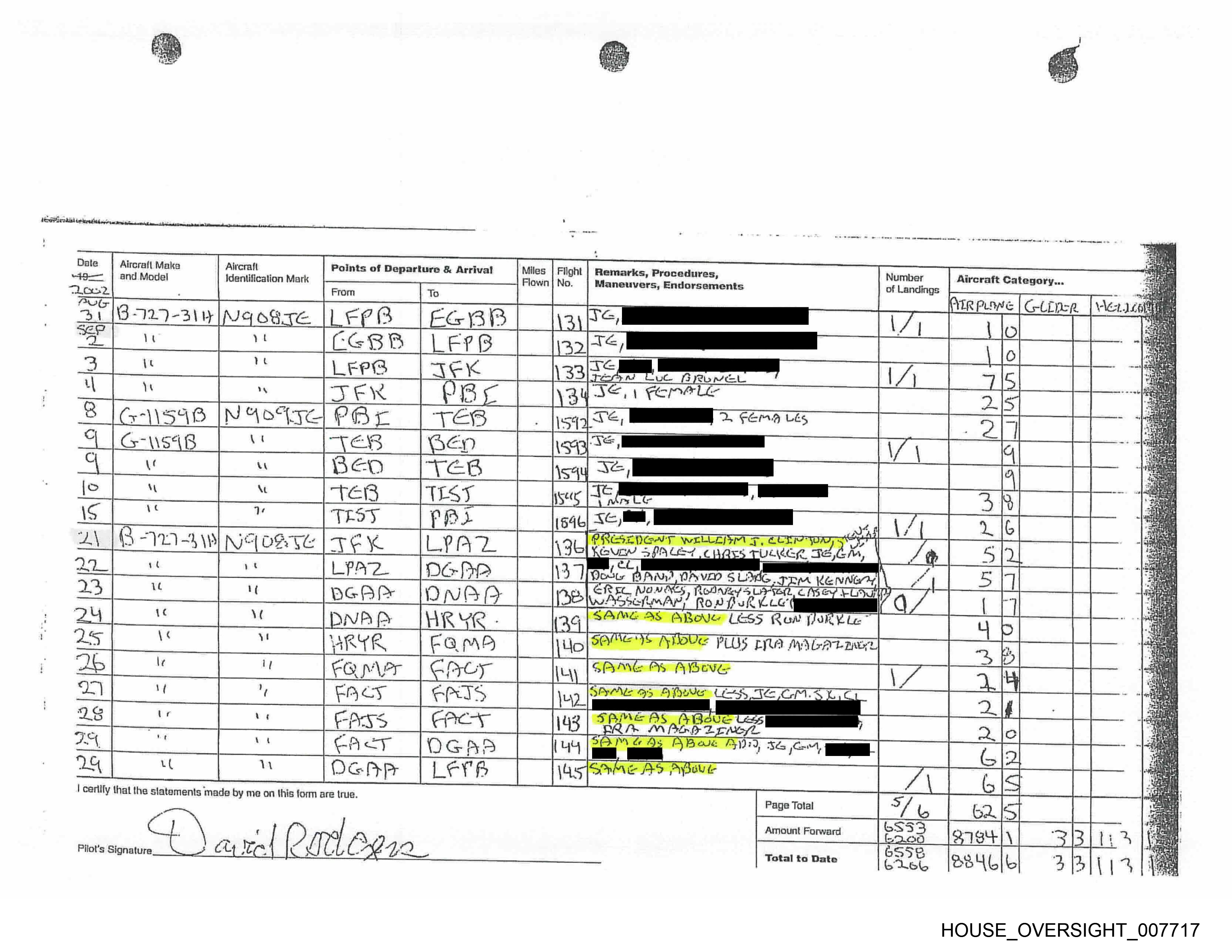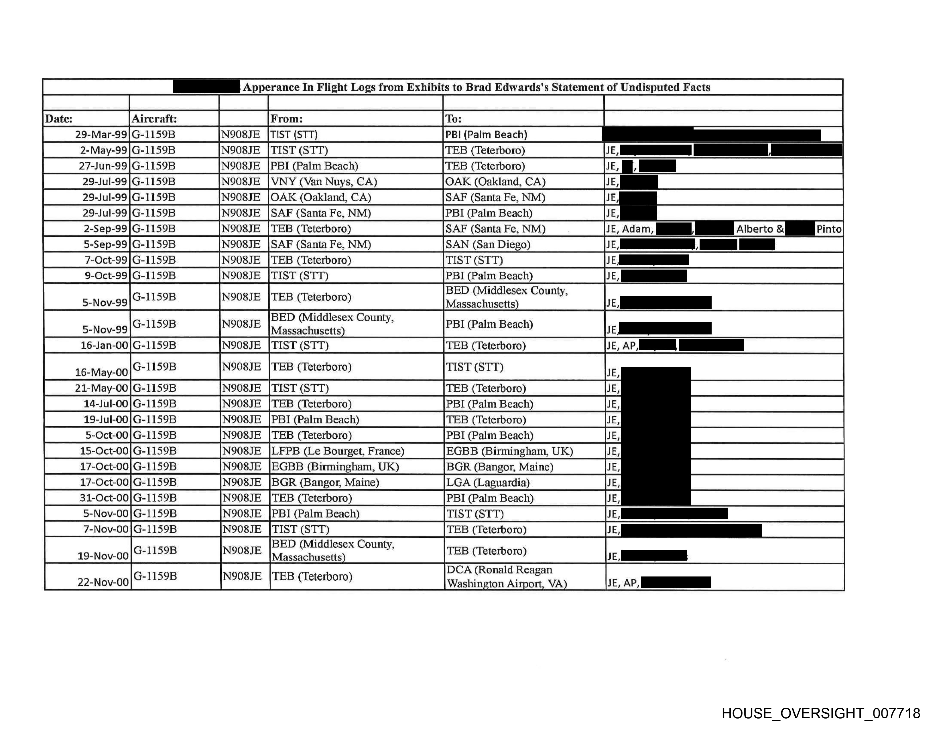 Apperance In Flight Logs from Exhibits to Brad Edwards's Statement of Undisputed Facts