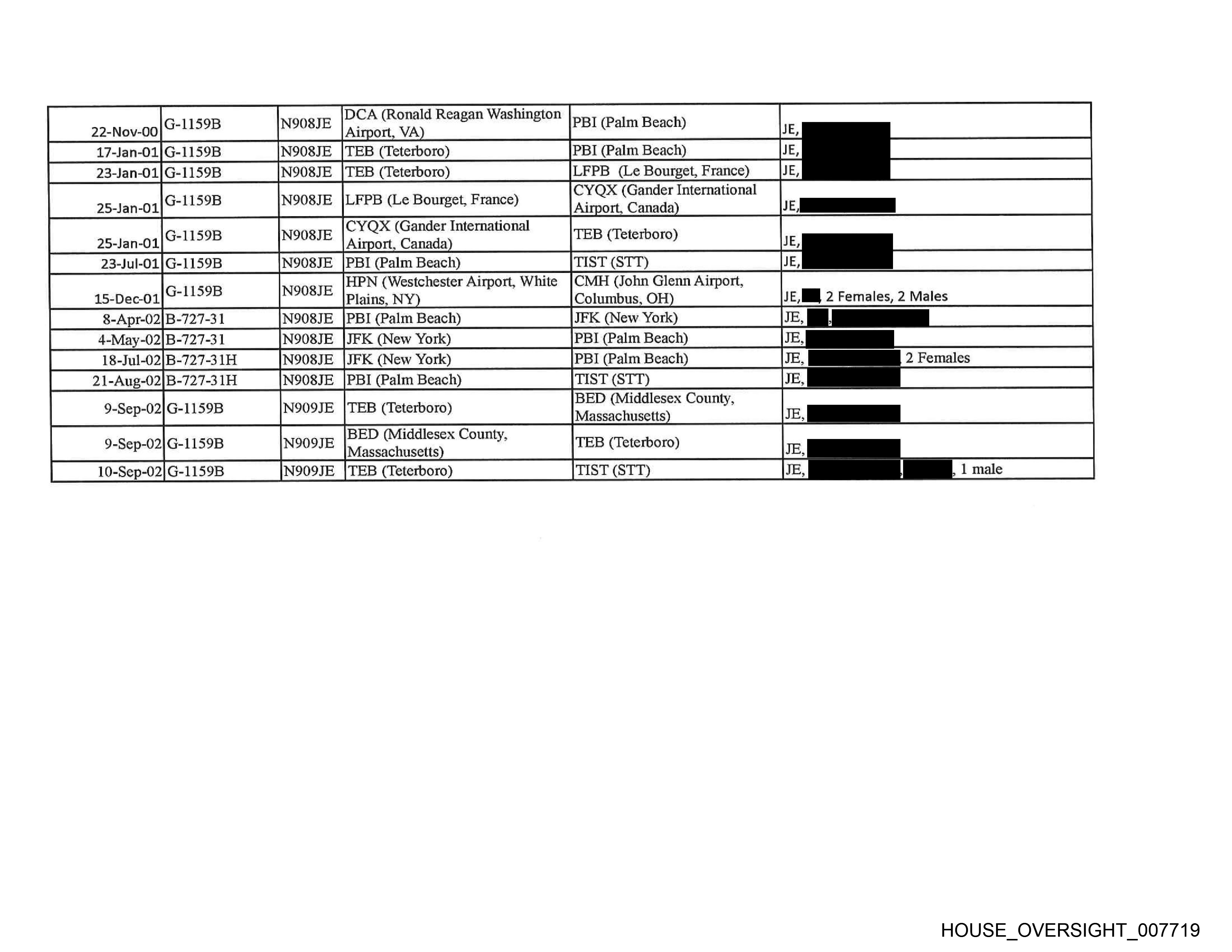18-Jul-02|B-727-31H N908JE |JFK (New York) PBI (Palm Beach) JE, BR 22 Females