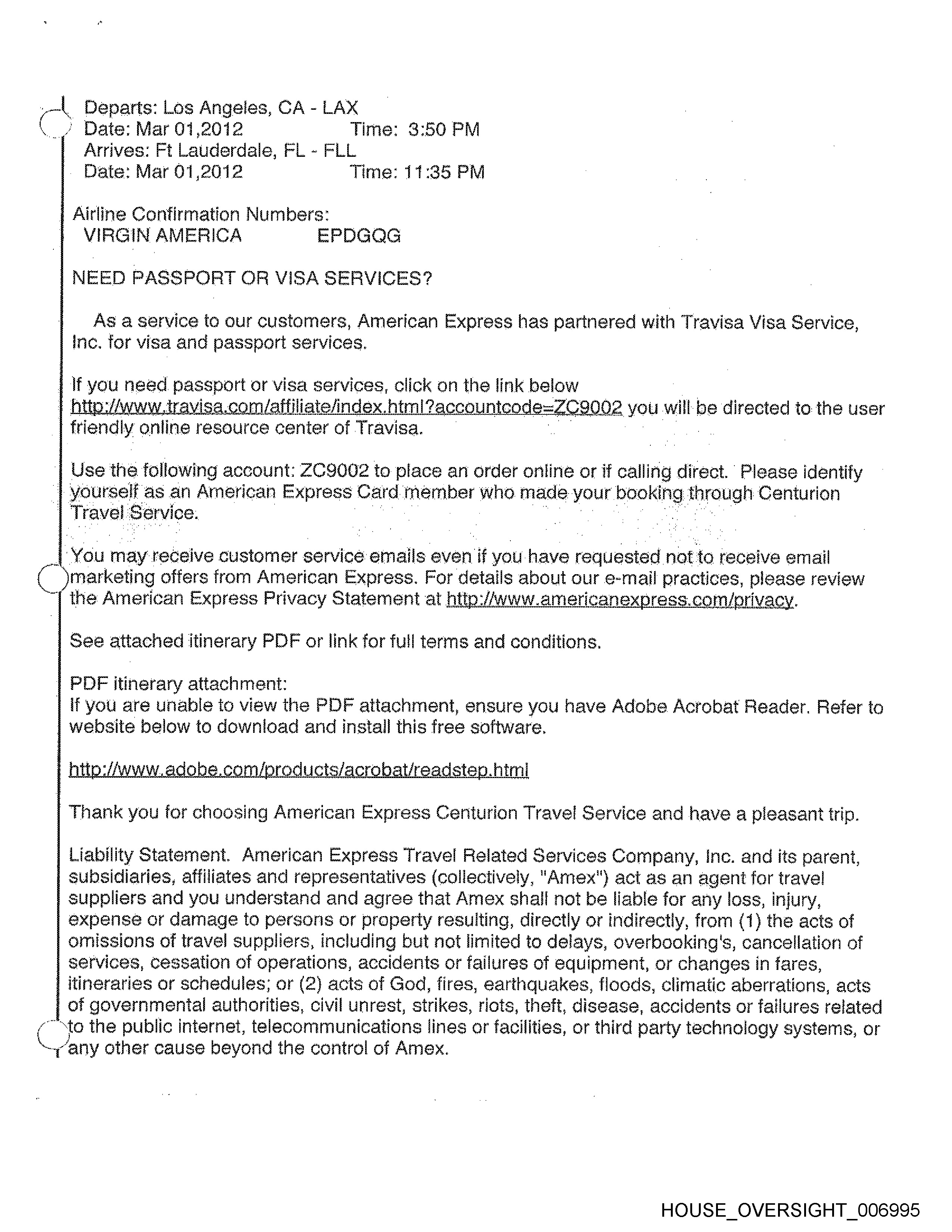 | Asa service to our customers, American Express has partnered with Travisa Visa Service,