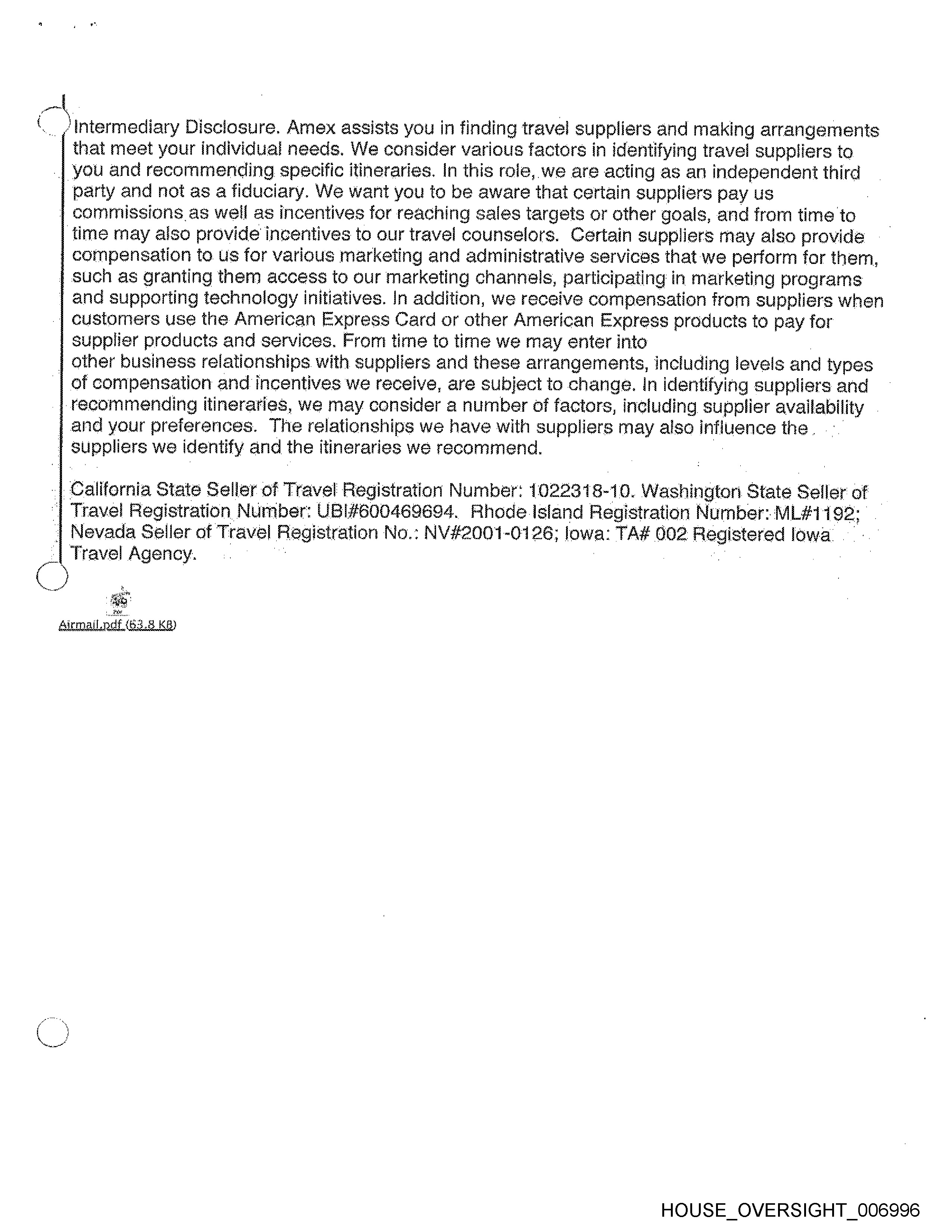 . ¢intermediary Disclosure. Amex assists you in finding travel suppliers and making arrangements