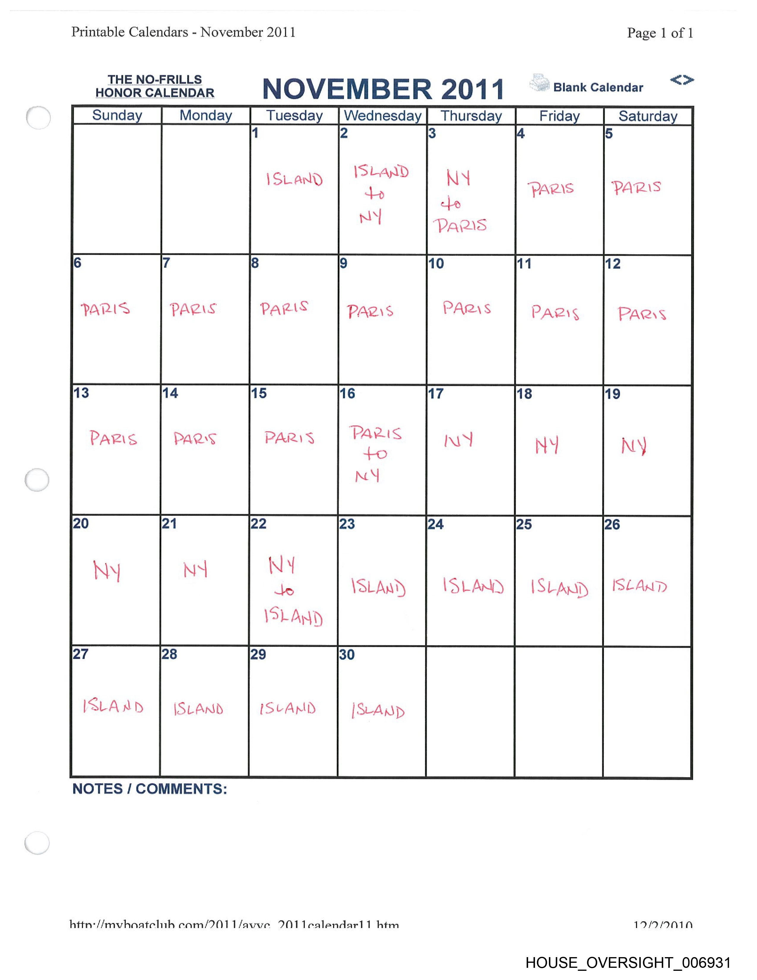 Printable Calendars - November 2011 Page 1 of 1