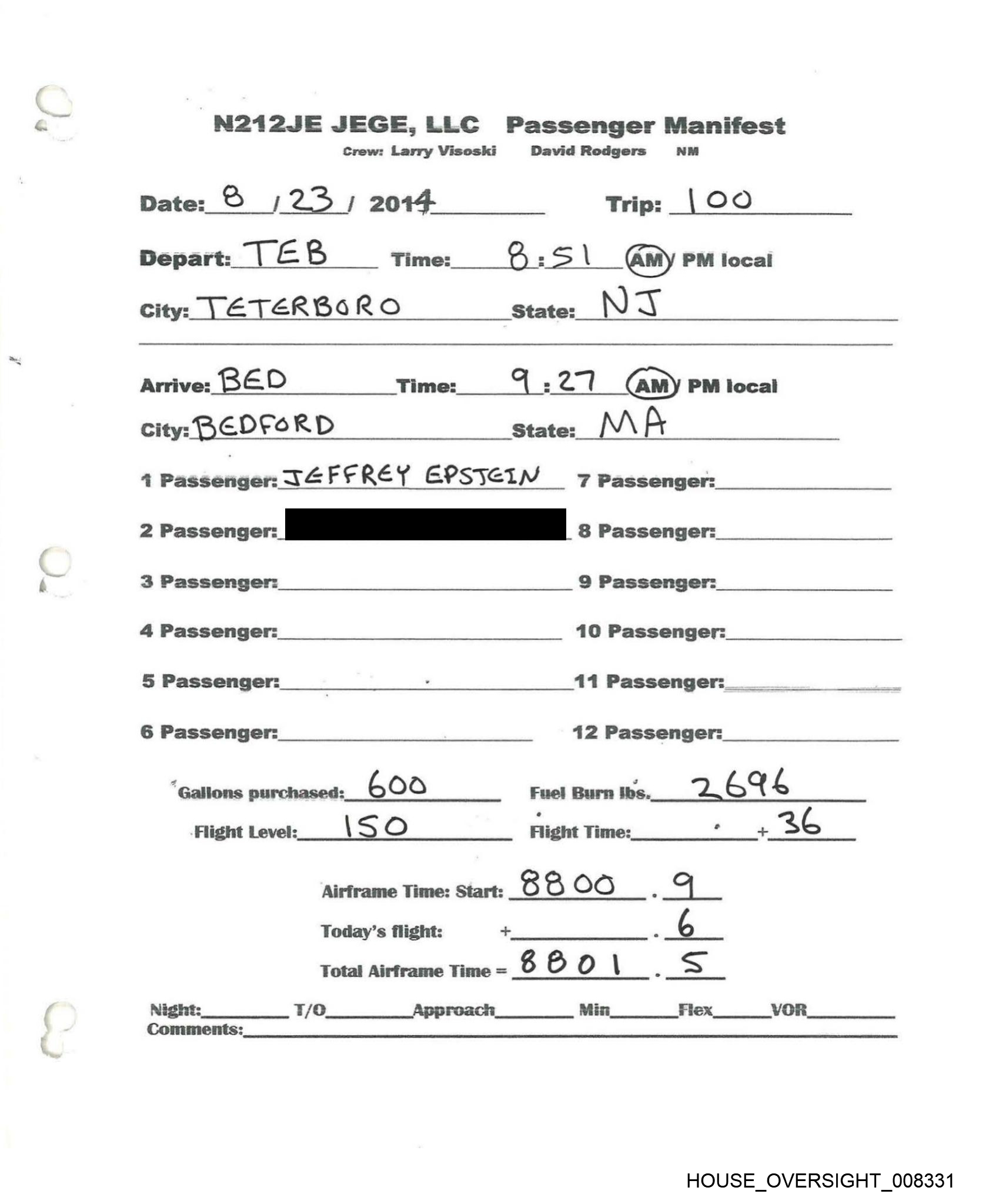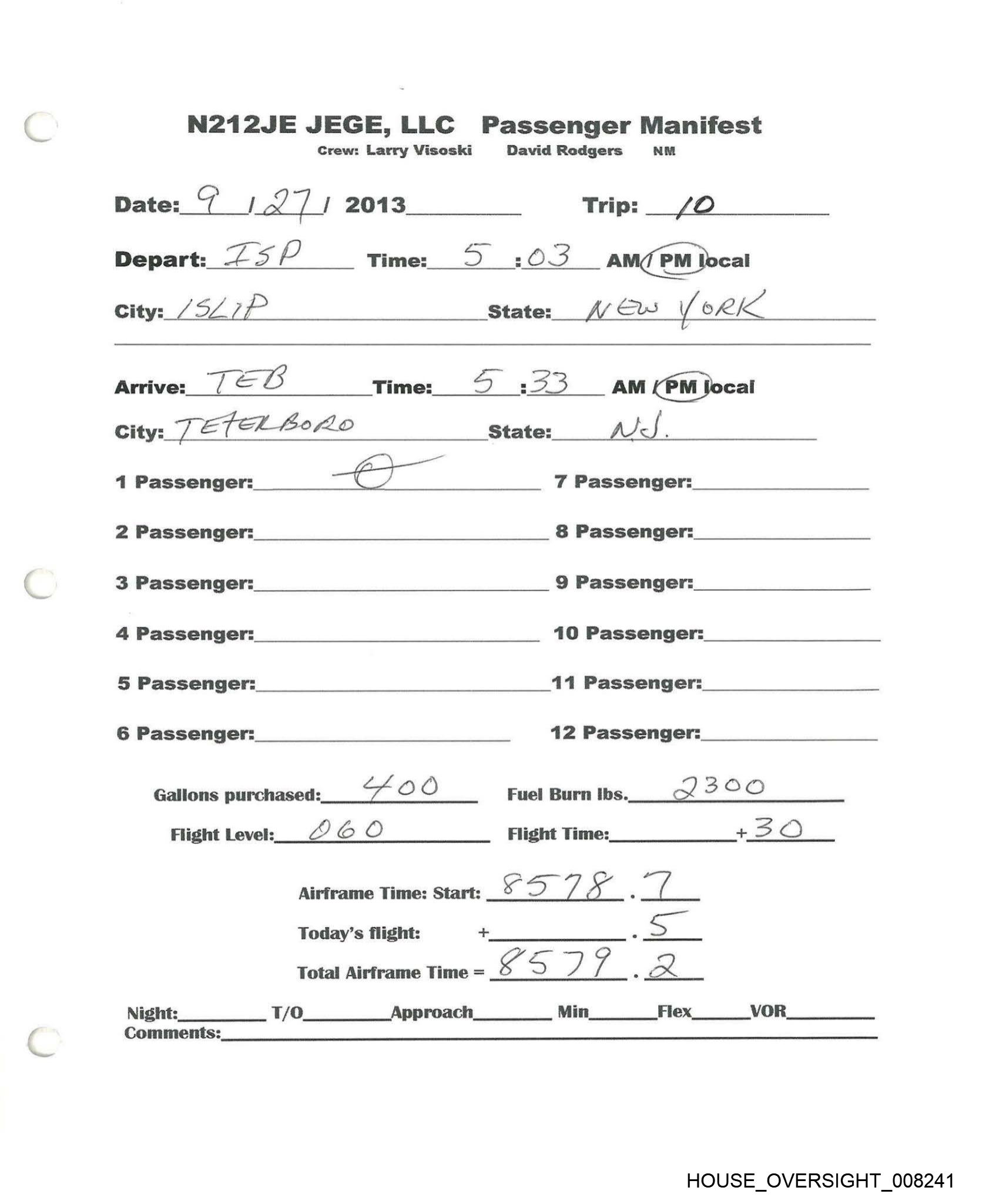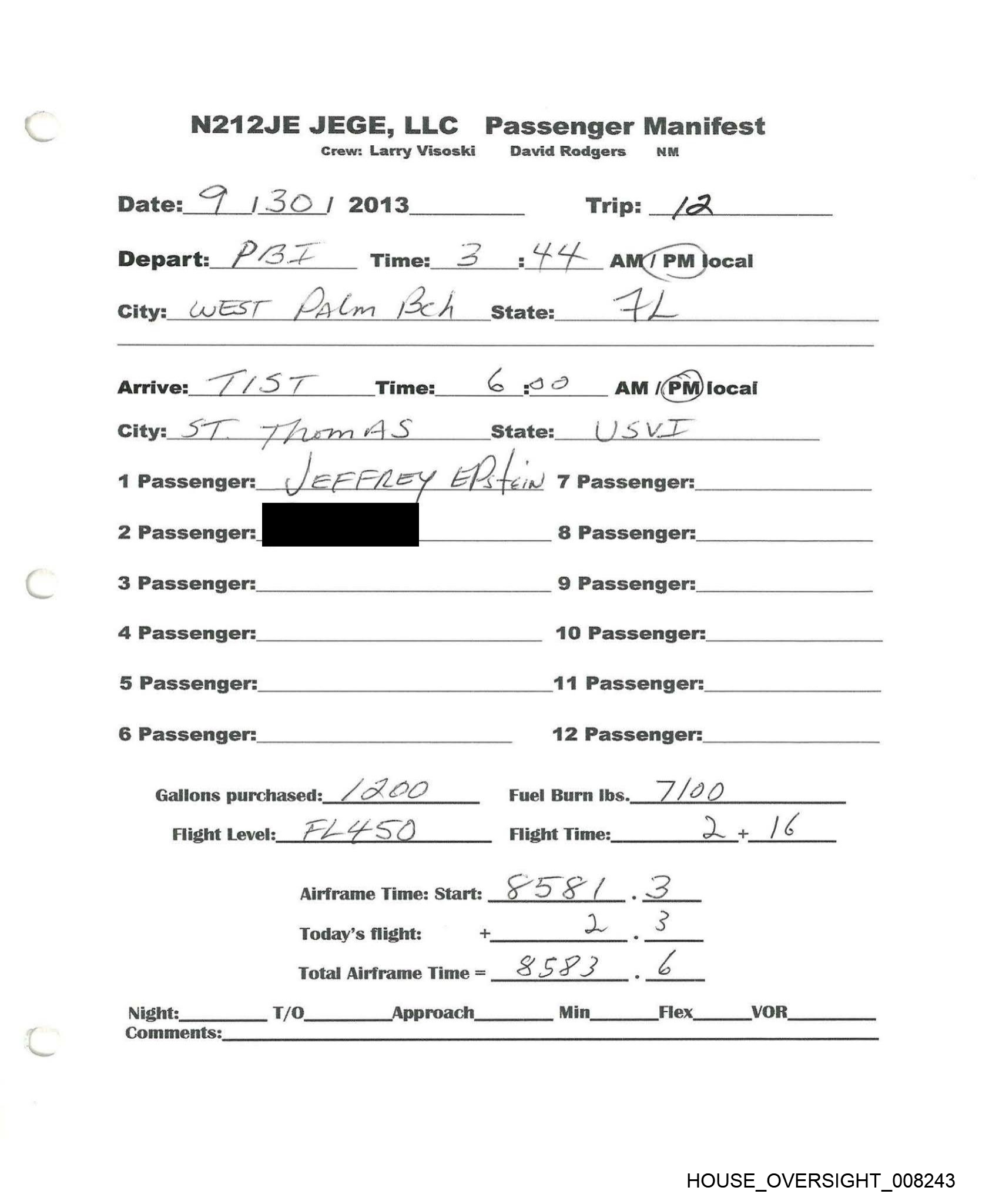 N212JE JEGE,LLC Passenger Manifest