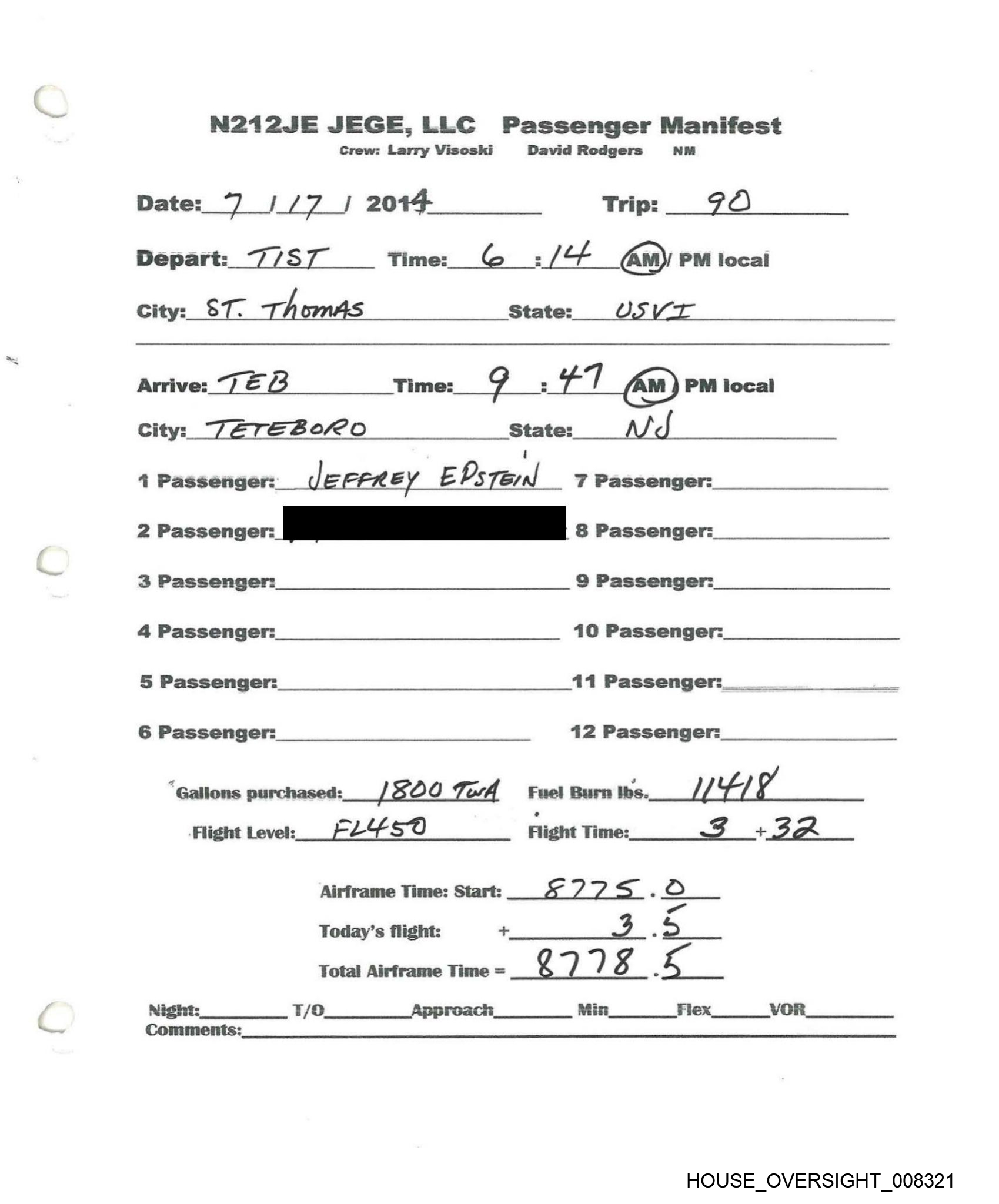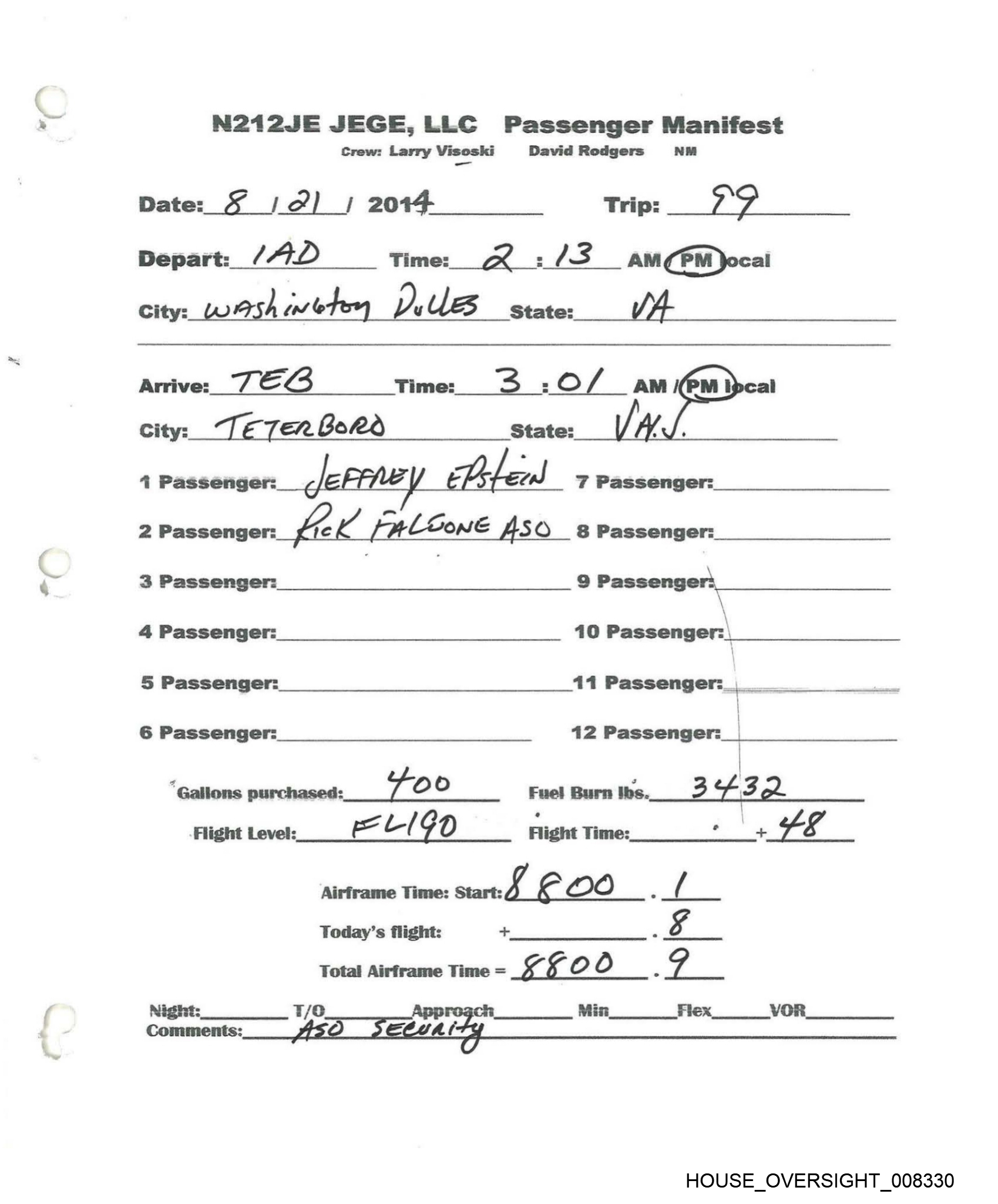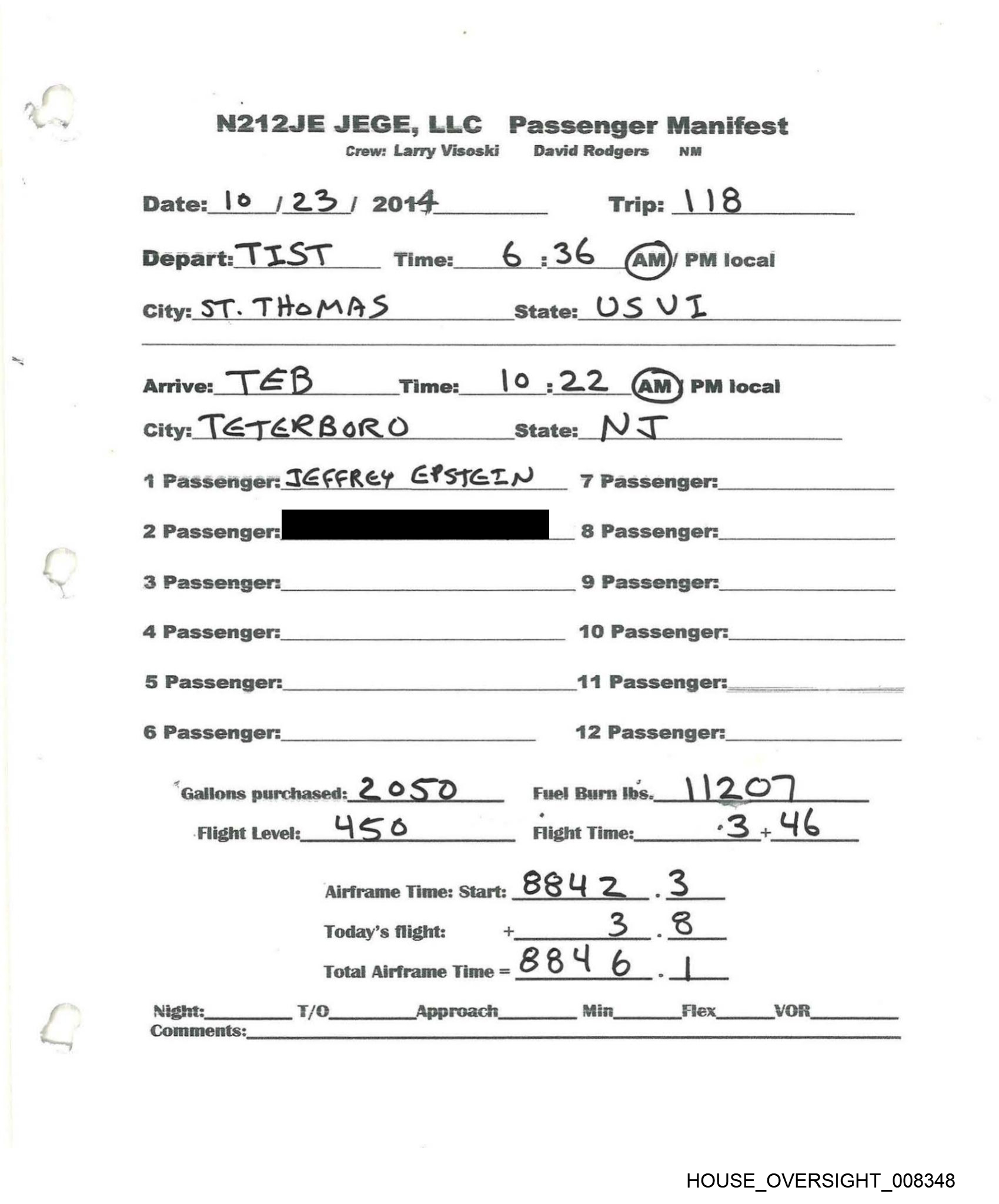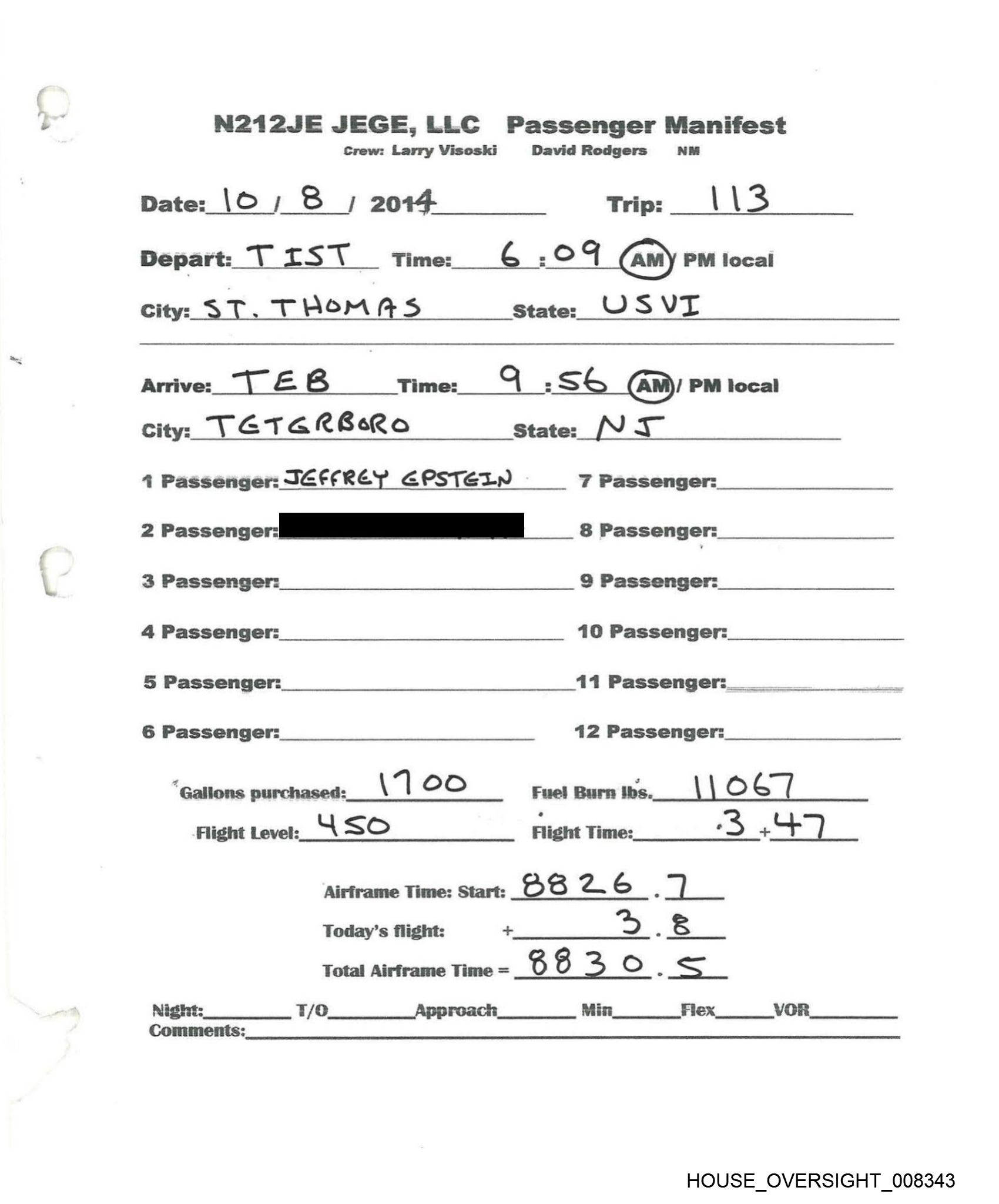 N212JE JEGE,LLC Passenger Manifest
