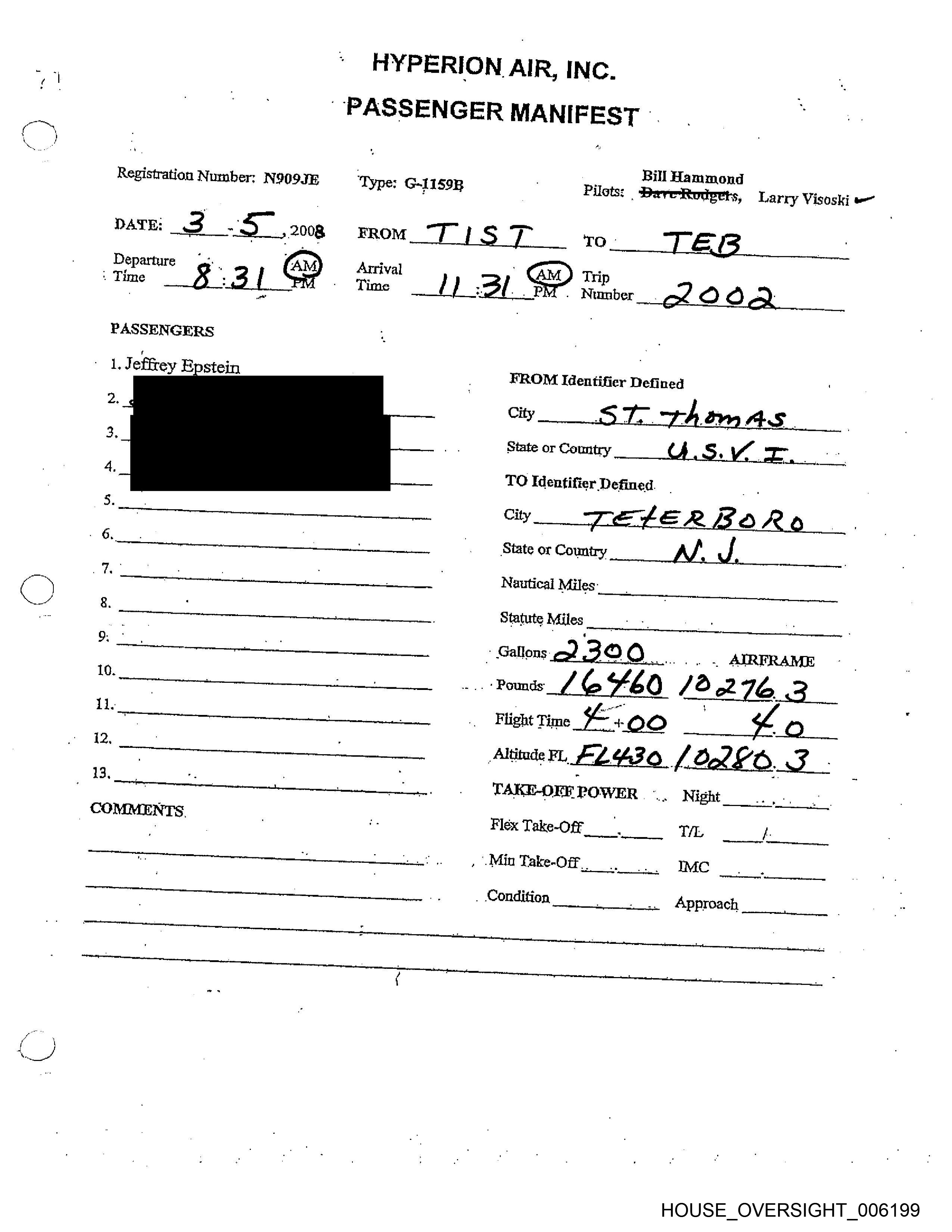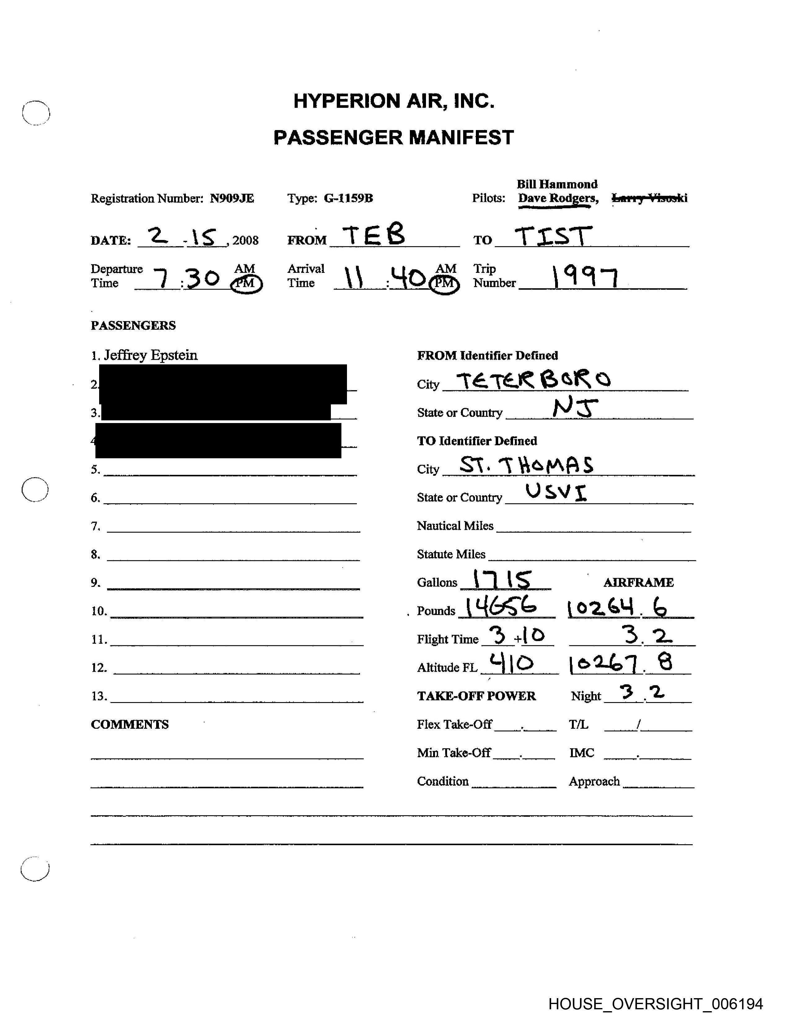 PASSENGER MANIFEST