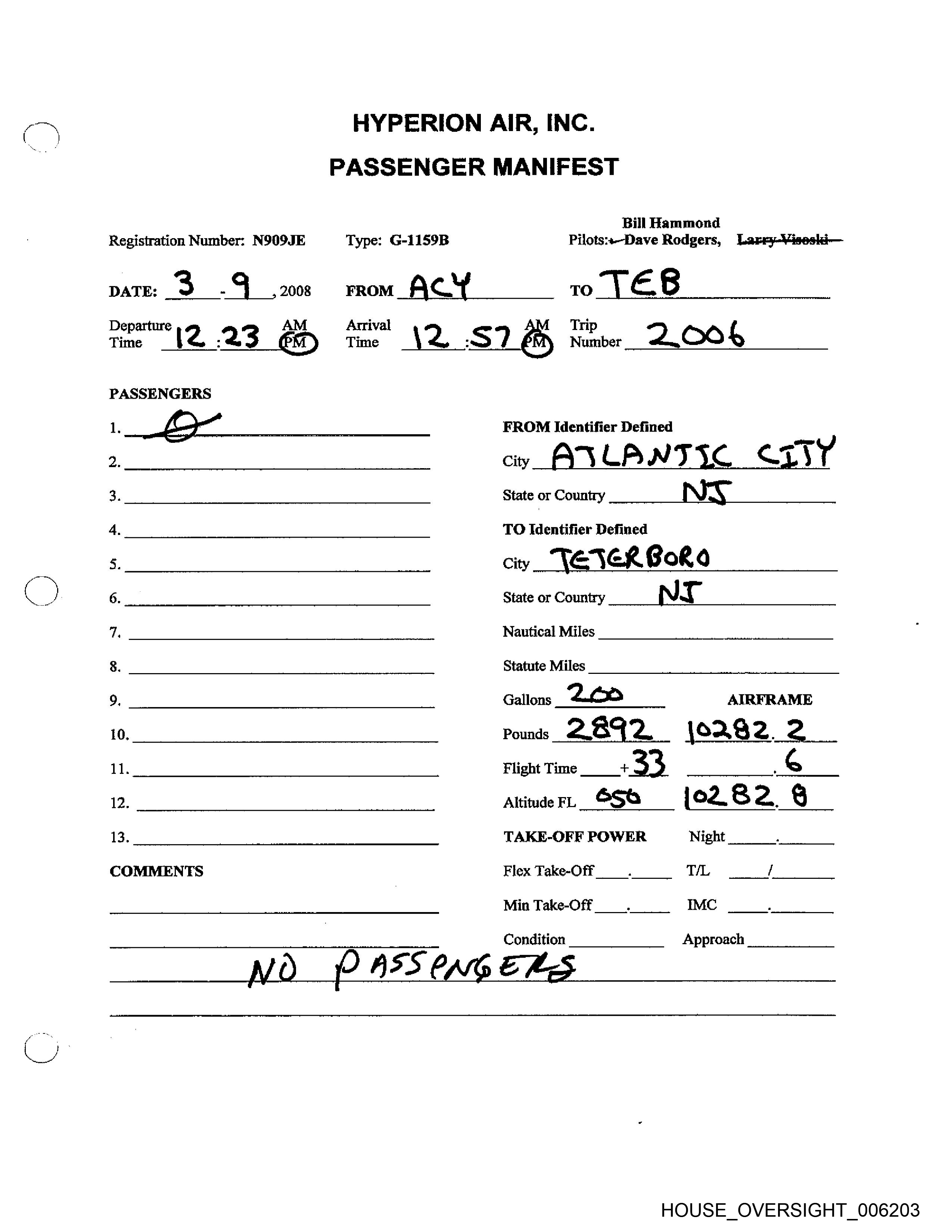 Registration Number: NS09JF ‘Type: G-T159R Pilots: . BereRuivtts, Larry Viseski--—~