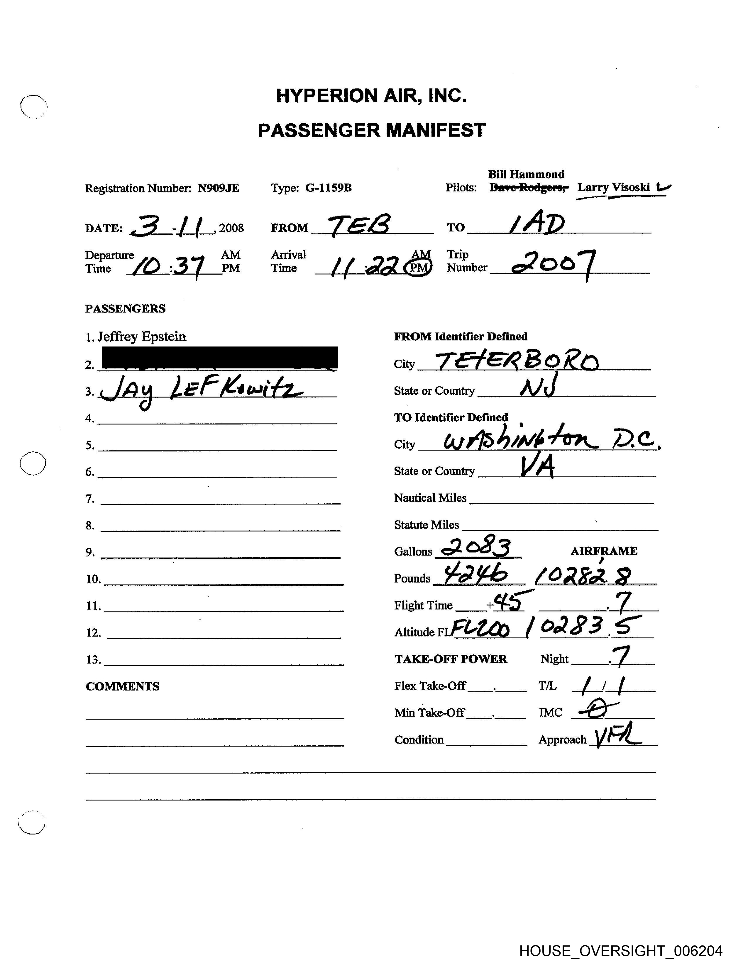 Registration Number: N9O9JE Type: G-1159B Pilots: BaveRedgers- Larry Visoski t-