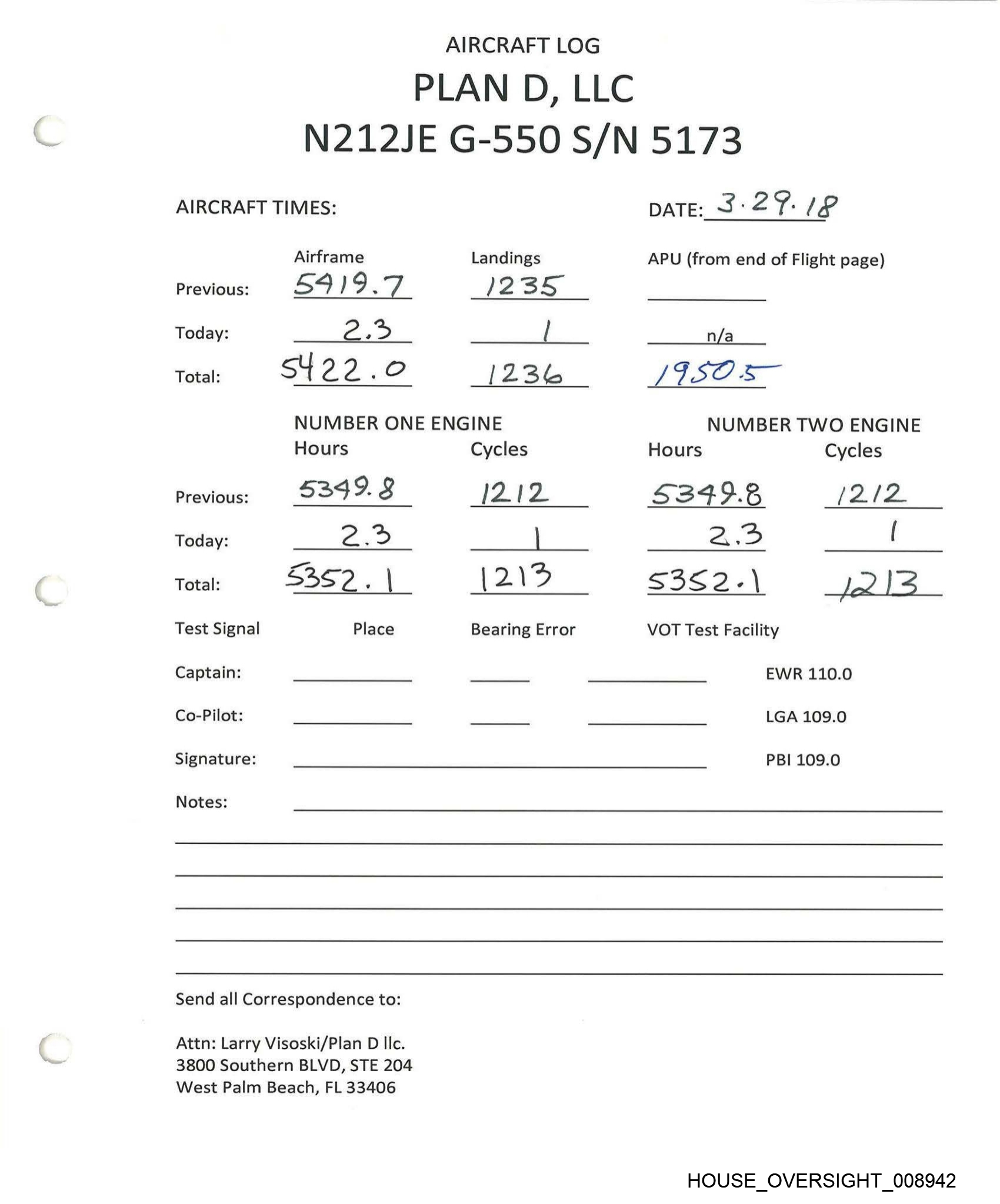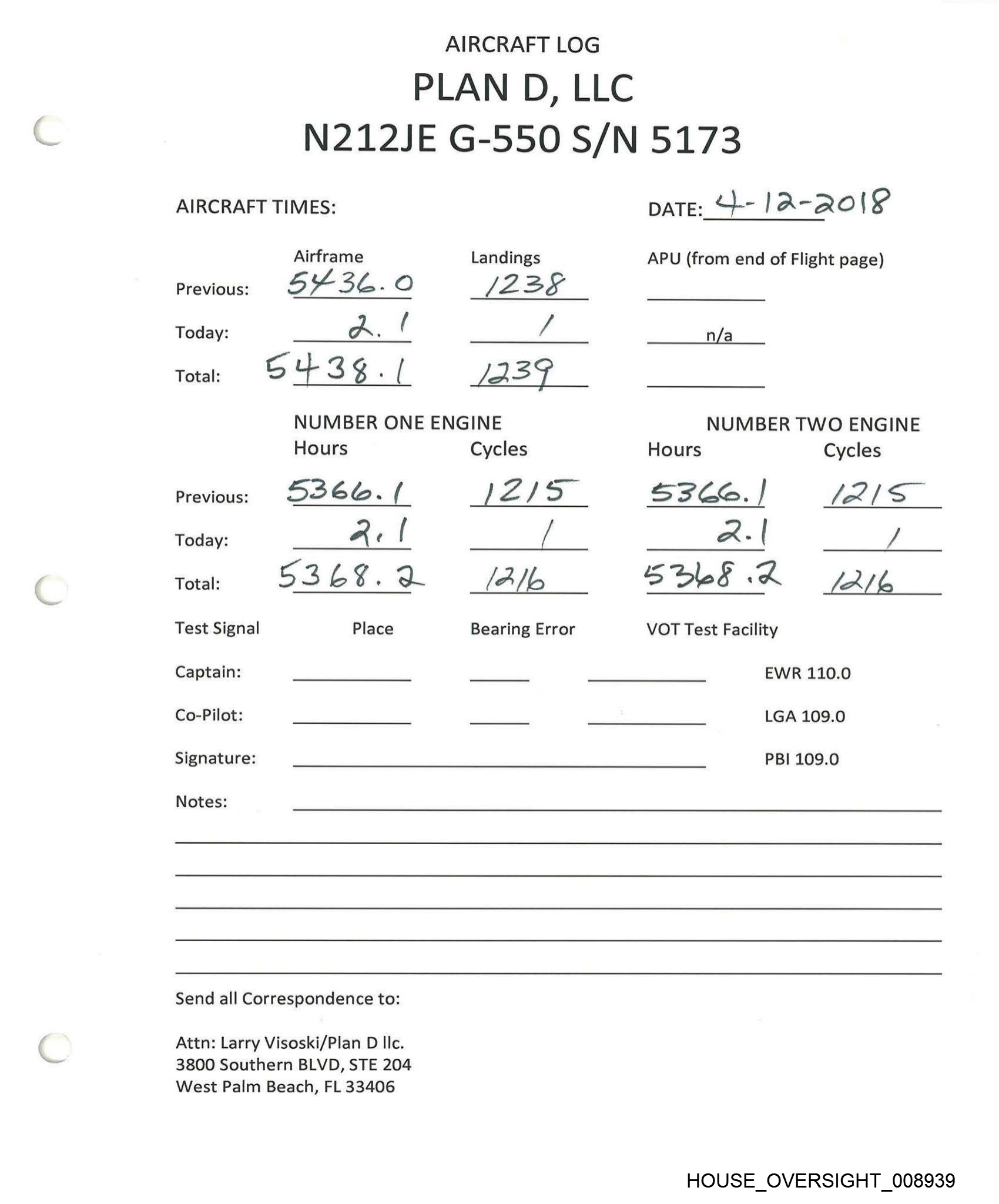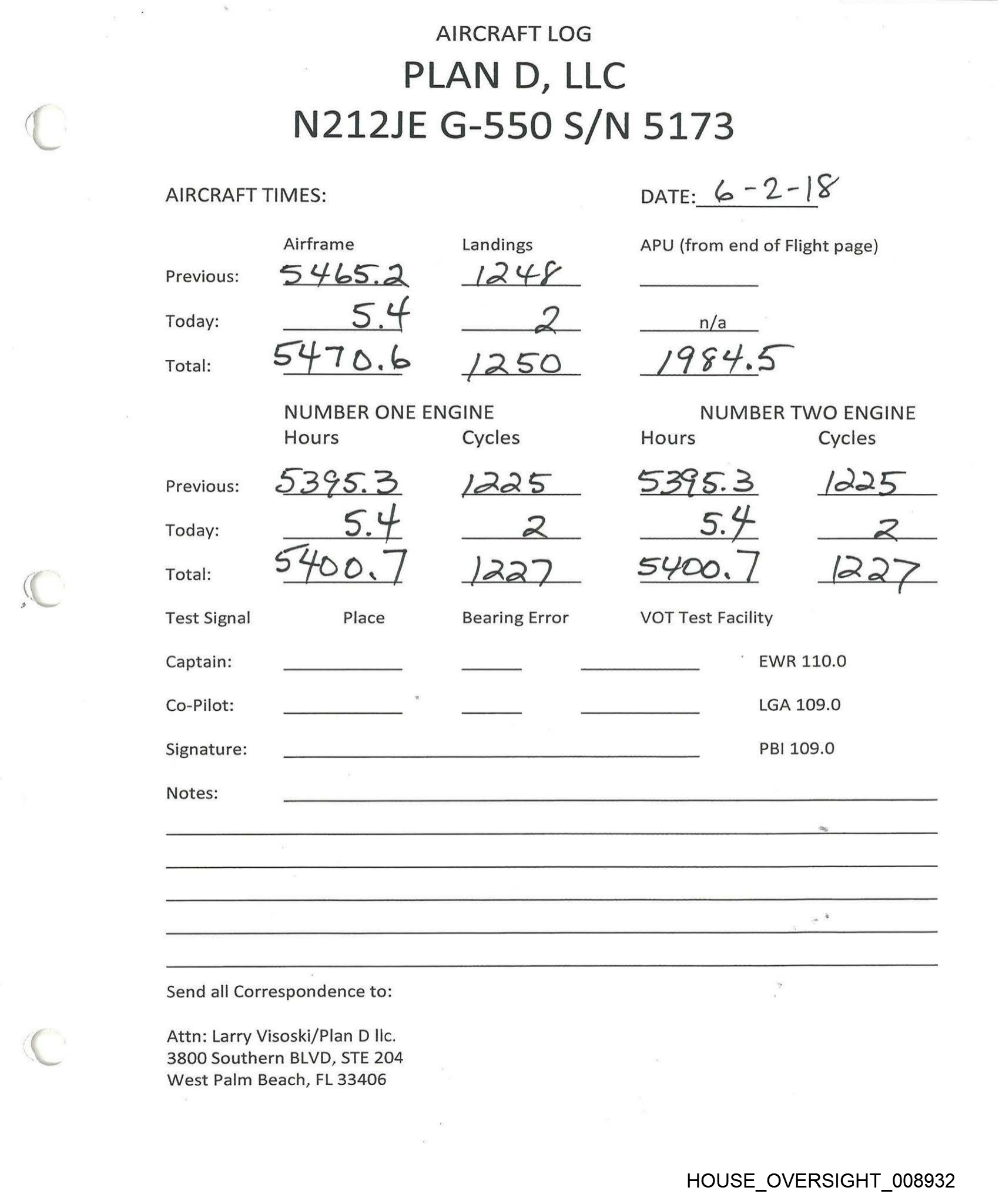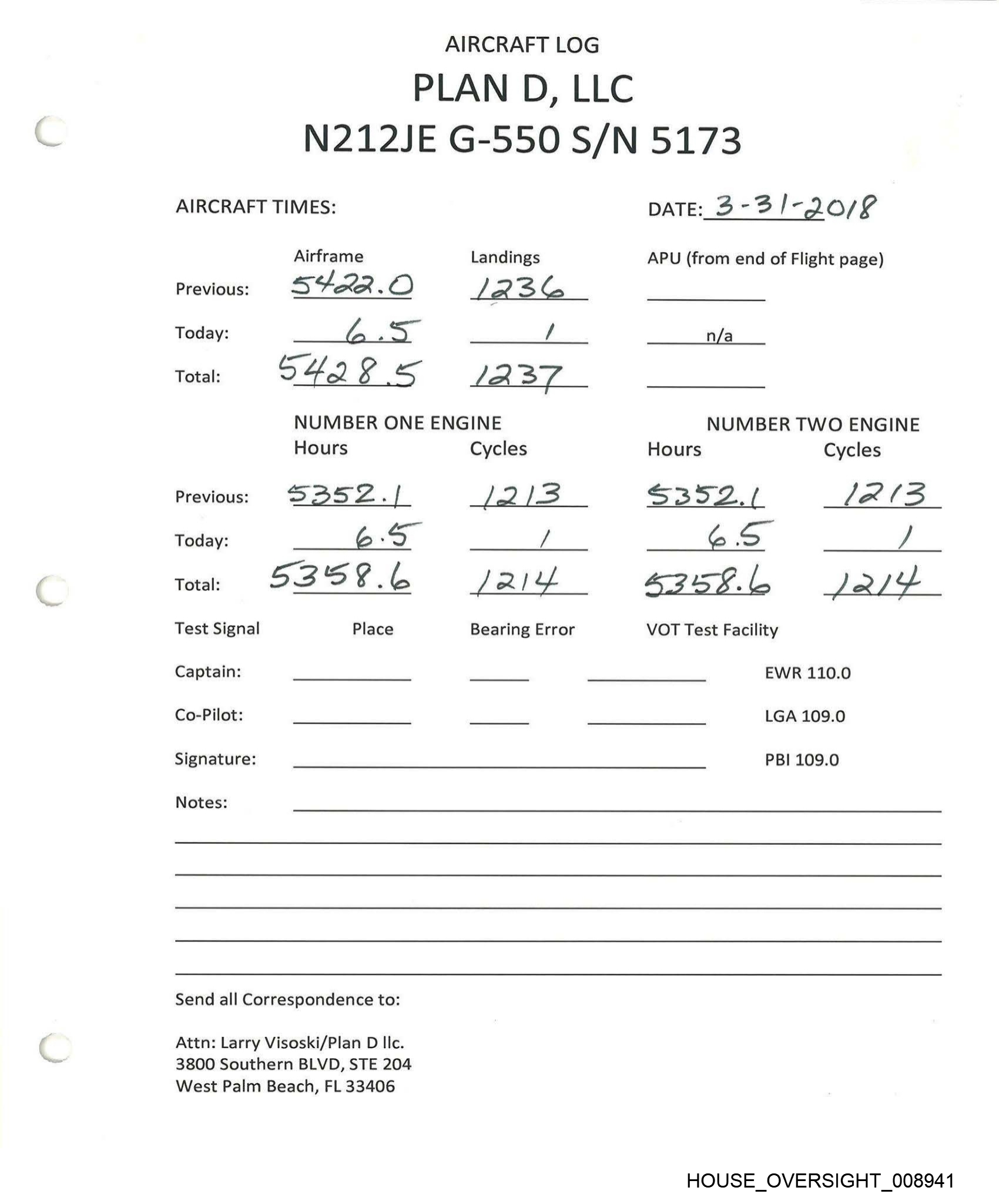 AIRCRAFT LOG