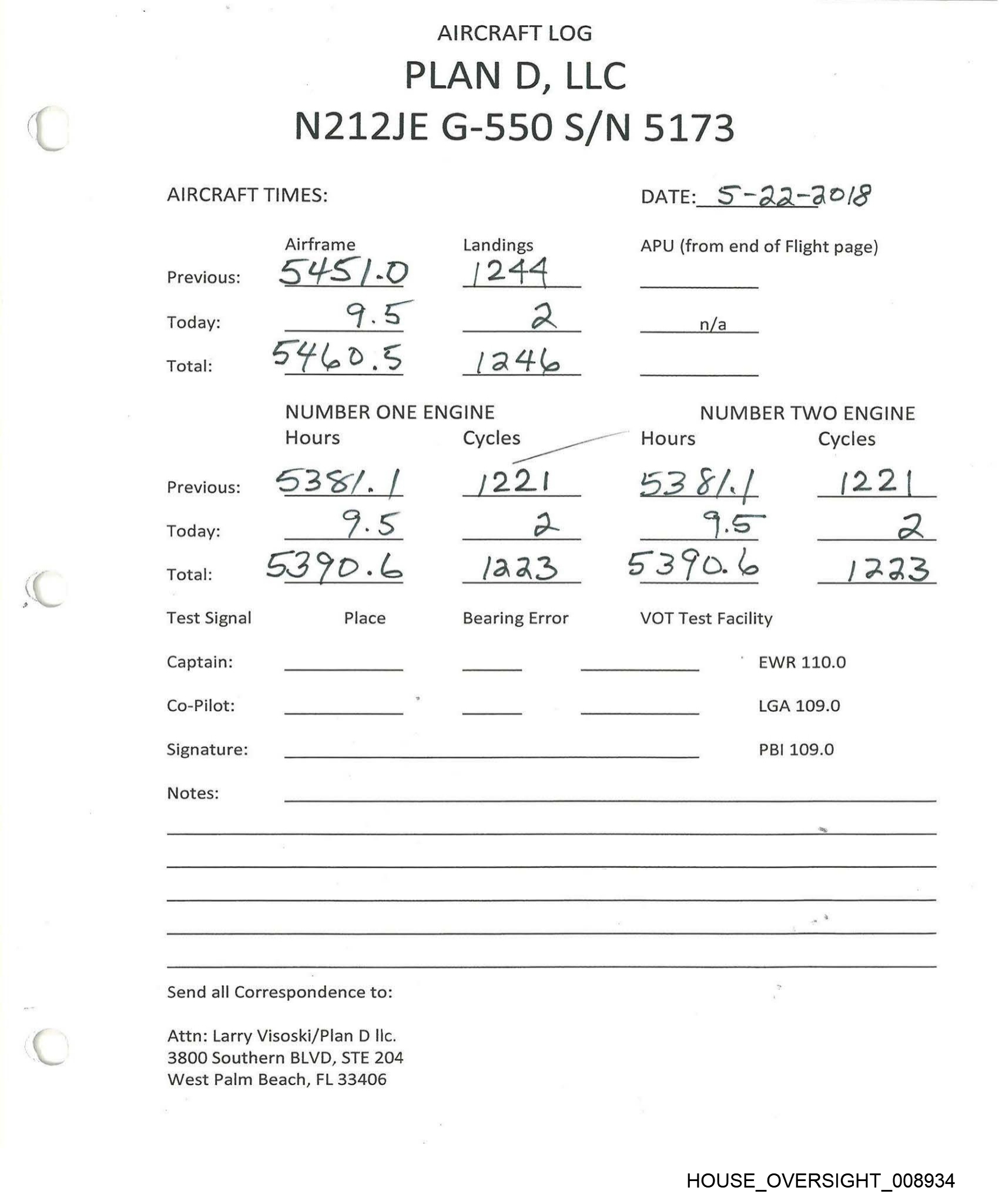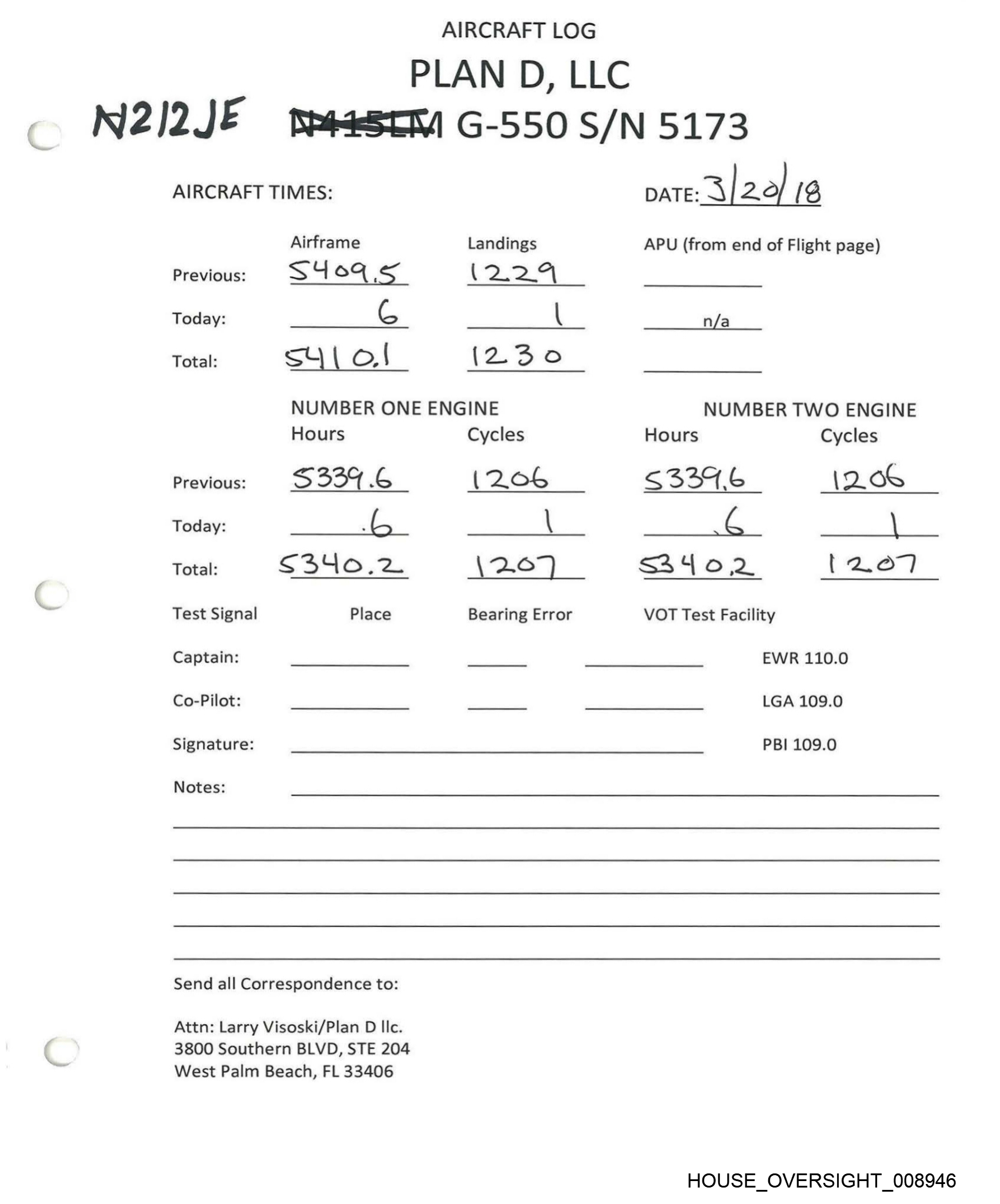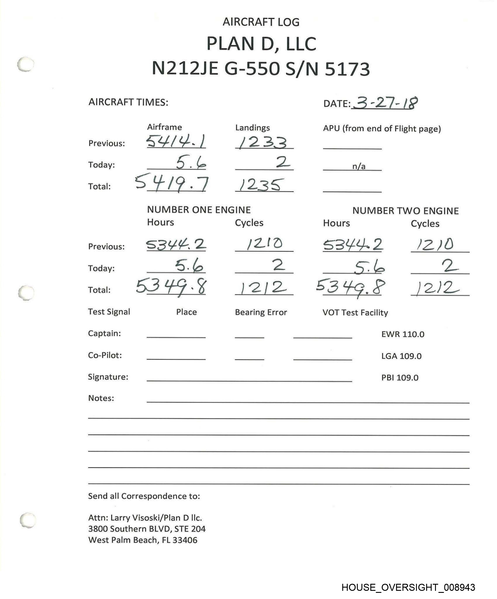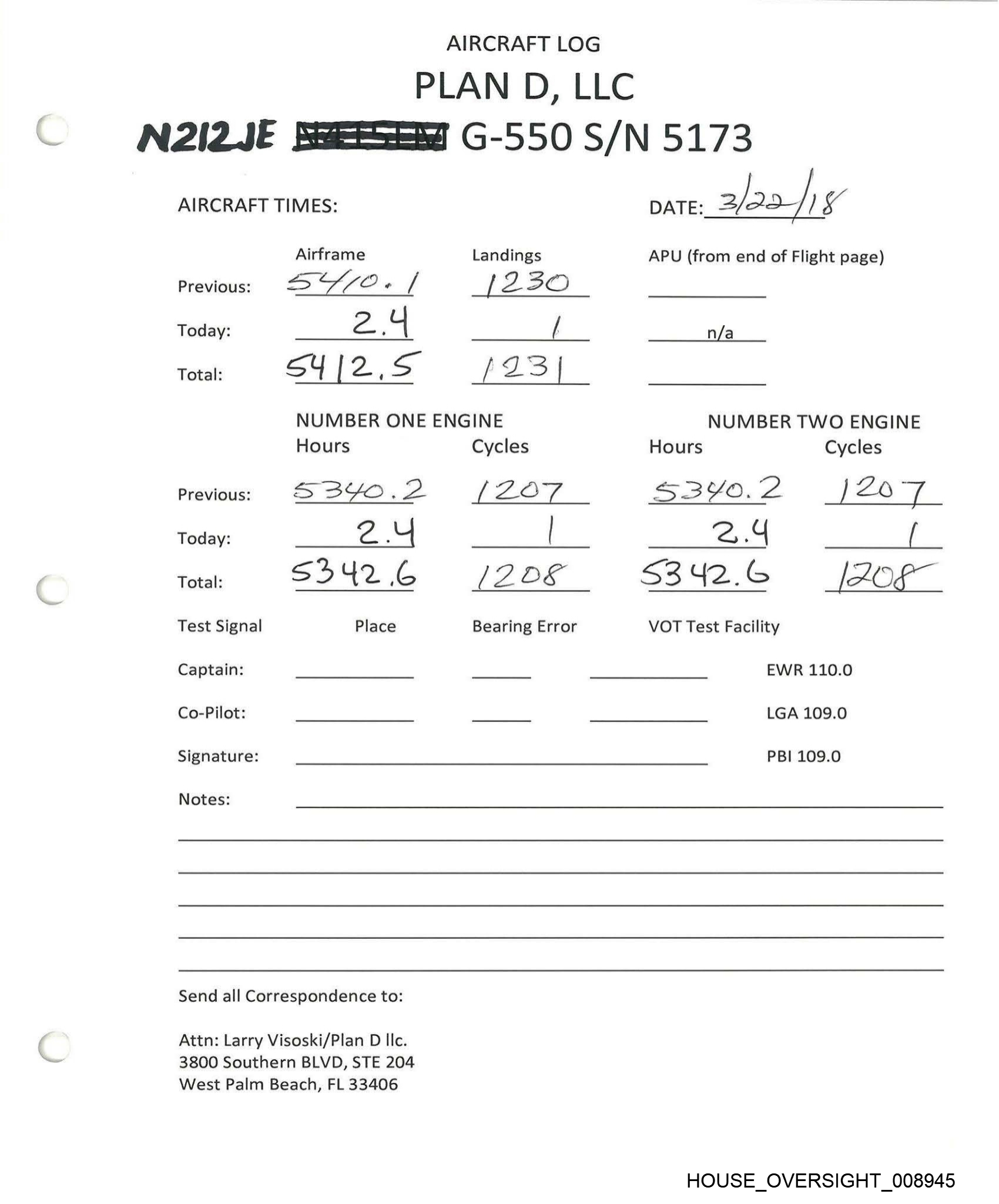 AIRCRAFT LOG