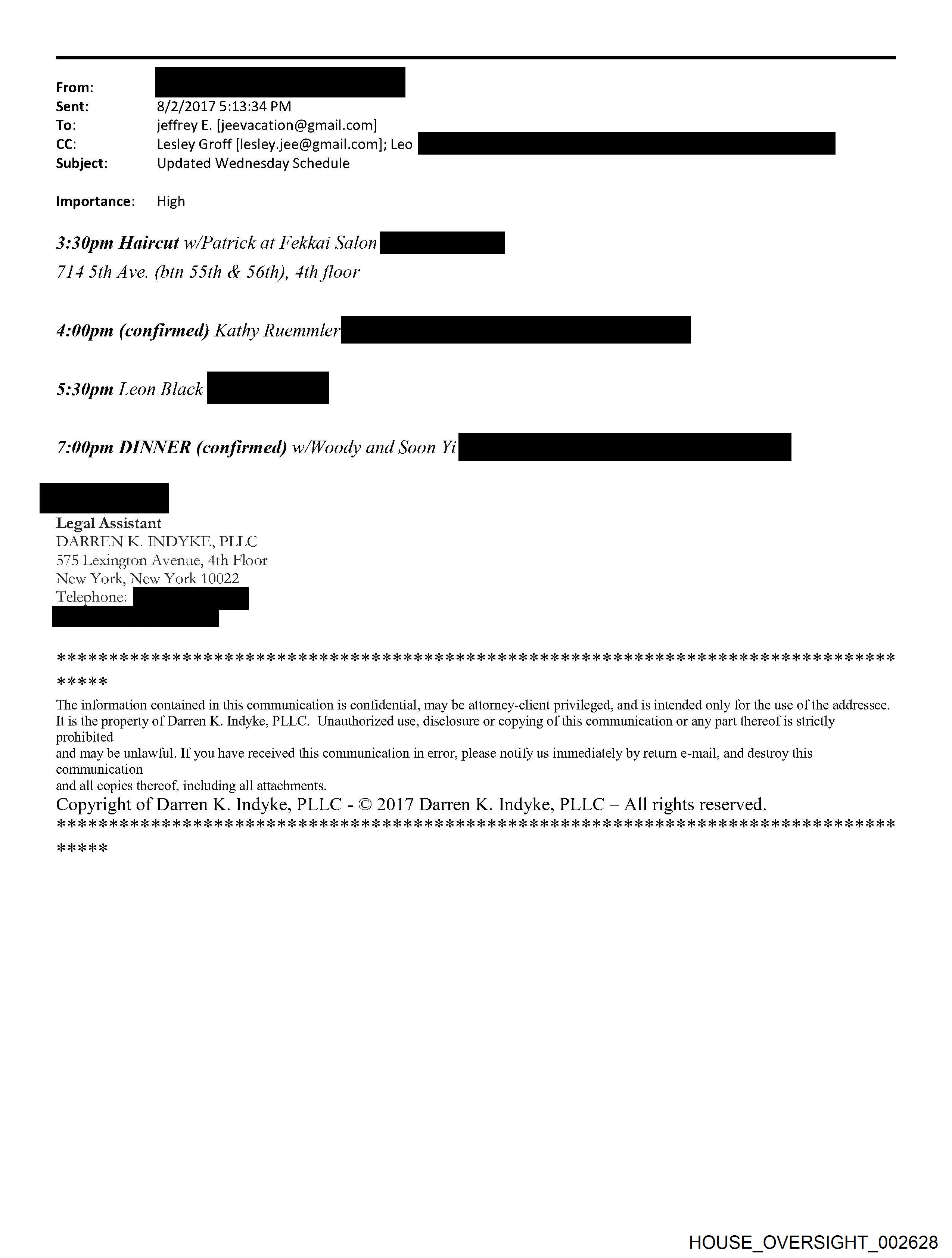 It is the property of Darren K. Indyke, PLLC. Unauthorized use, disclosure or copying of this communication or any part thereof 1s strictly