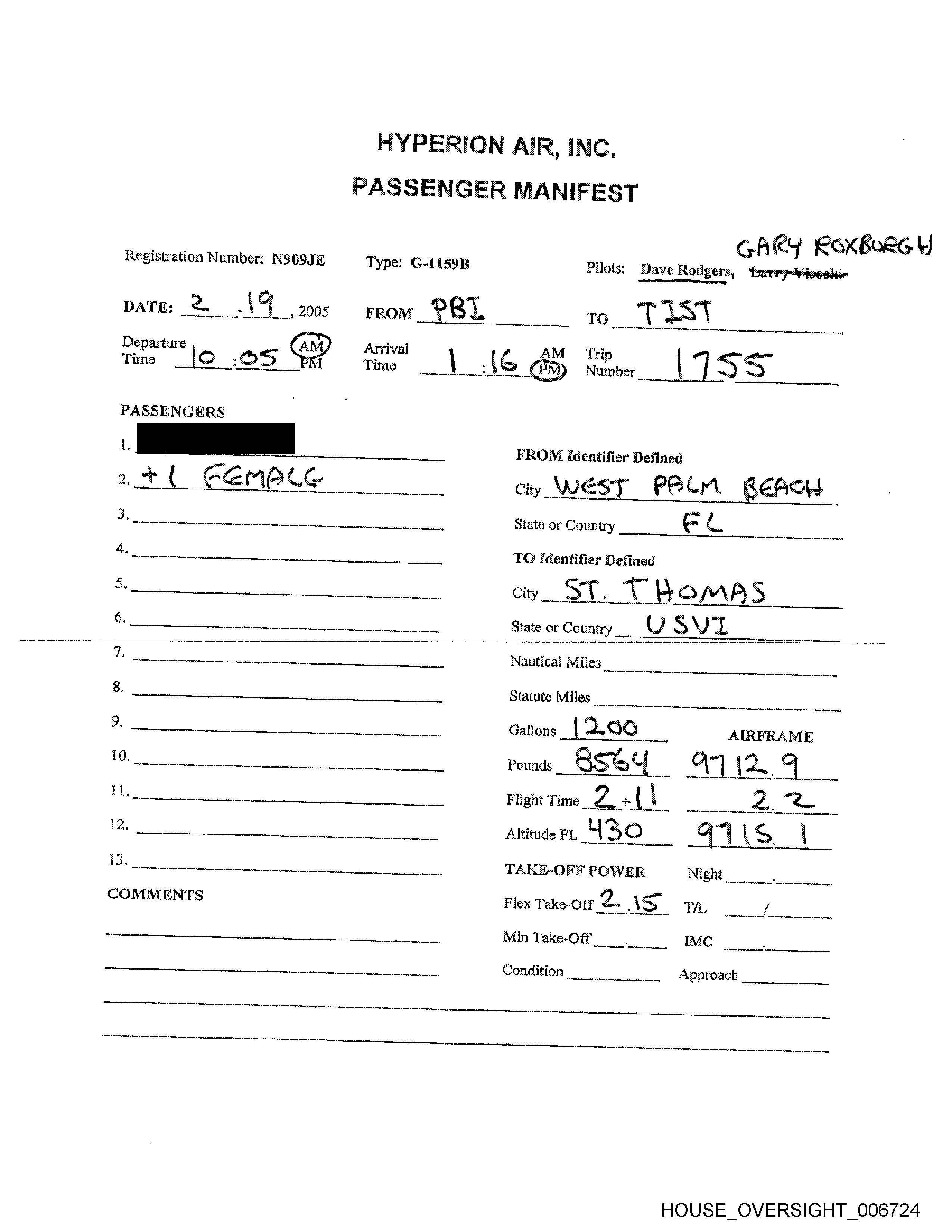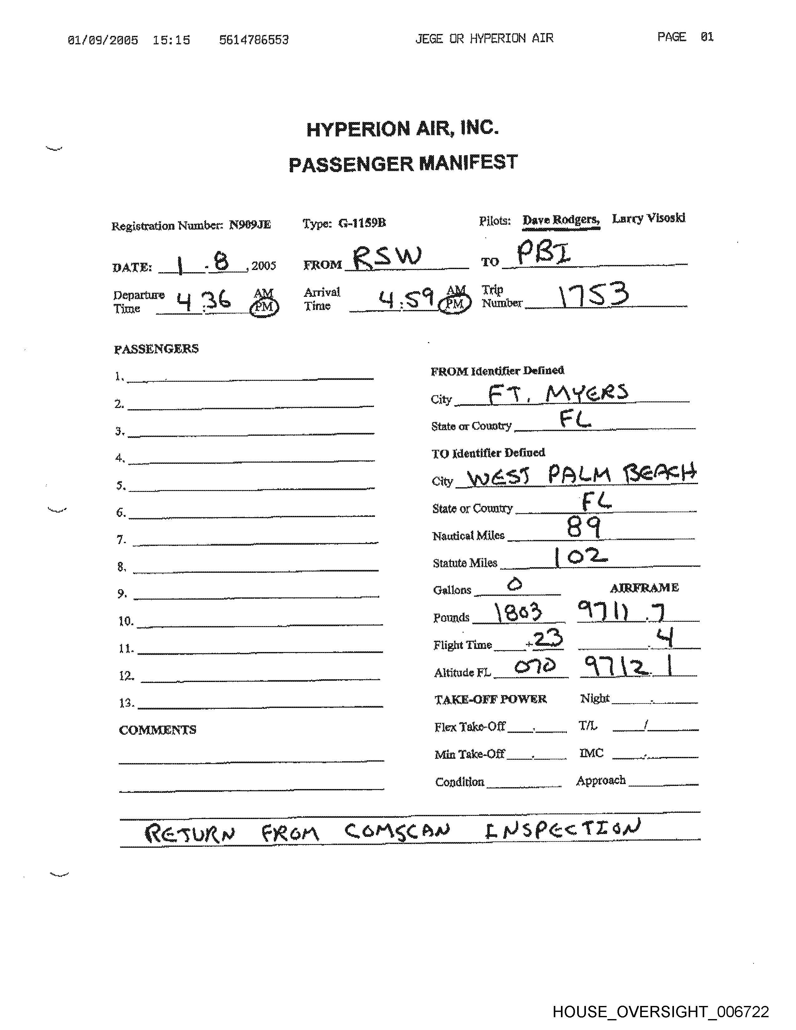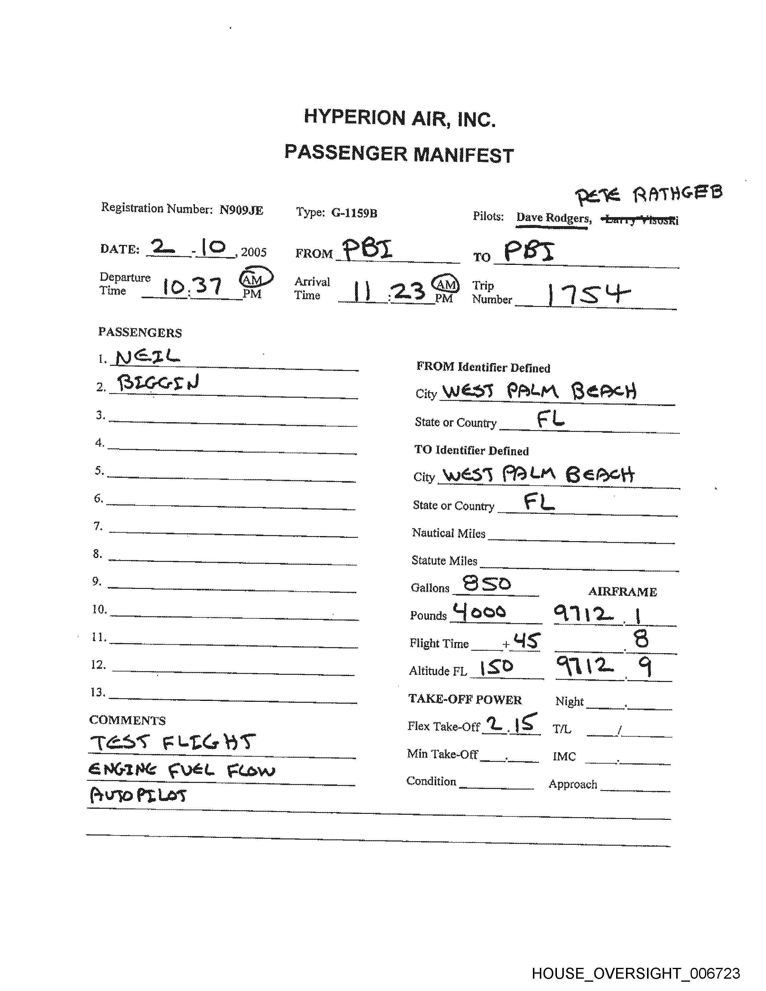 Registration Number: N909JE Type: G-1159B8 Pilots: Dave Rodgers,