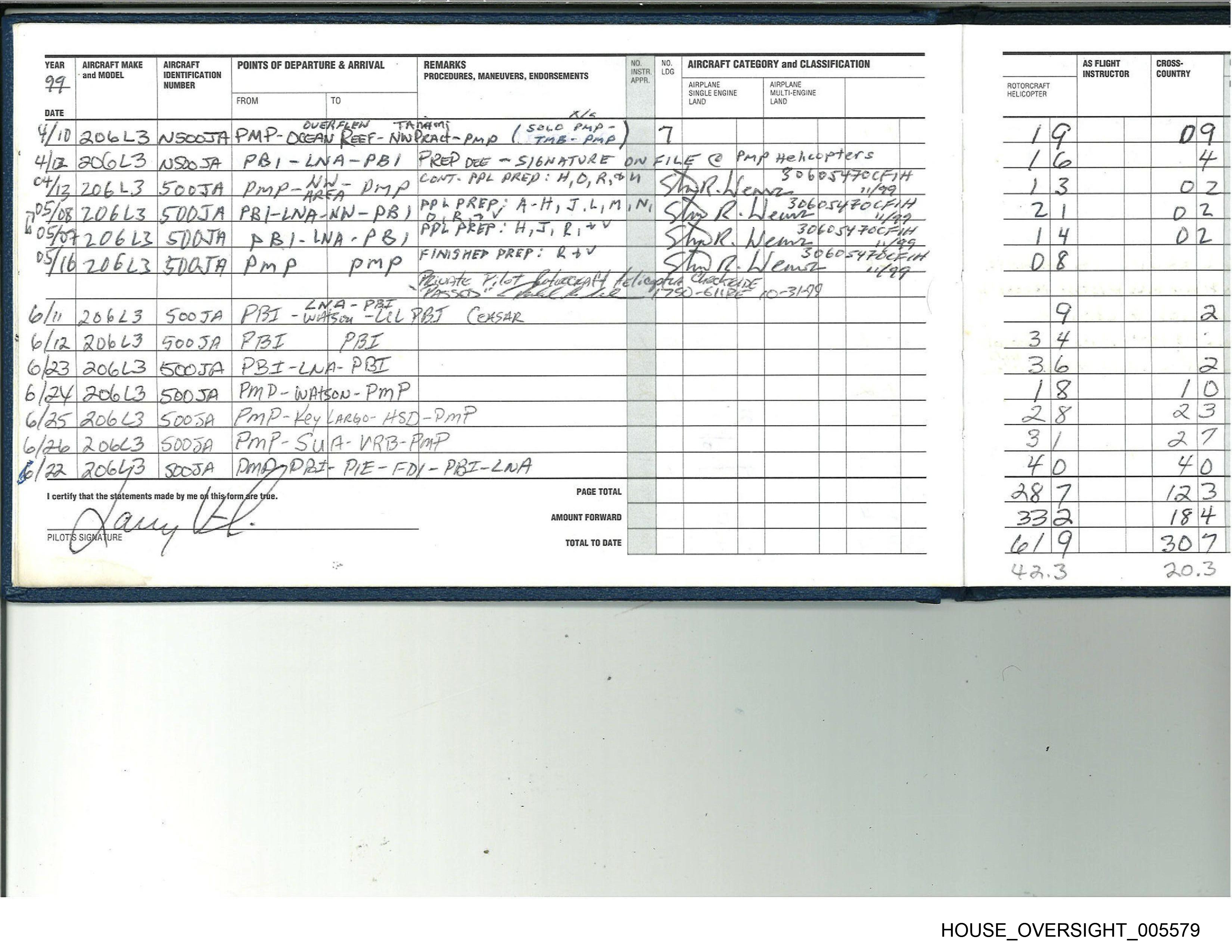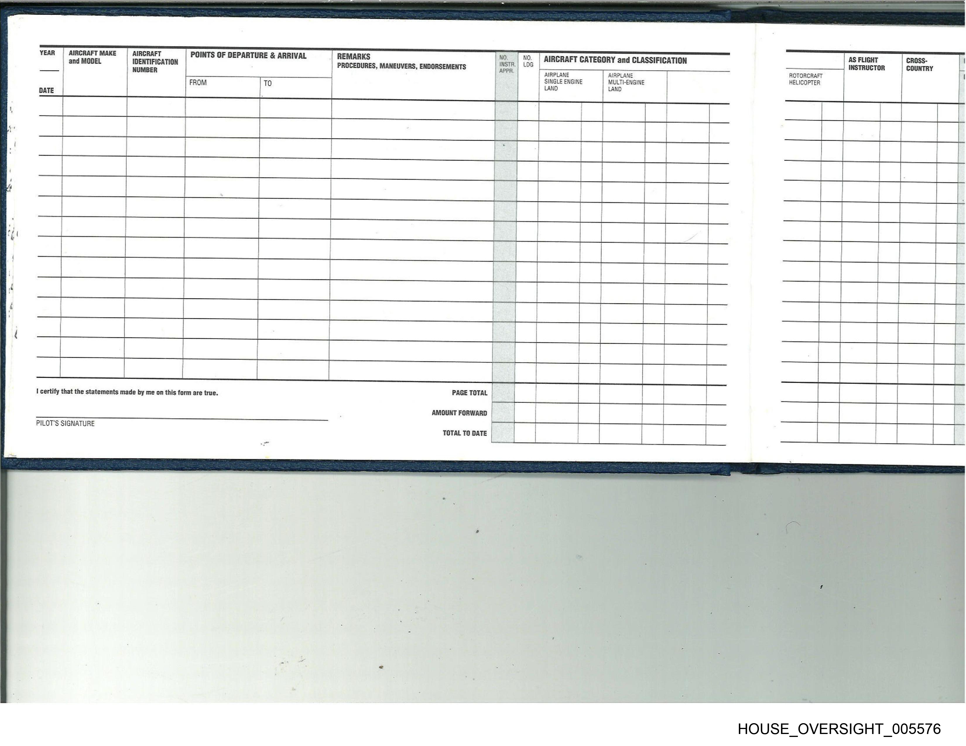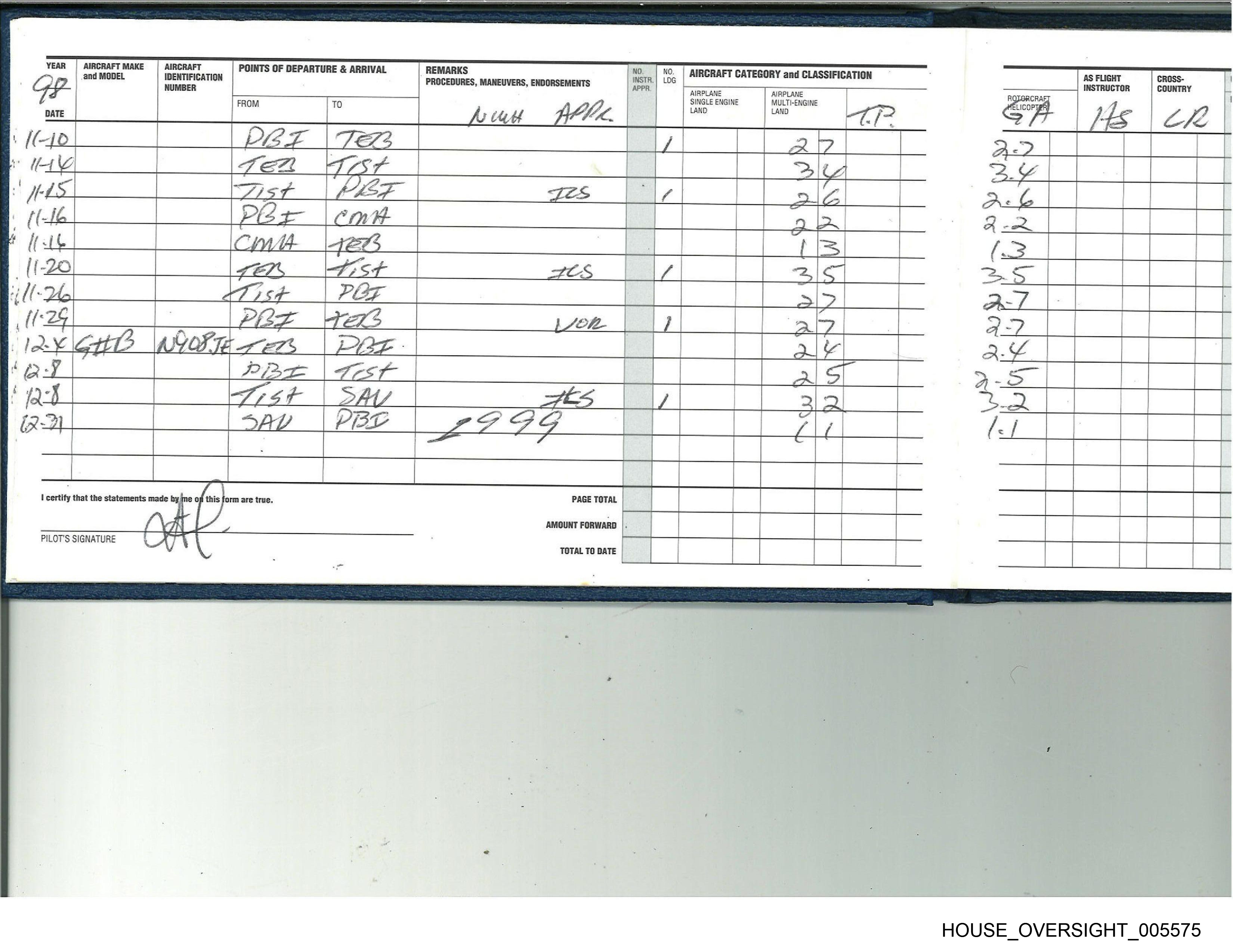 PILOT'S SIGNATURE TOTAL TO DATE