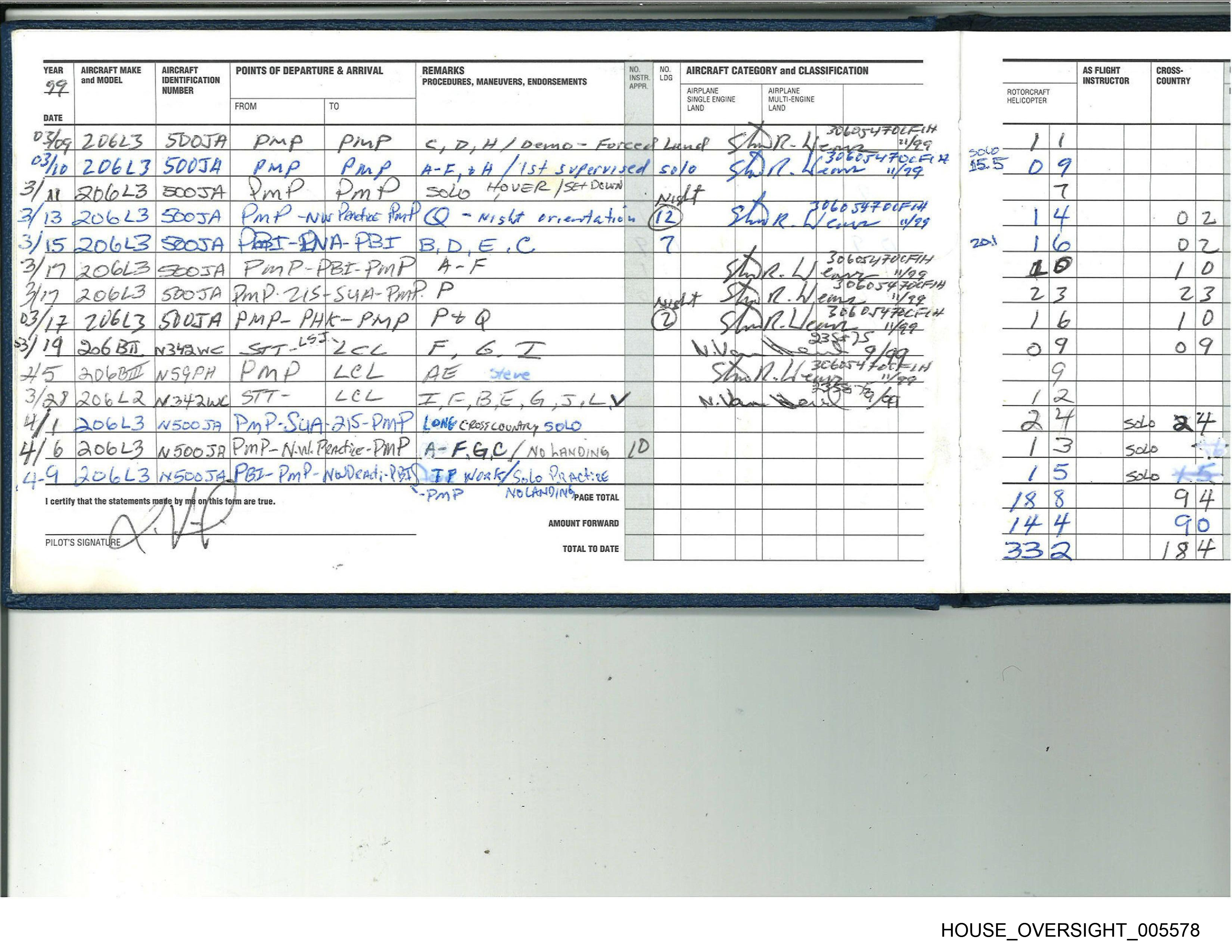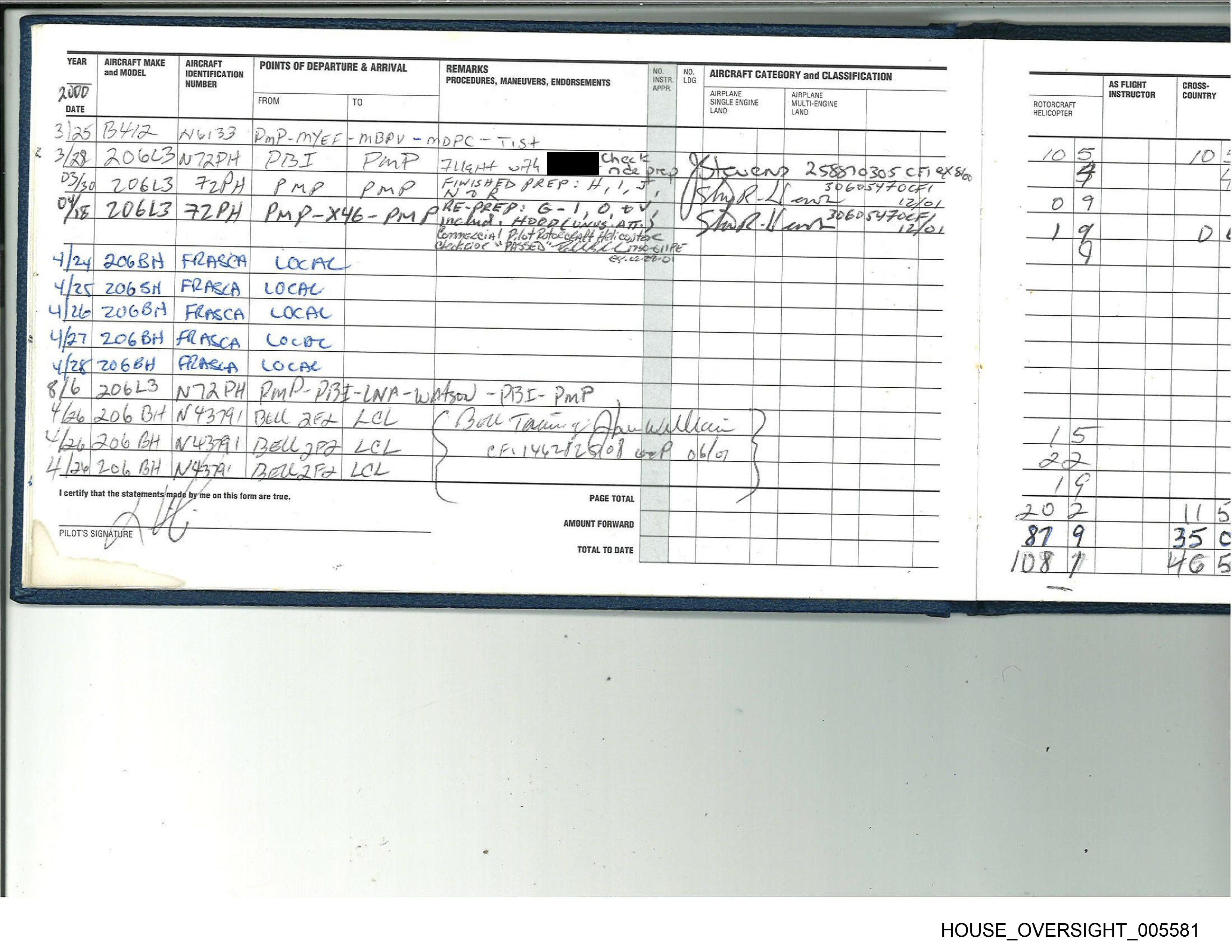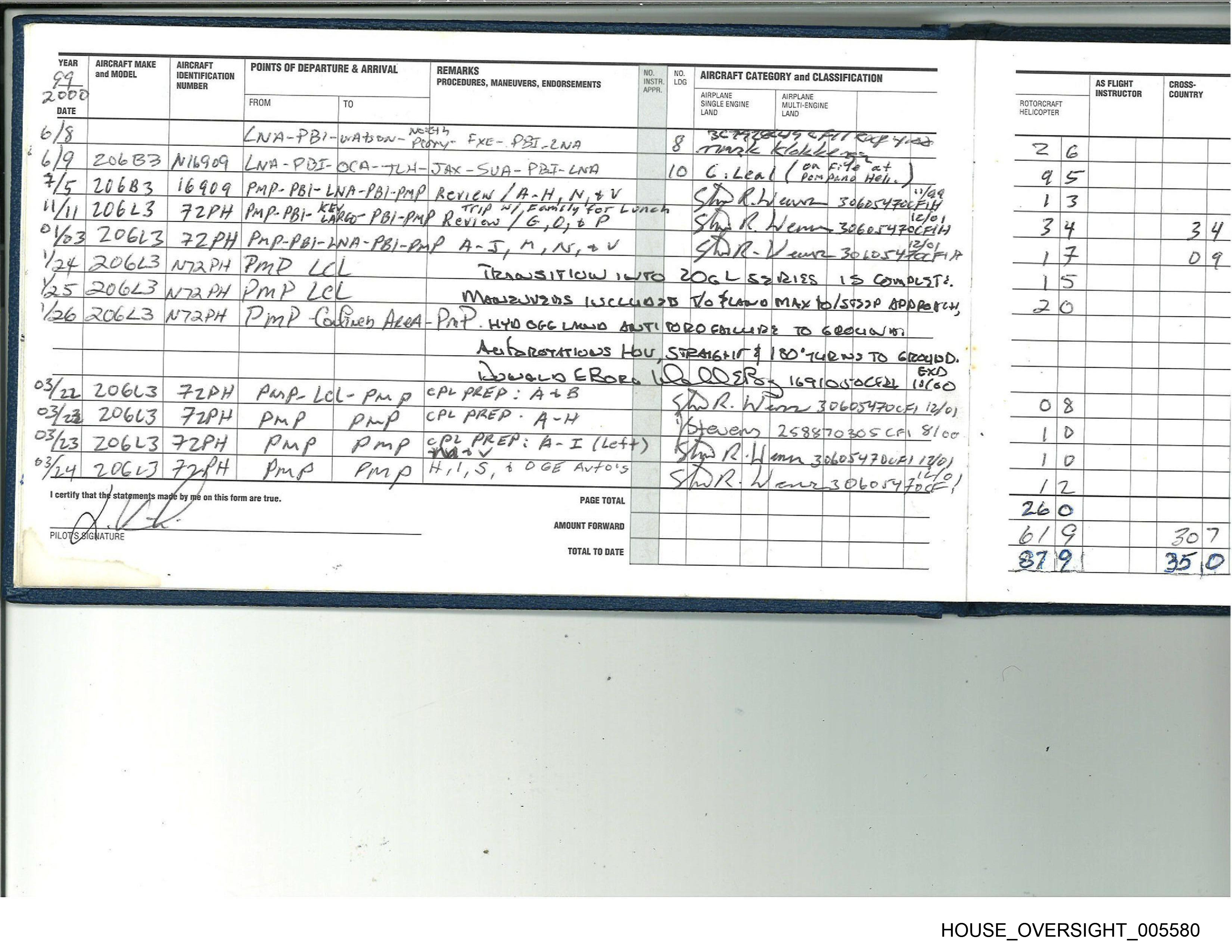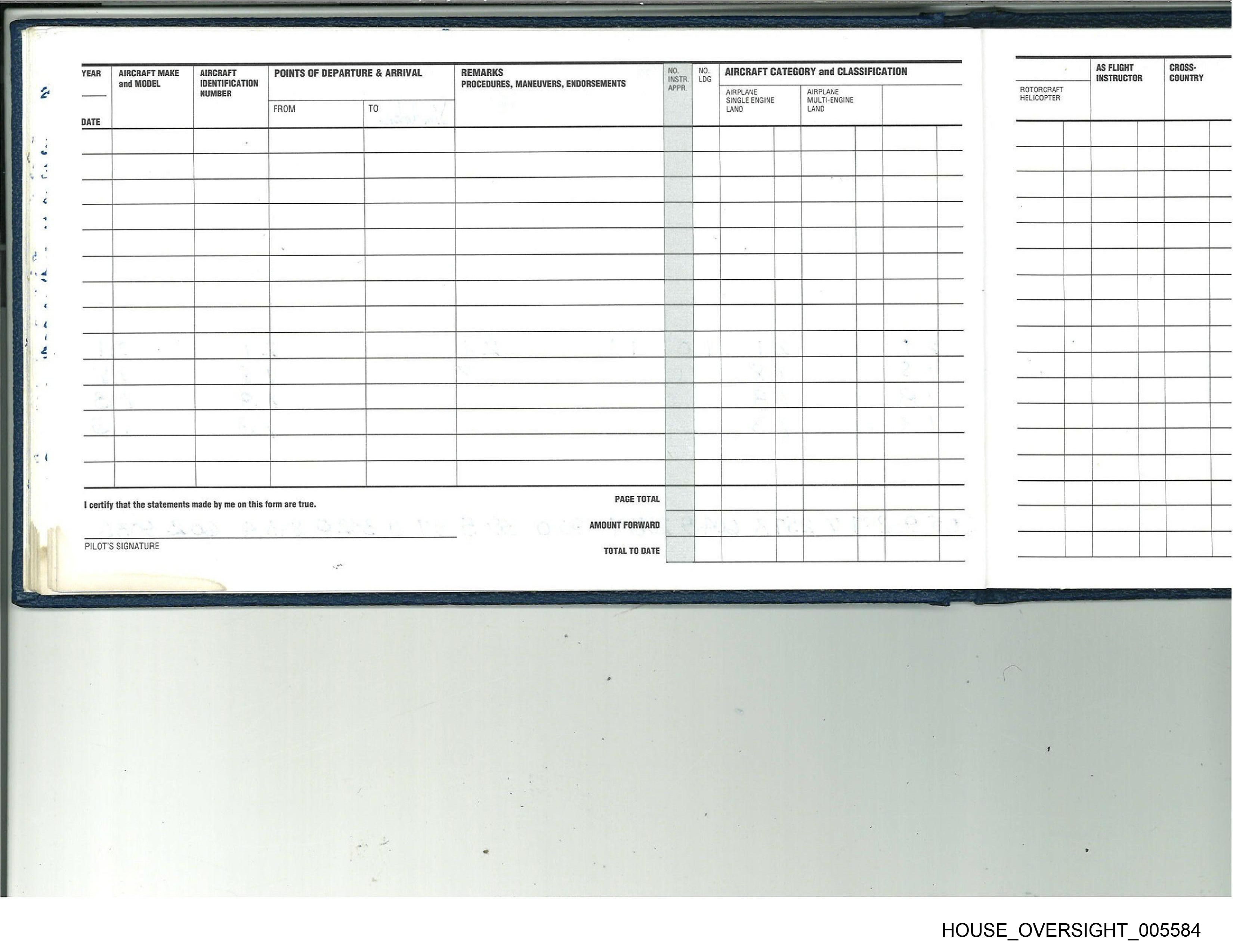 PILOT'S SIGNATURE TOTAL TO DATE