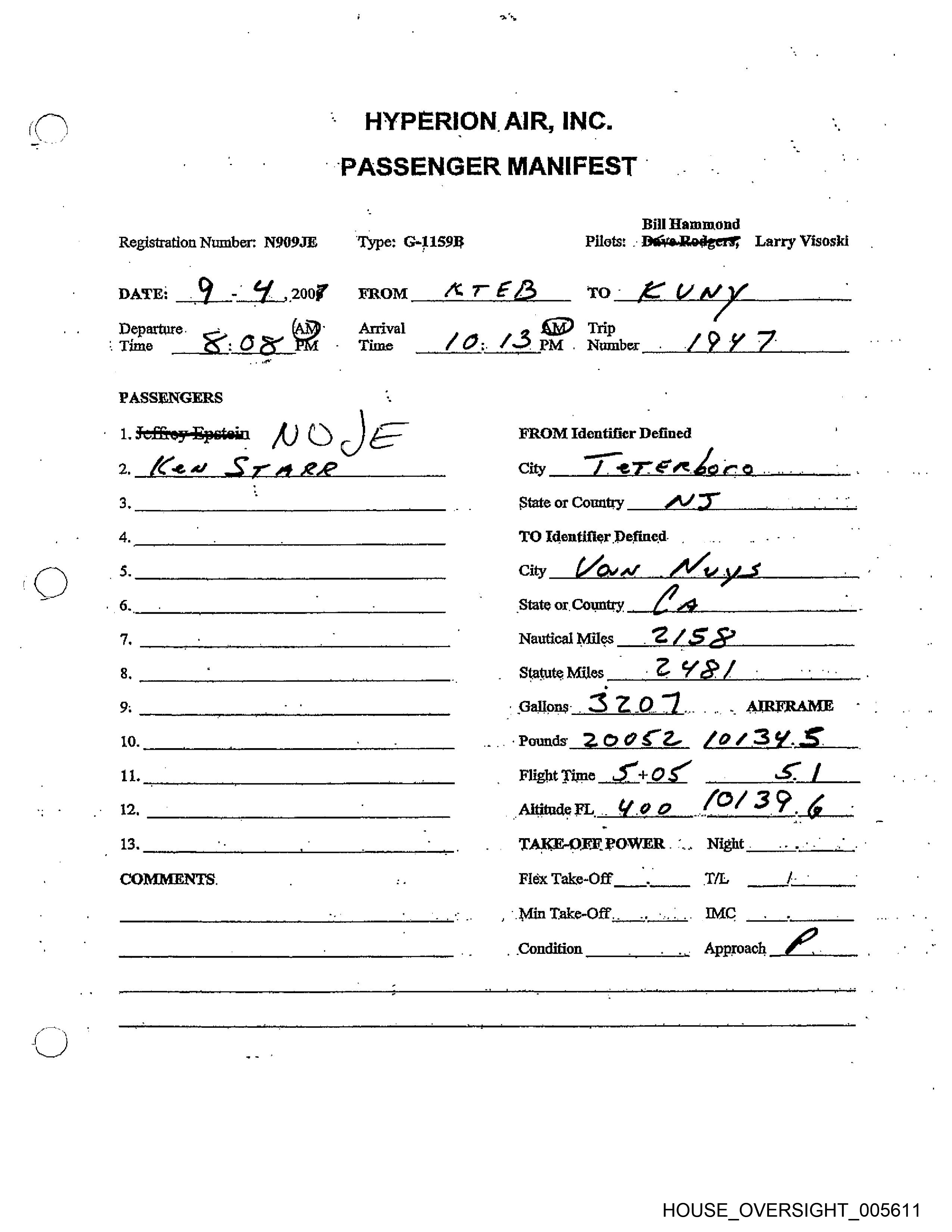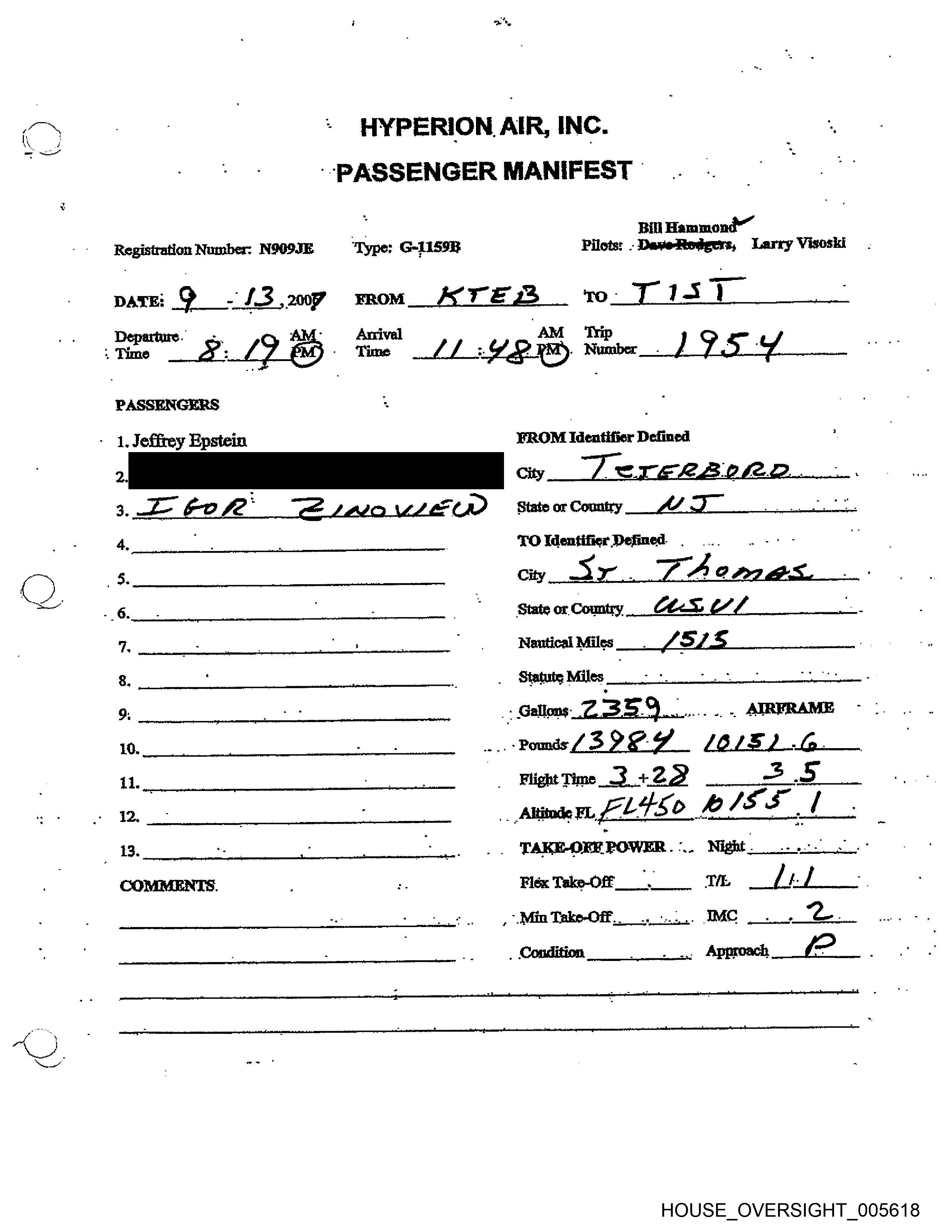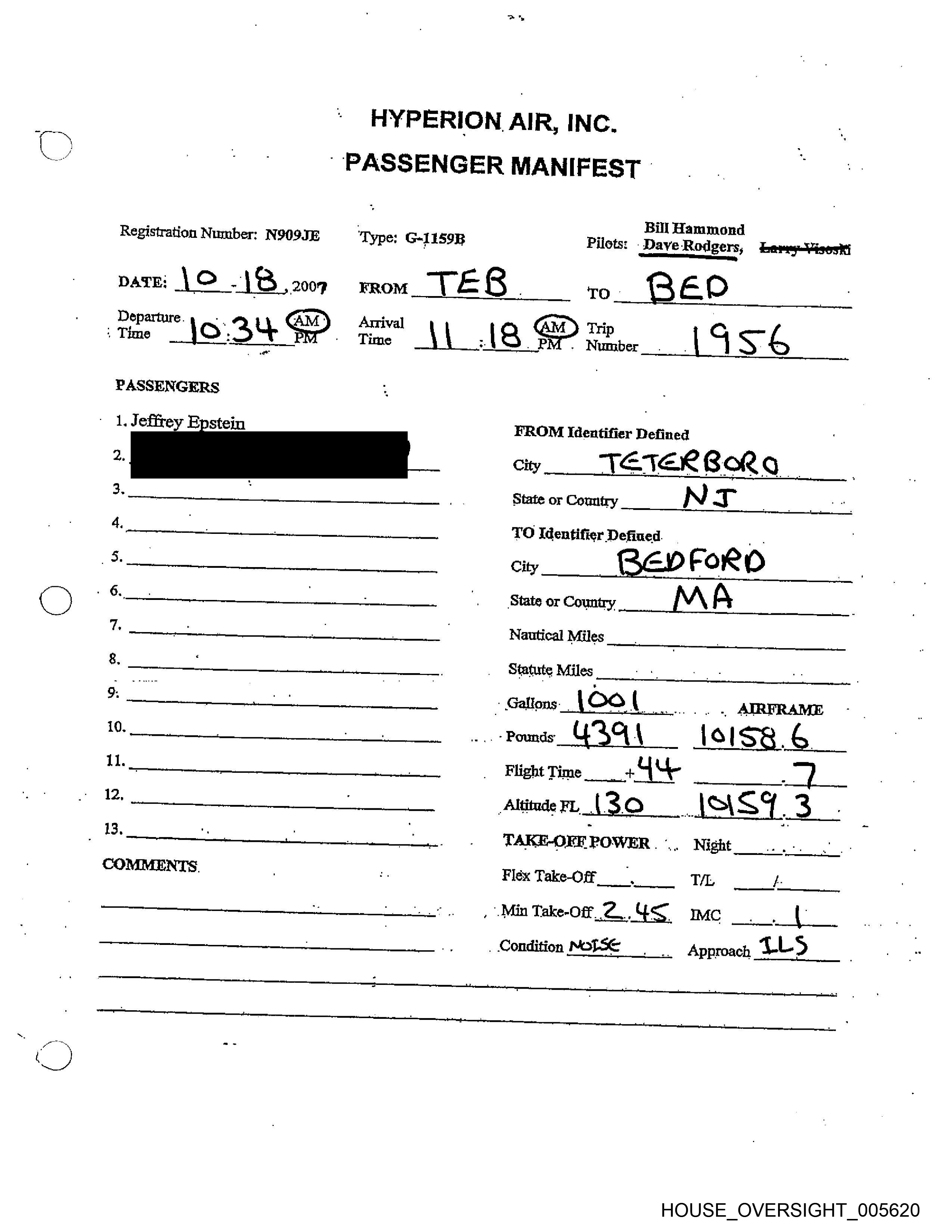 Registration Number: N909JE ‘Type: G-1159R