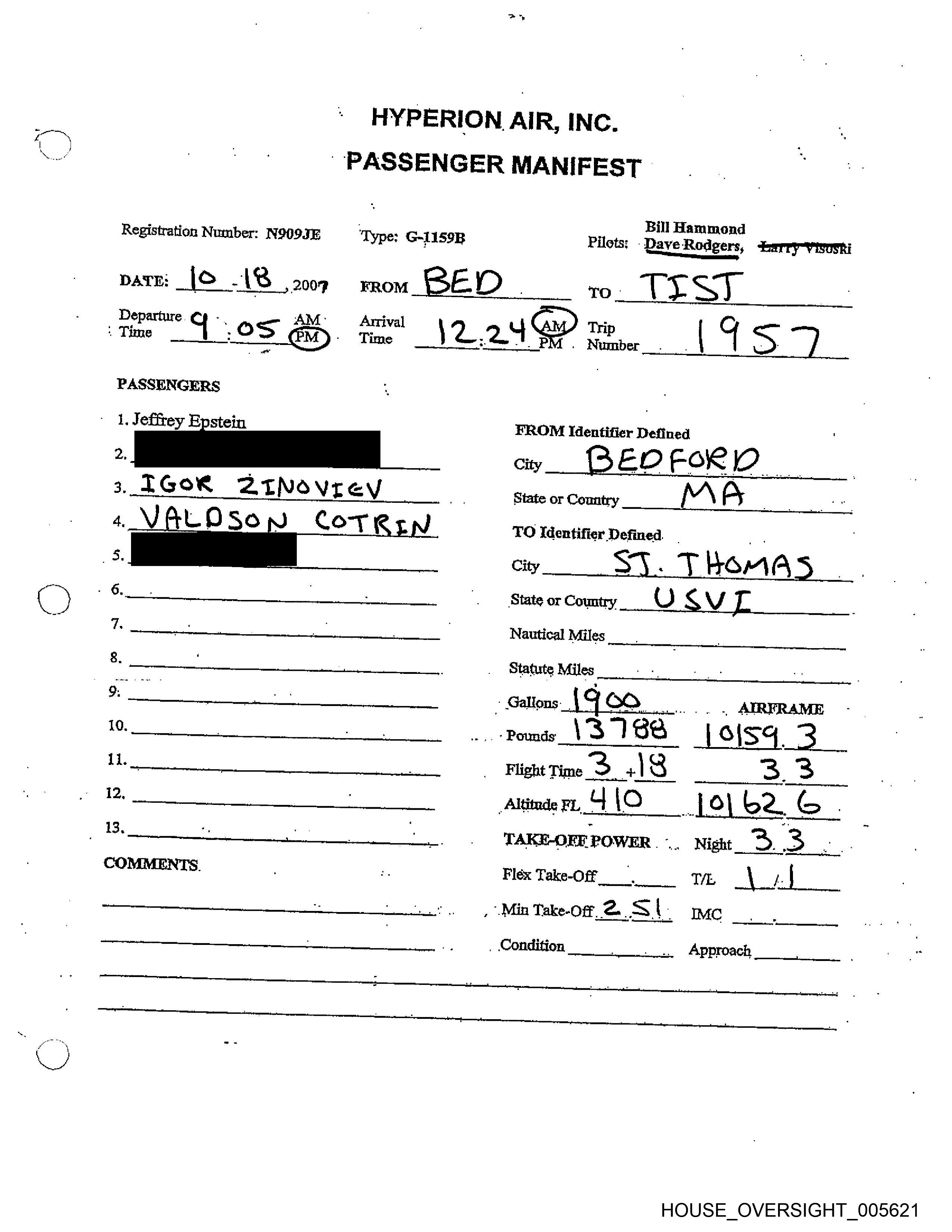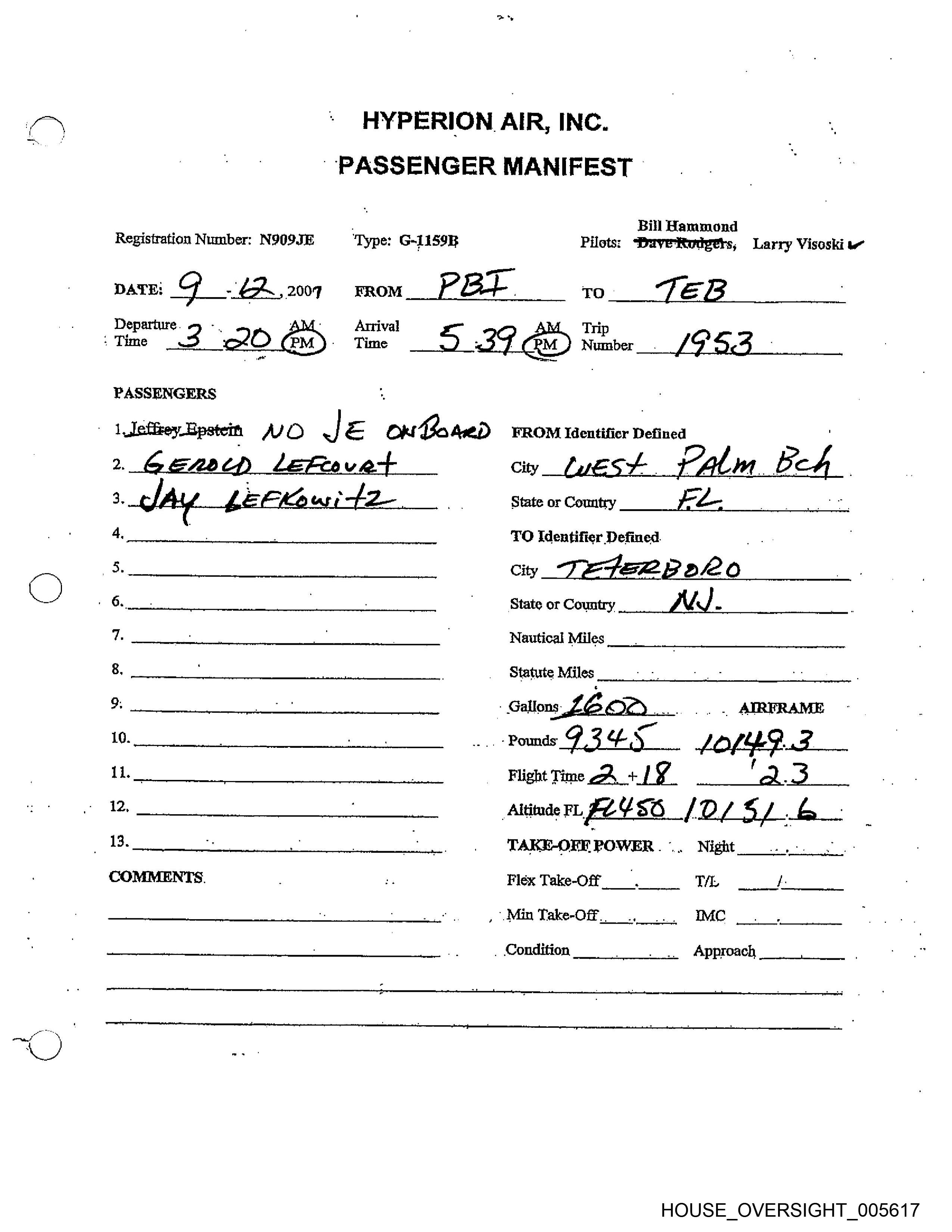 Registration Number: N909JE Type: G-L1S9B Pilots: Dave Redgers, Larry Visoski »~