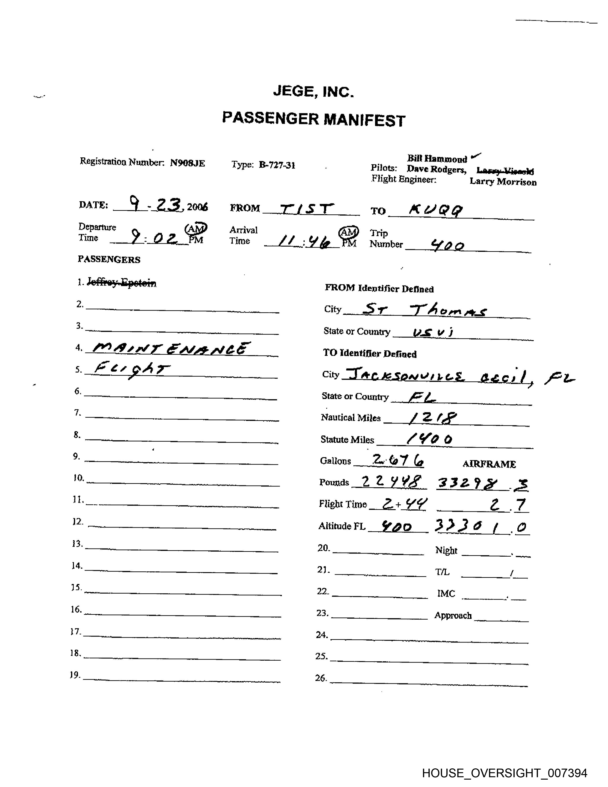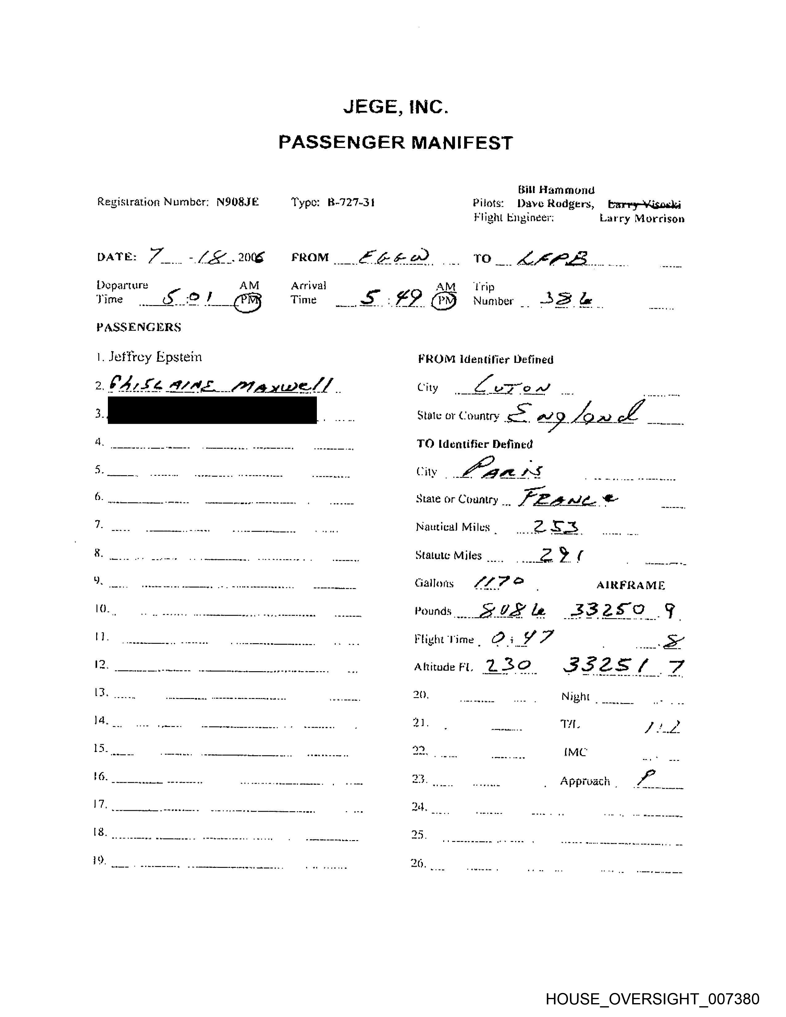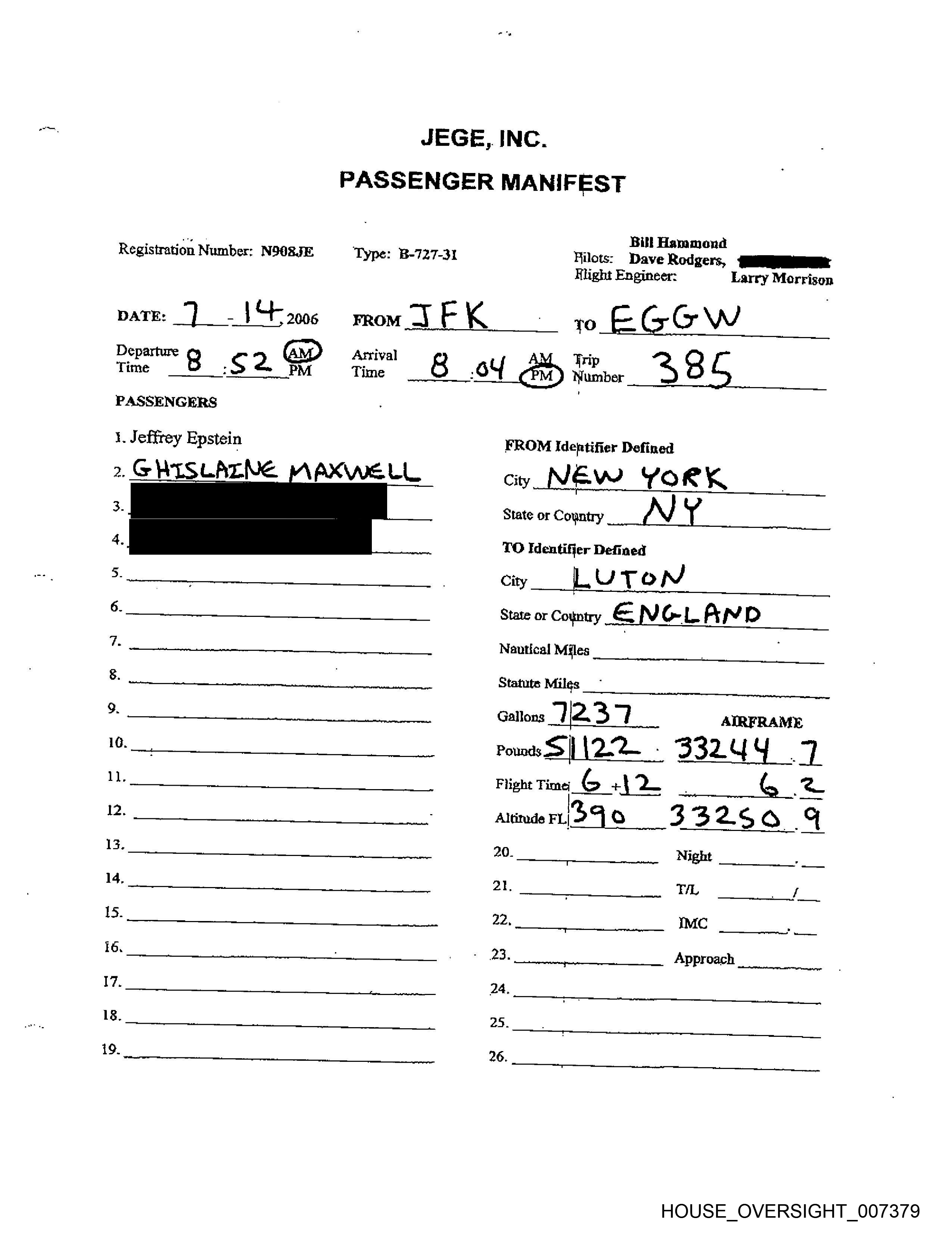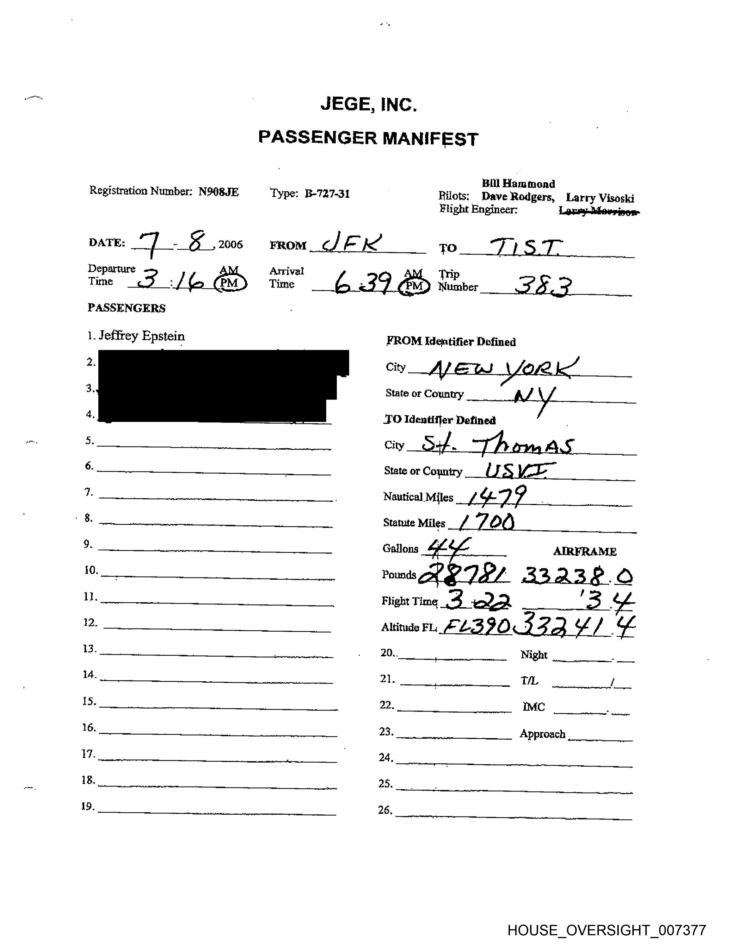 Departure Arrival Trip