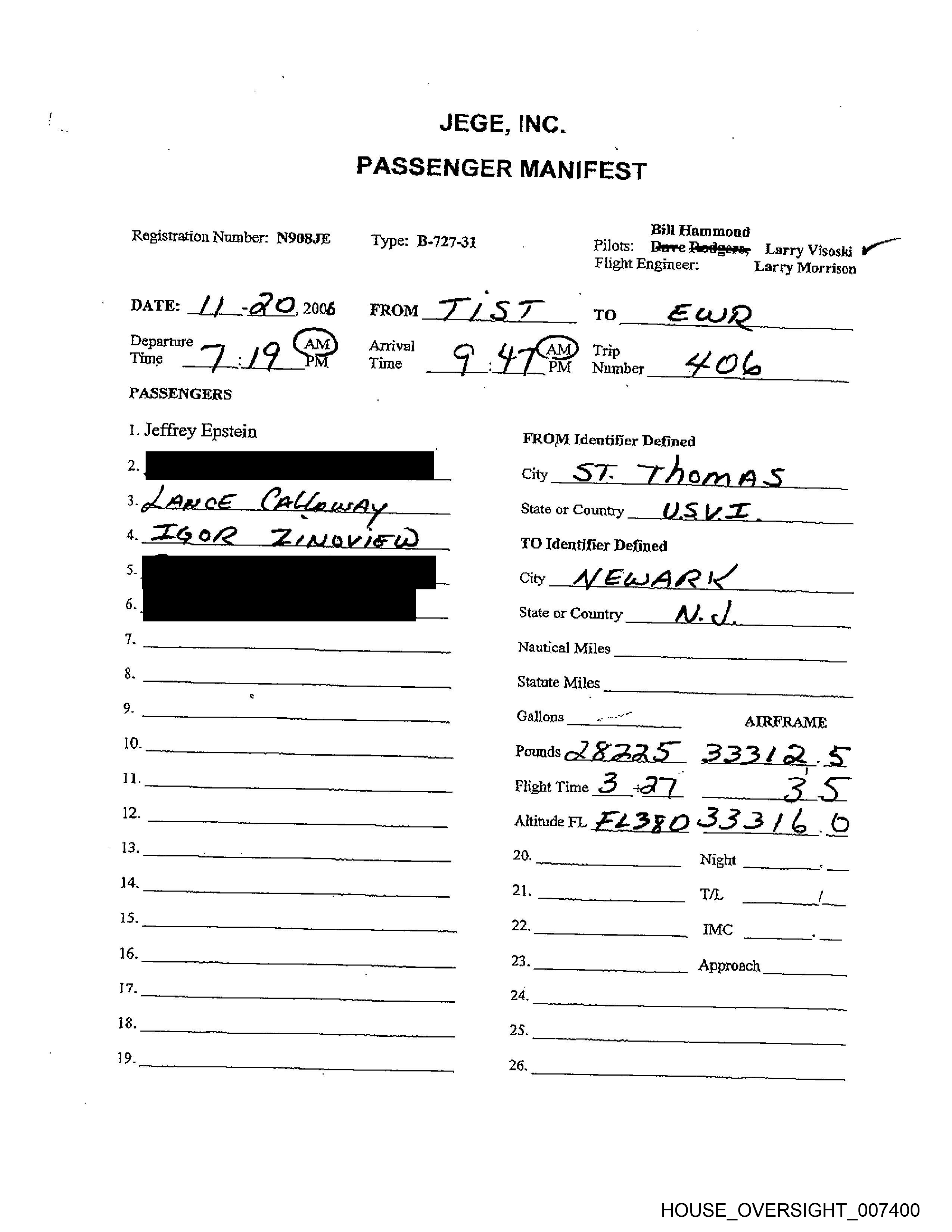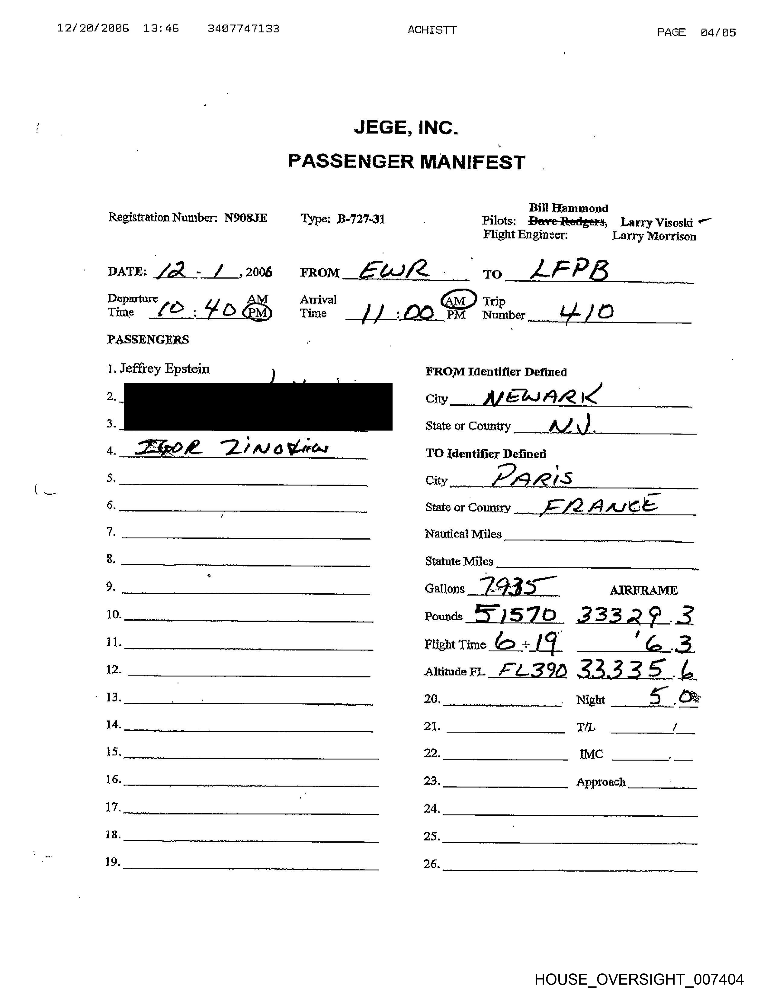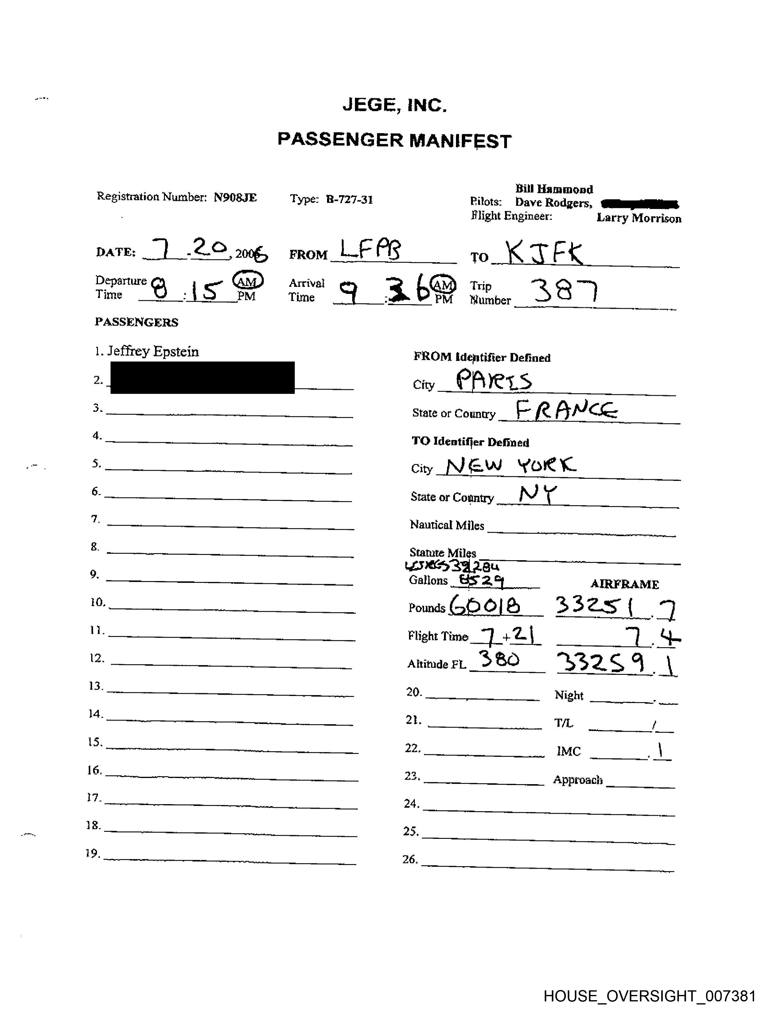 Registration Number: N9O8JE Type: B-727-314 Pilots: Beve-Redeers, Larry Visoski 7