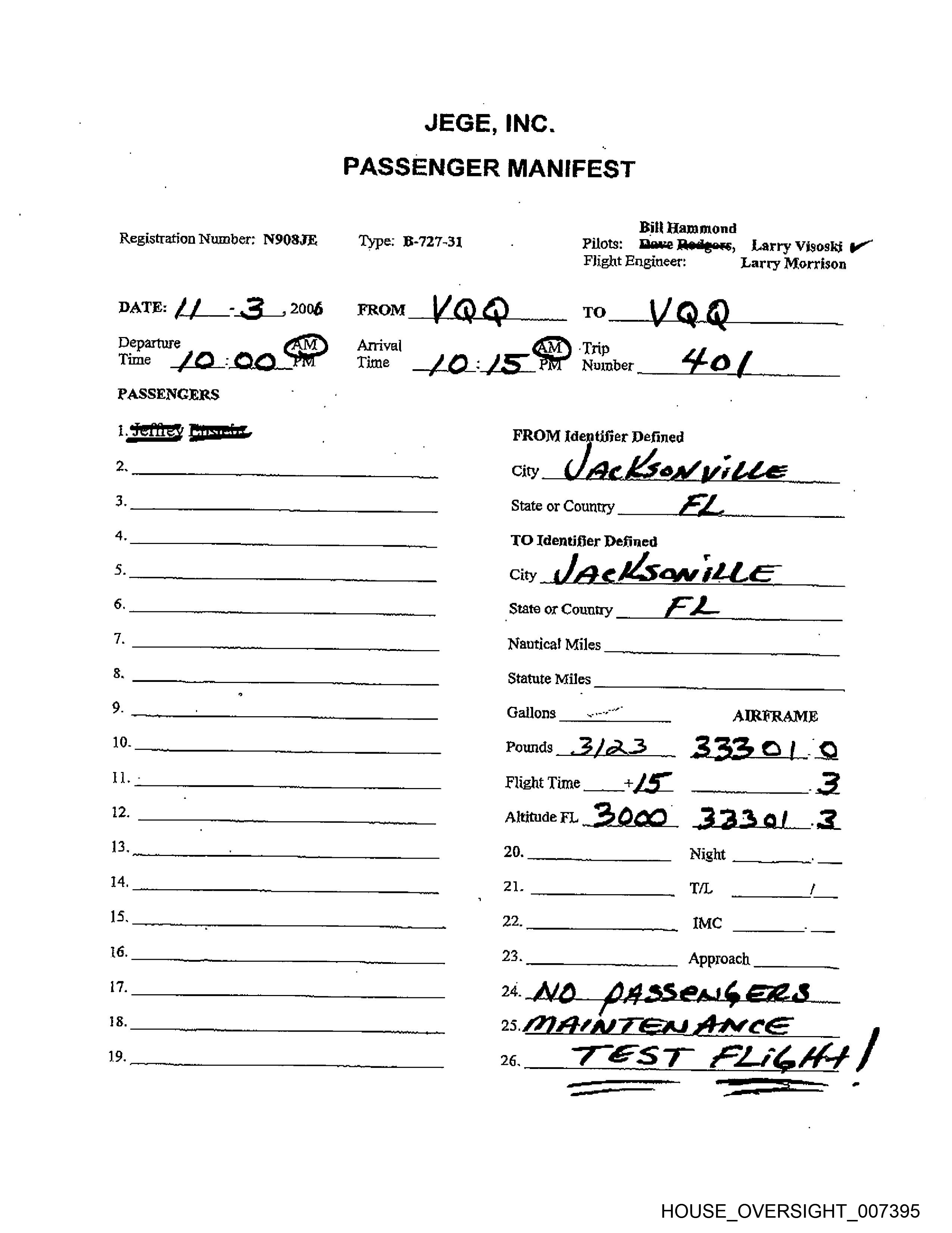 Registration Number: NOOSJE Type: B-727-31 Filots: Dave Rodgers, qa