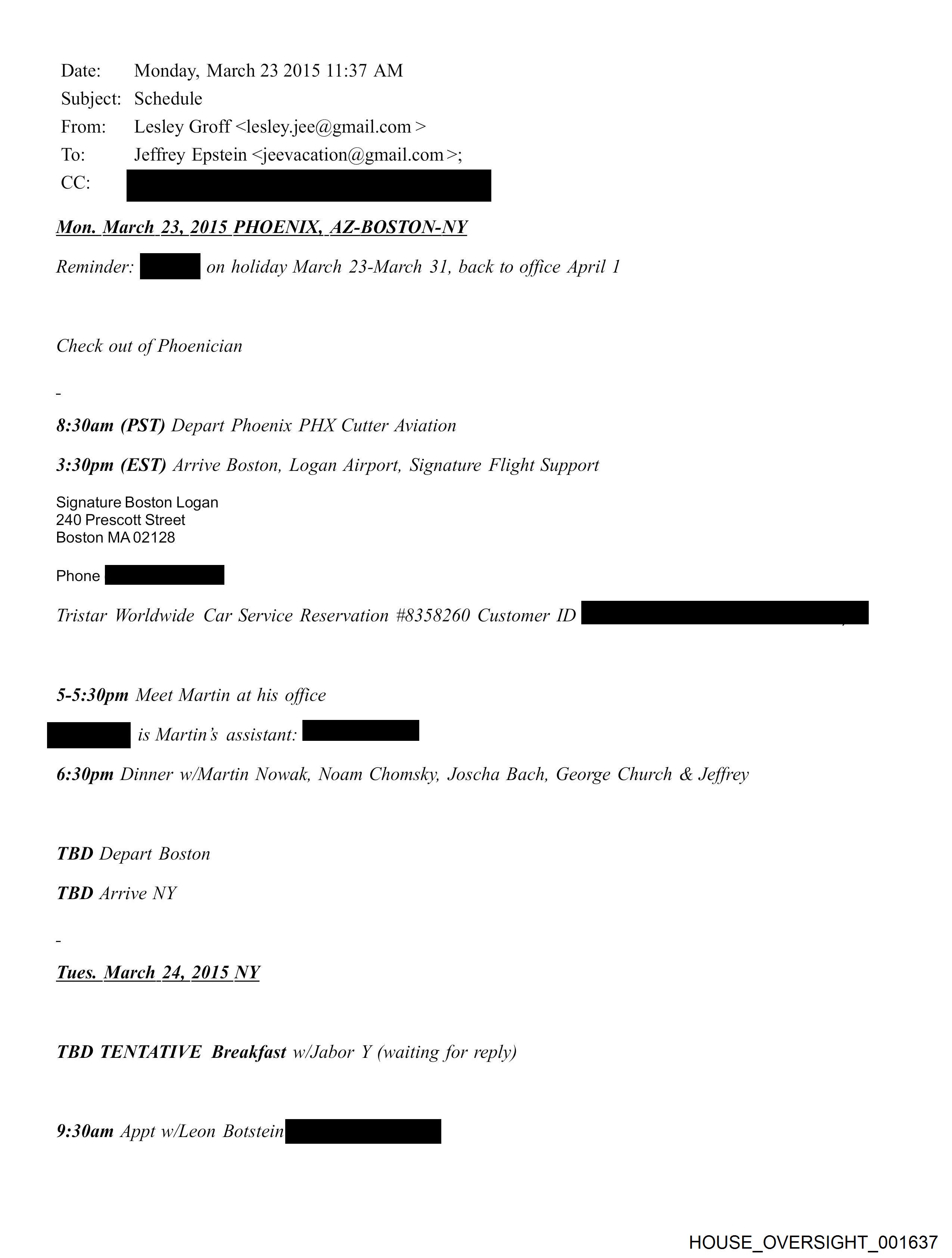 To: Jeffrey Epstein <jeevacation@gmail.com >;