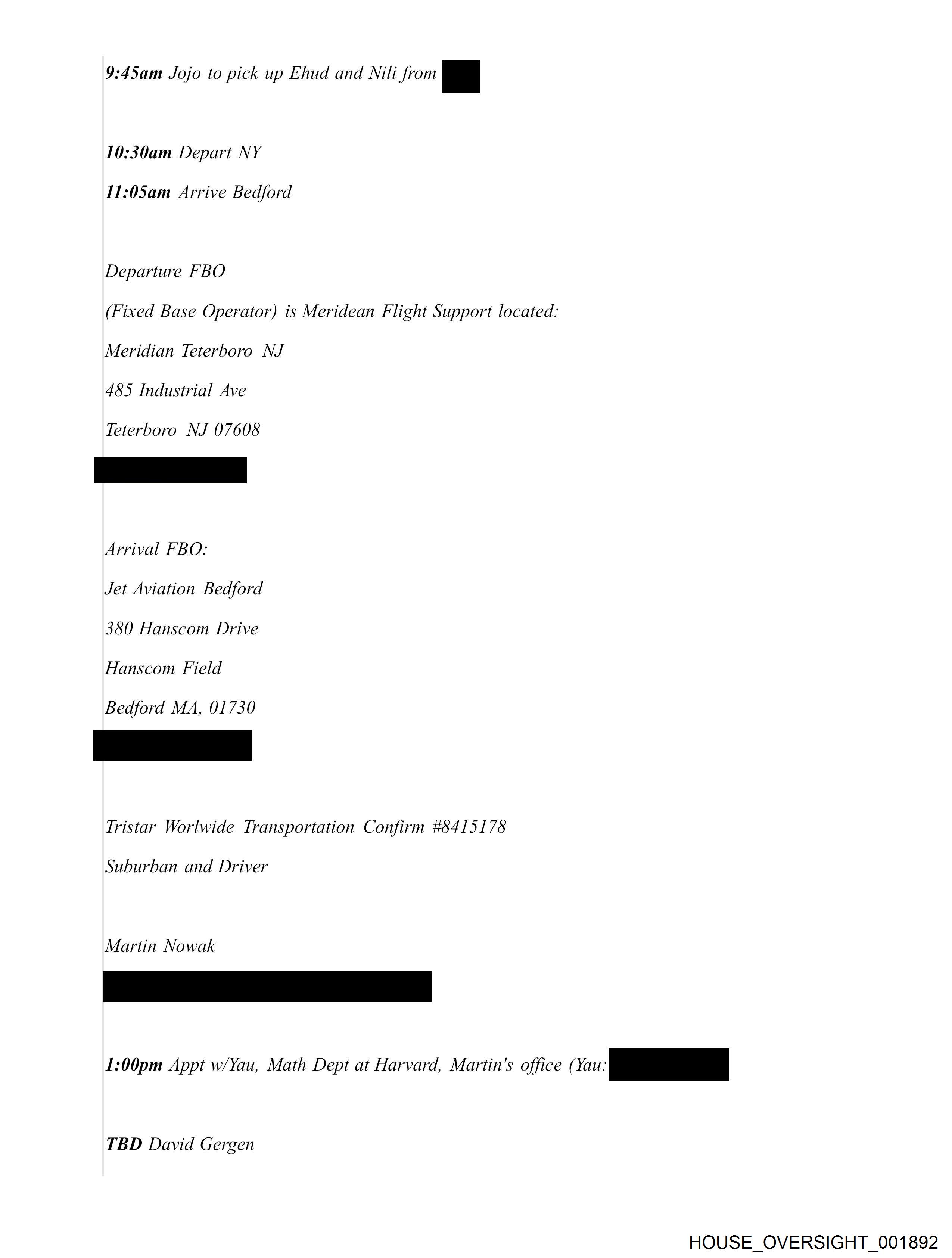 3:30pm (EST) Arrive Boston, Logan Airport, Signature Flight Support