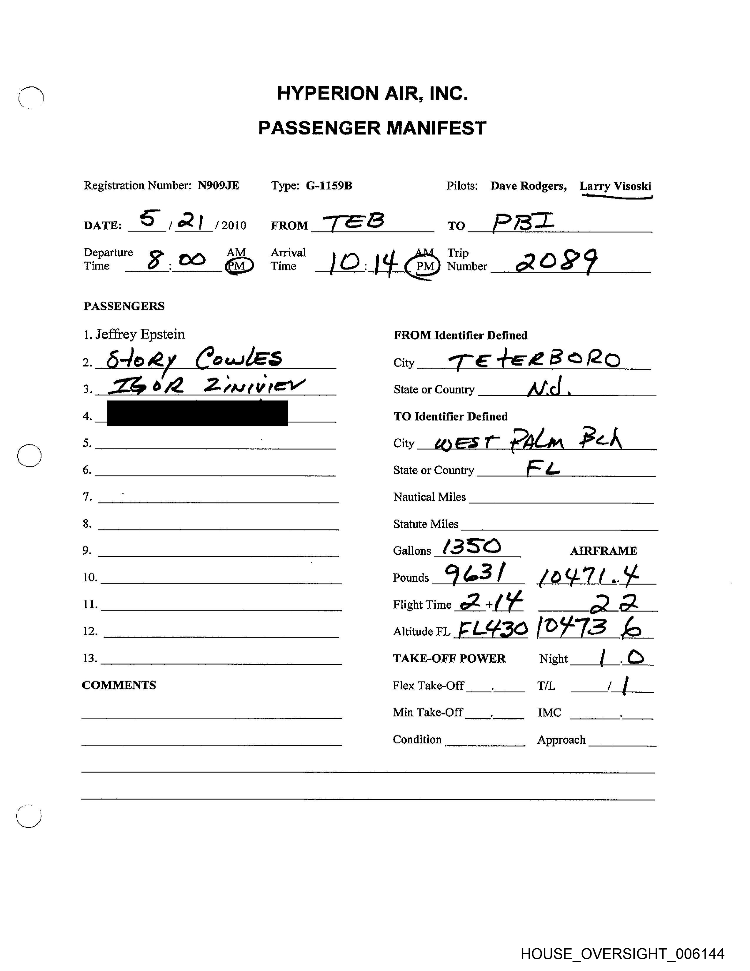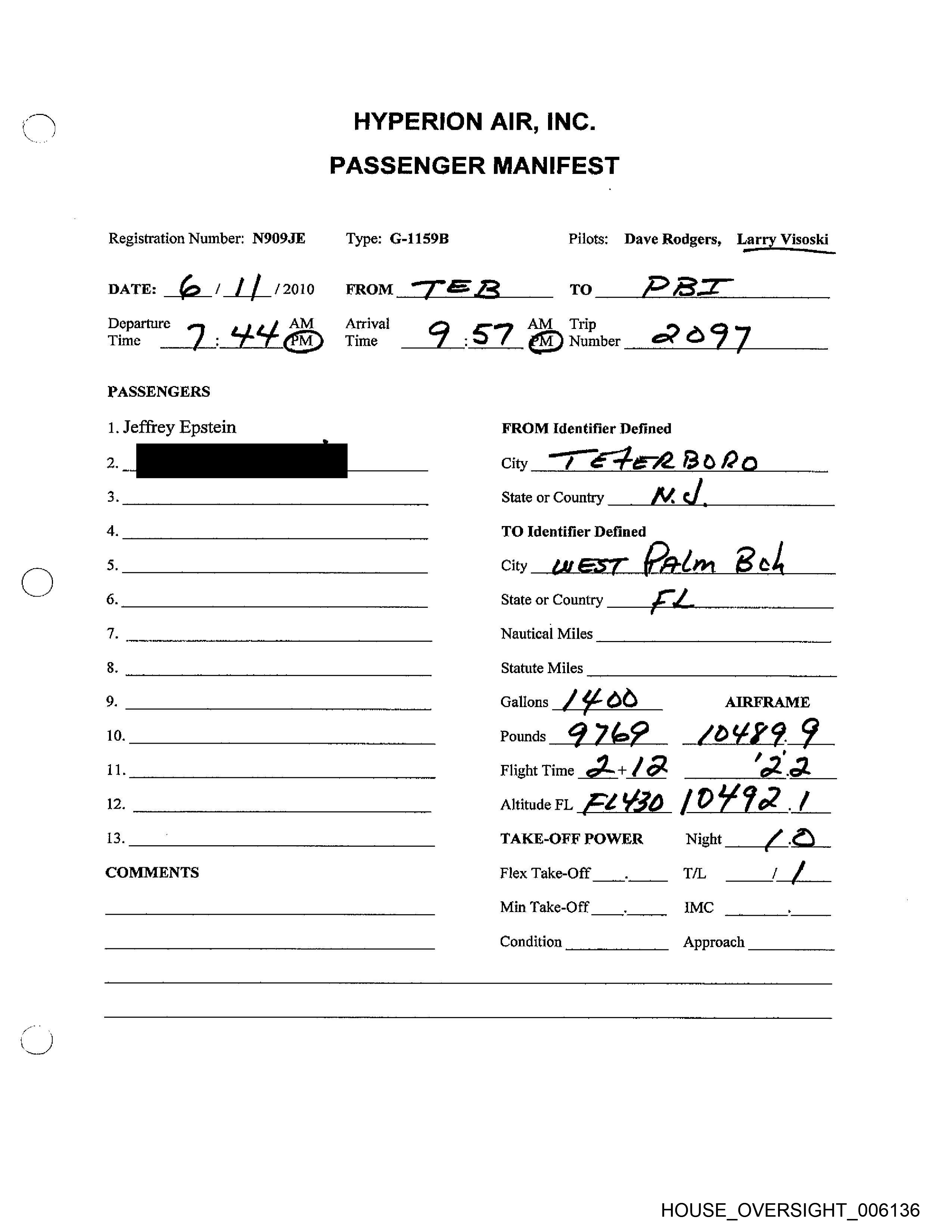 Type: G-1159B Pilots: Dave Rodgers, Larry Visoski