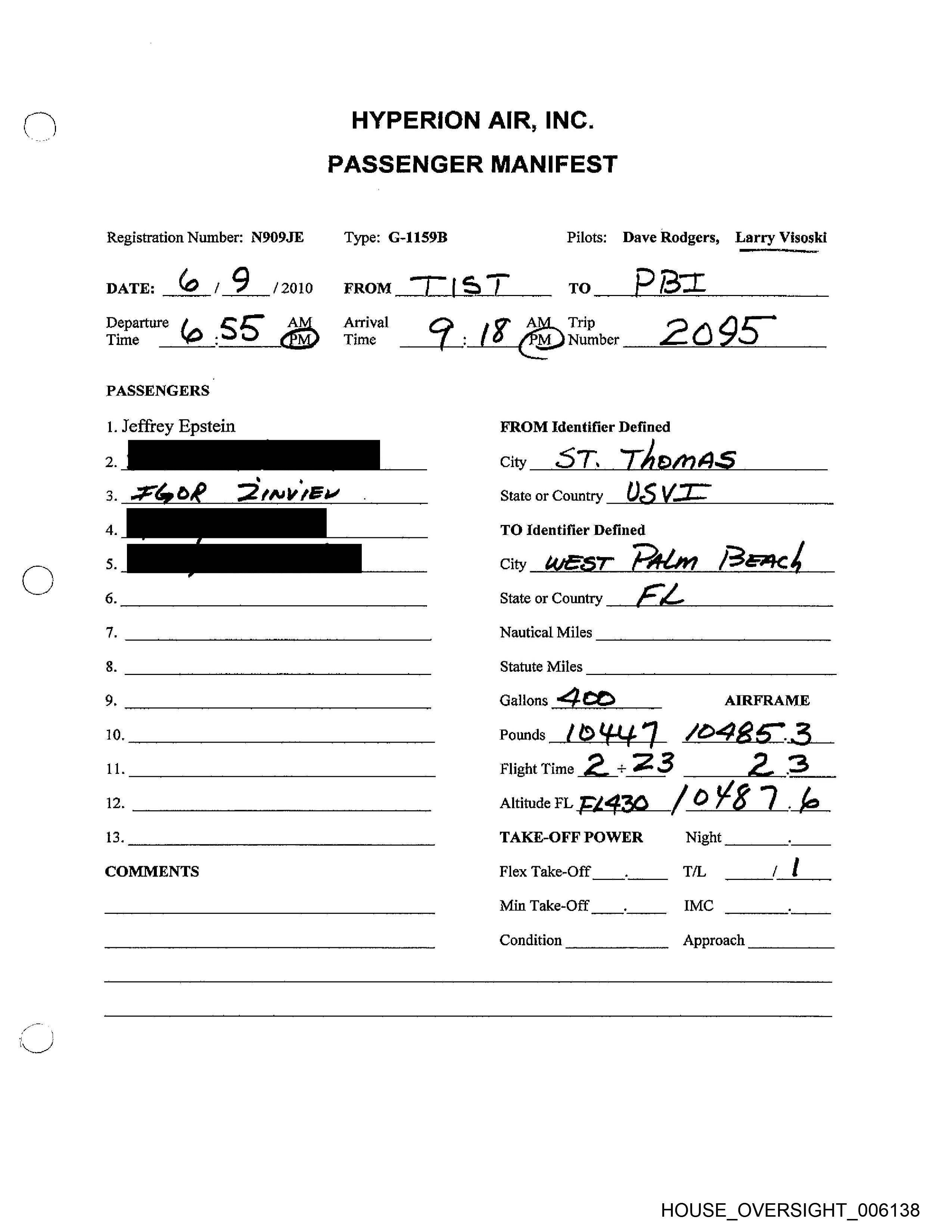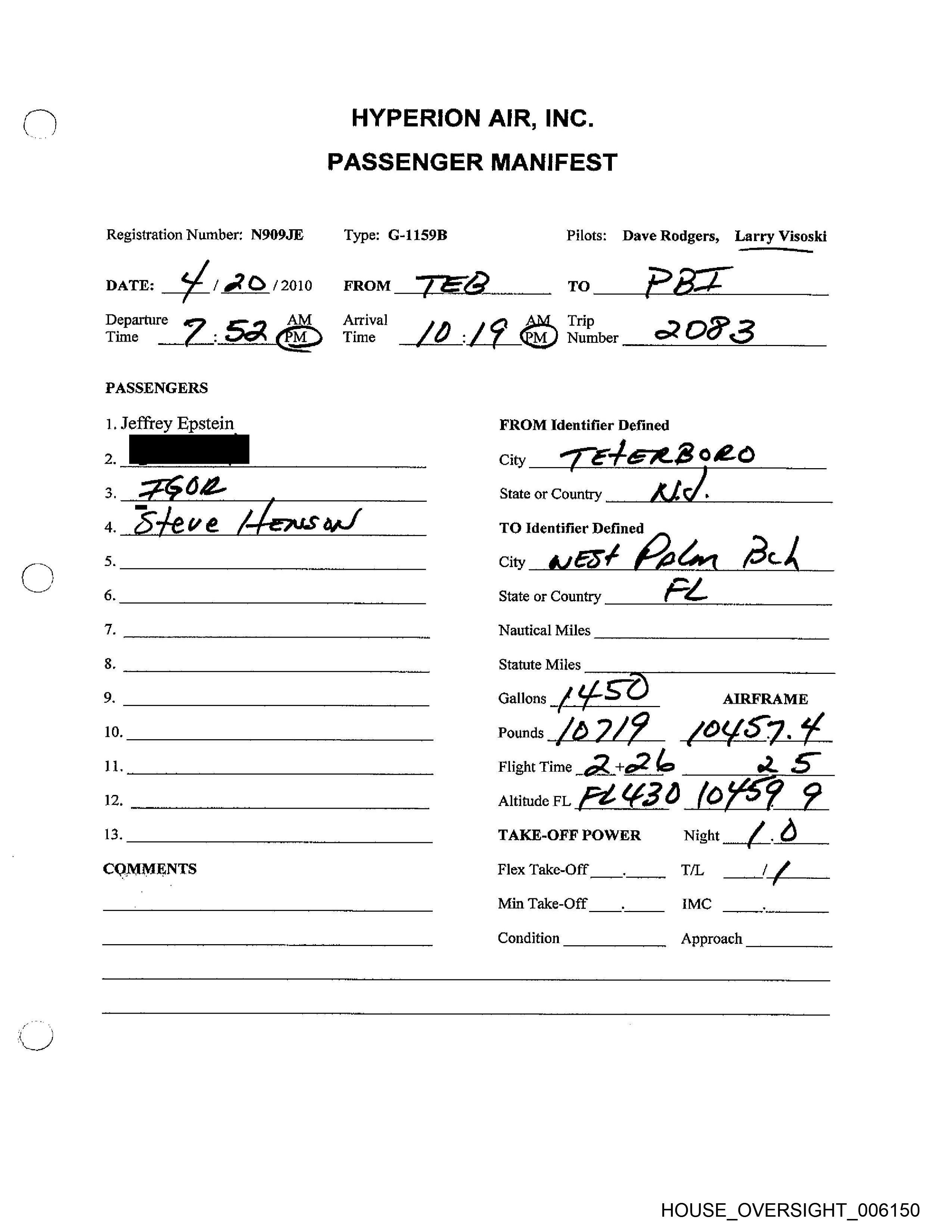 Registration Number: N909JE Type: G-1159B Pilots; Dave Rodgers, Larry Visoski