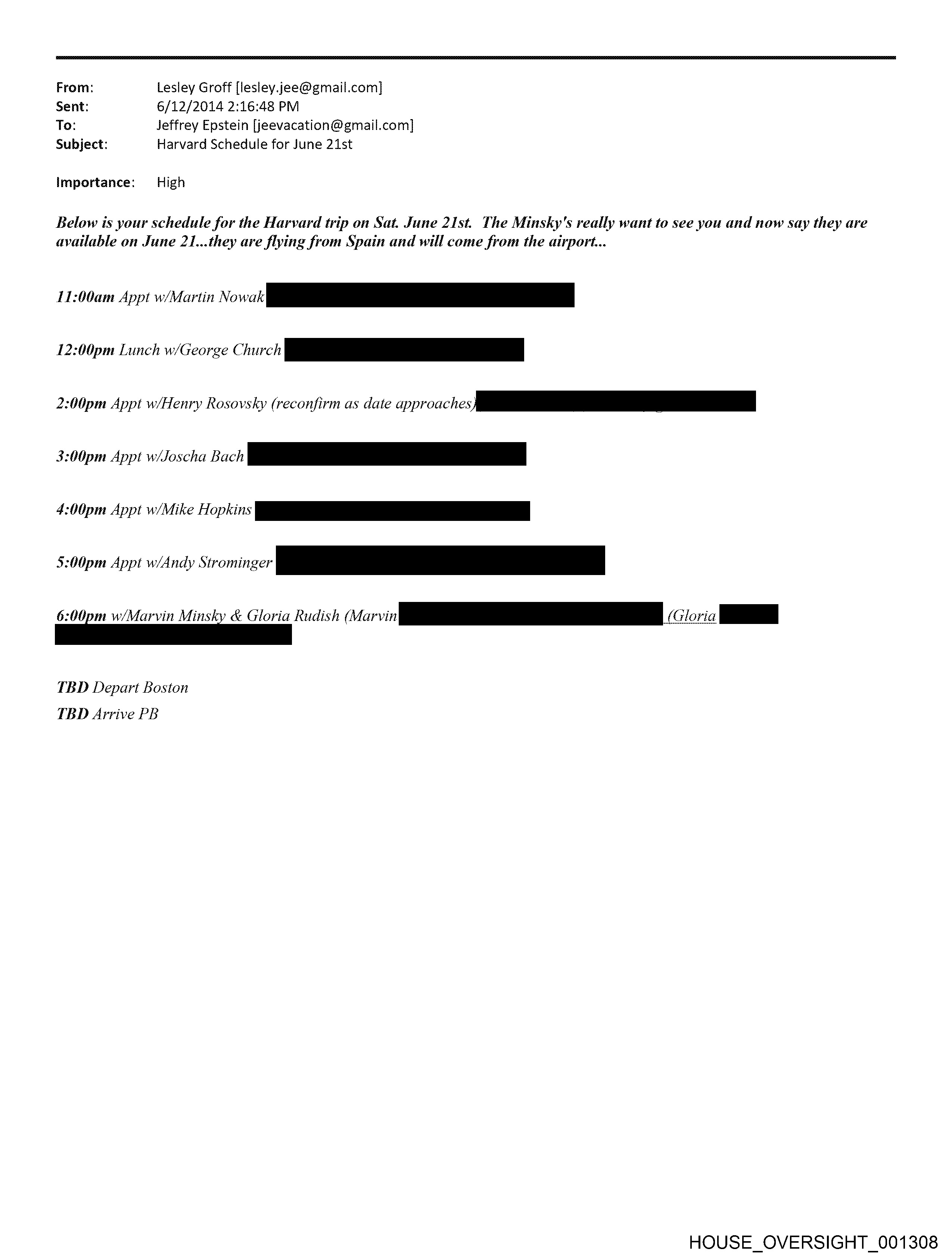 Below is your schedule for the Harvard trip on Sat. June 21st. The Minsky's really want to see you and now say they are