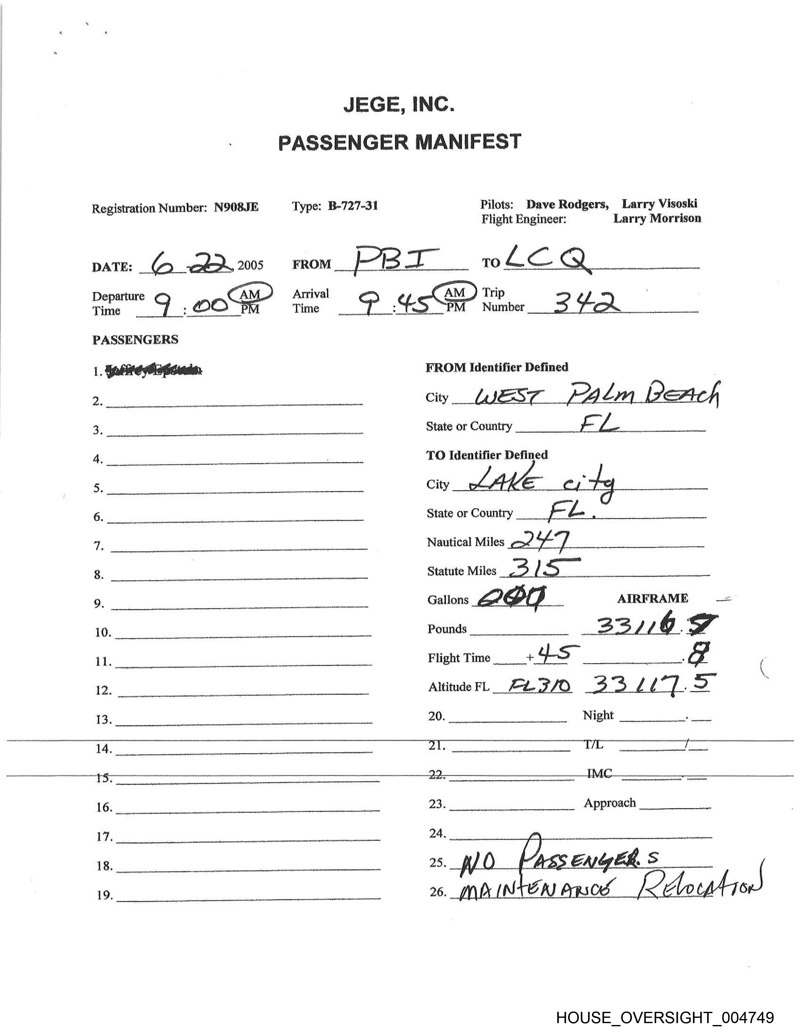 PASSENGER MANIFEST