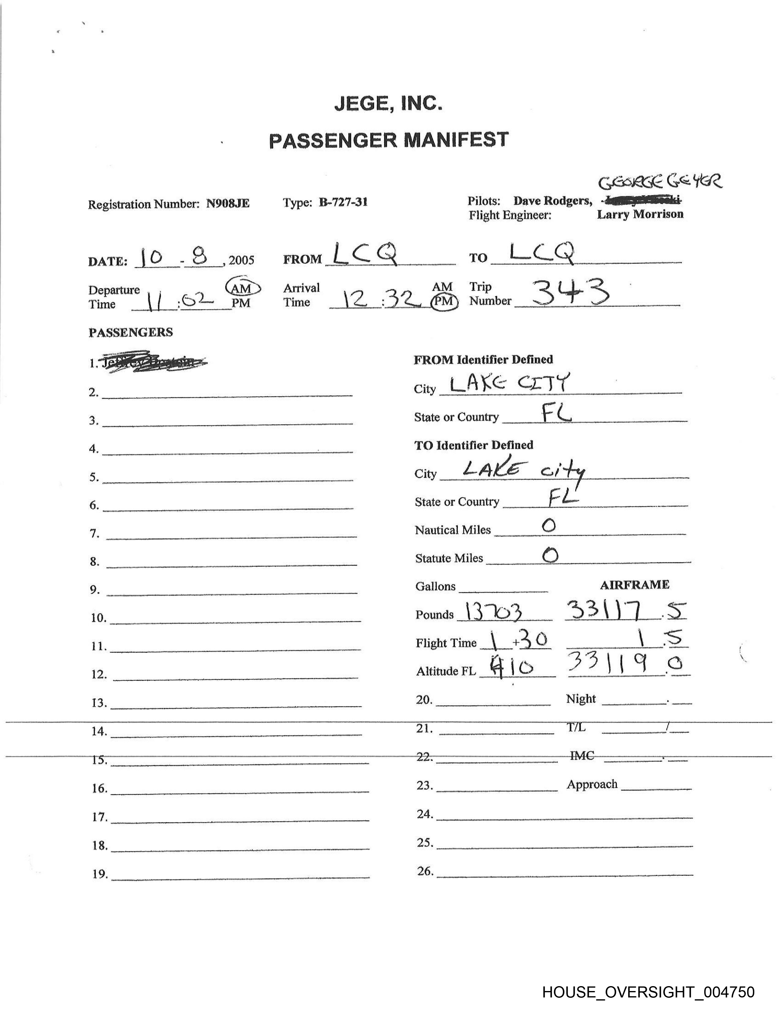 Type: B-727-31 Pilots: Dave Rodgers, Wi