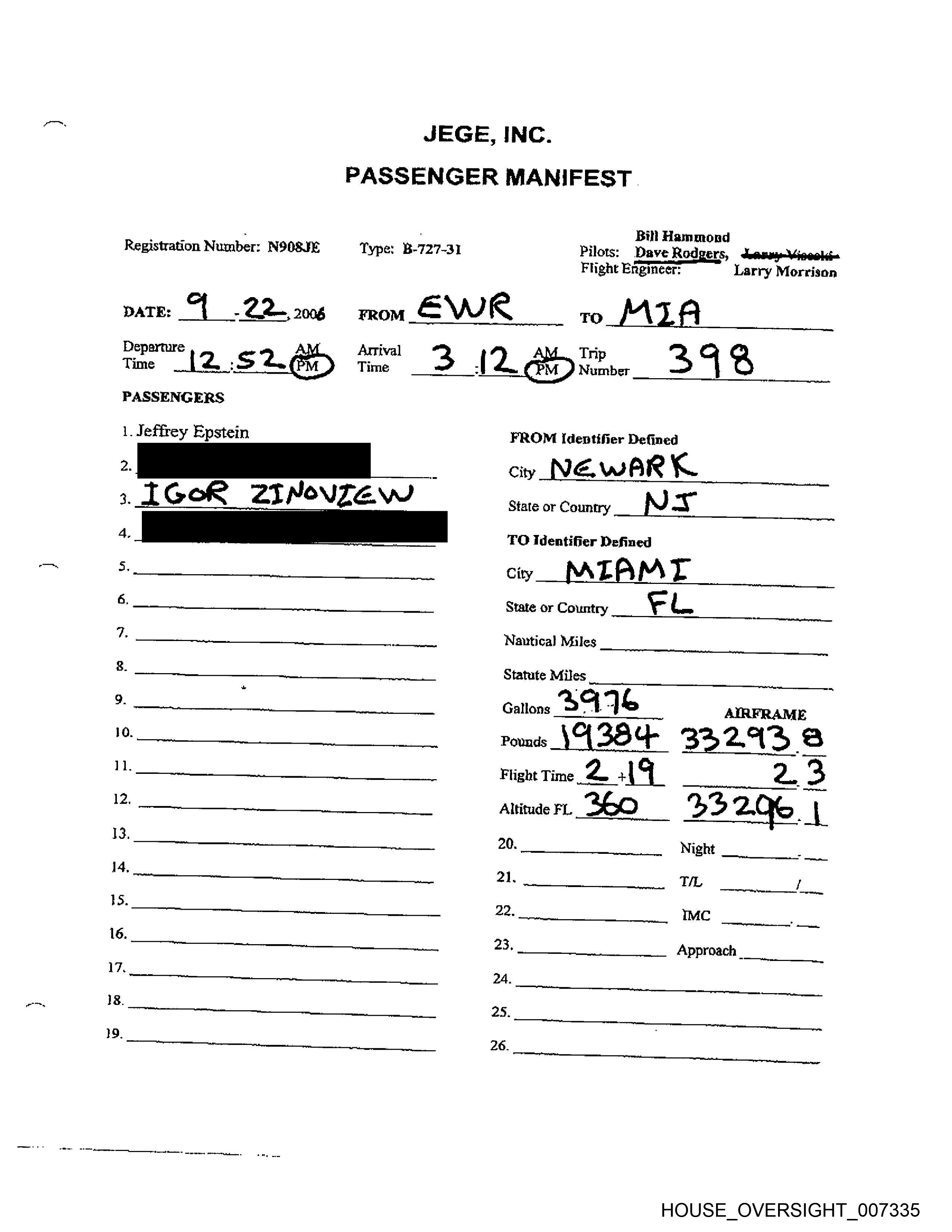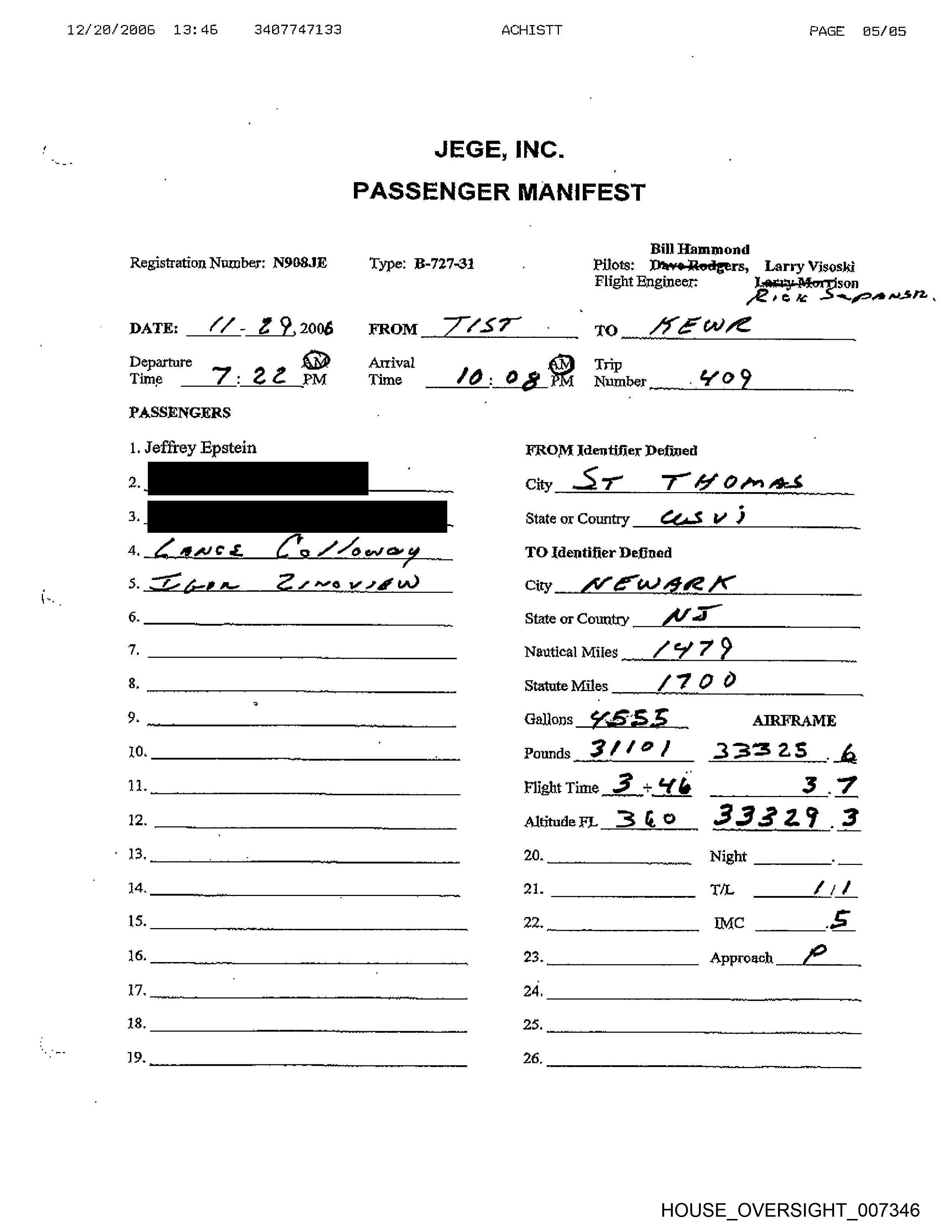 Registration Number: N908.JE Type: B-727-3} Pilots: DayveRotgers, Larry Visoski