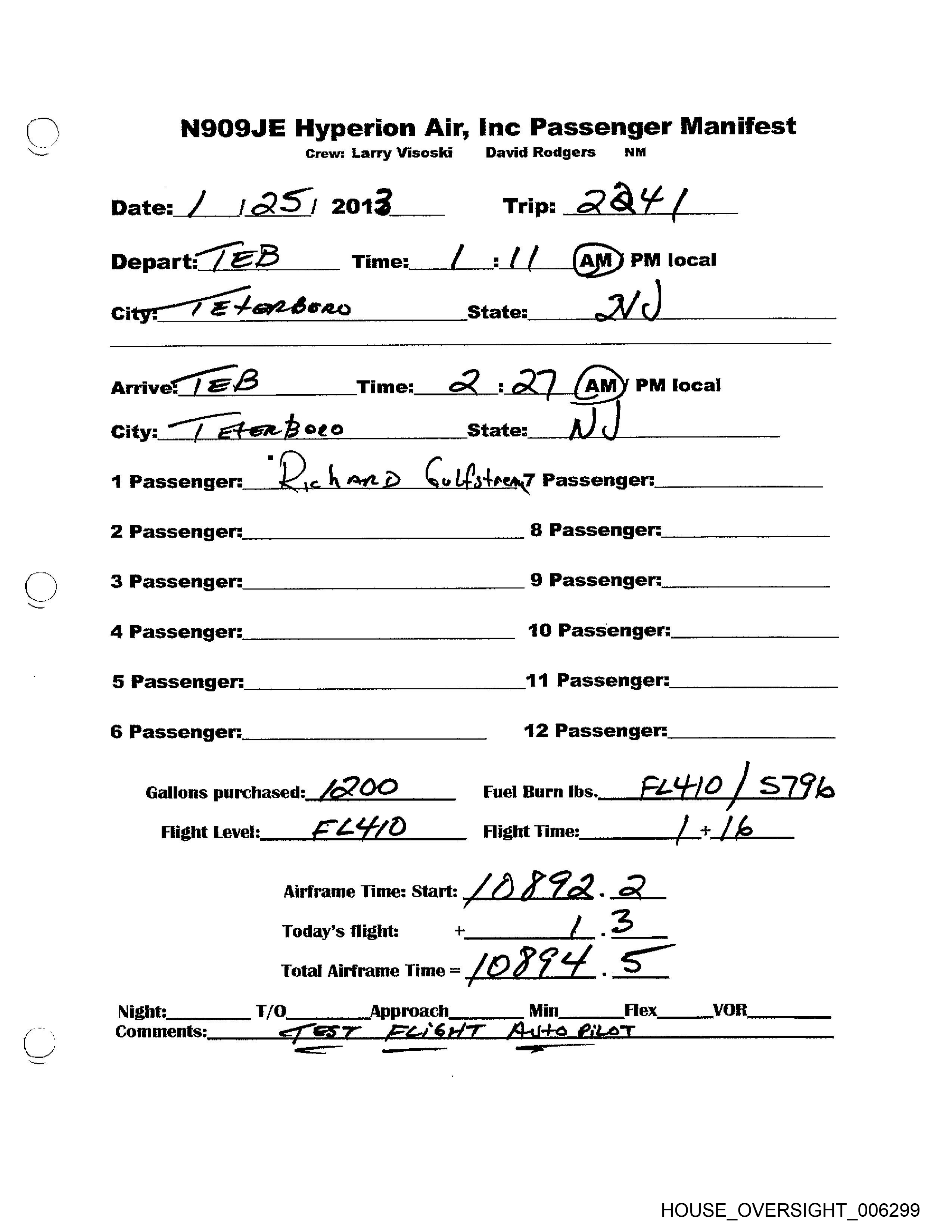 NS909JE Hyperion Air, Inc Passenger Manifest