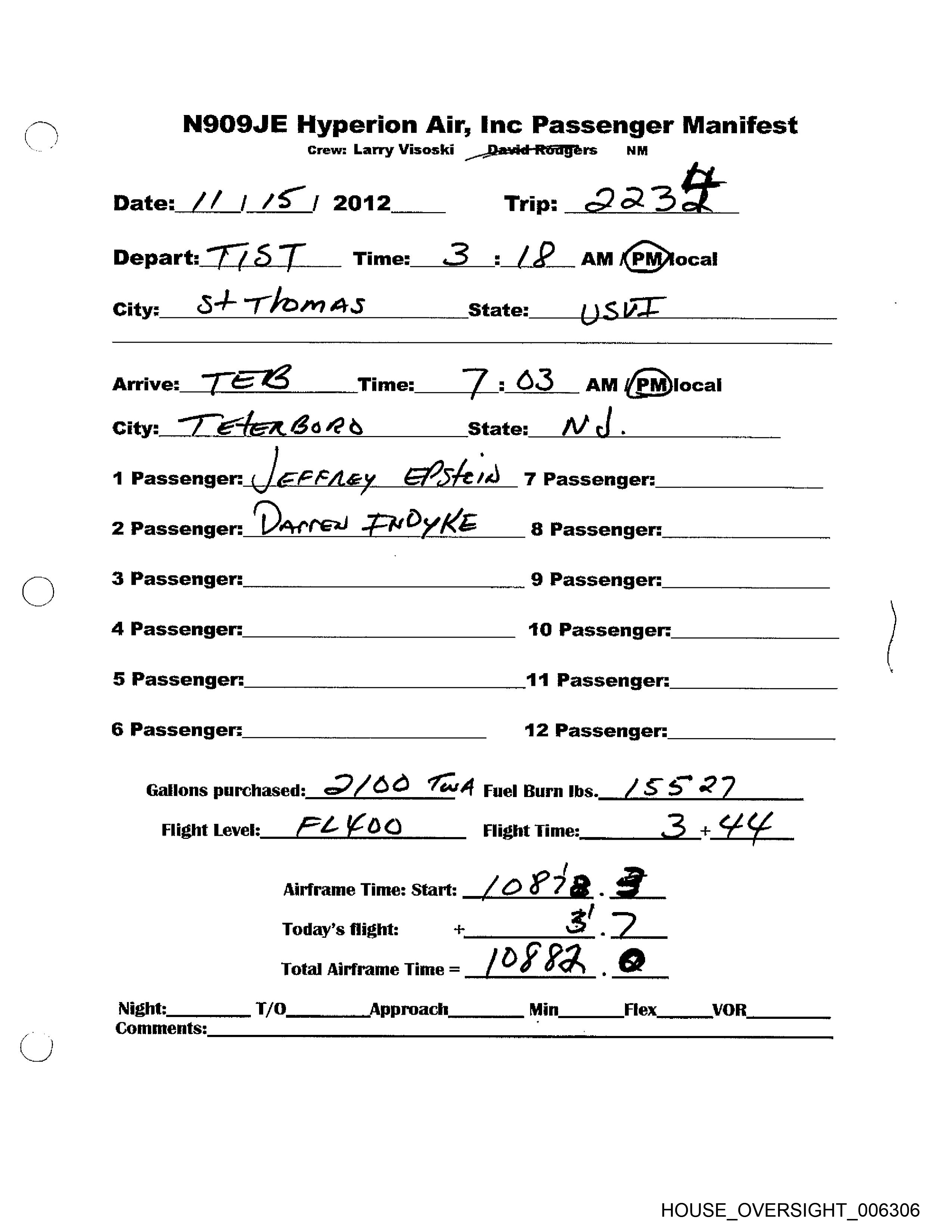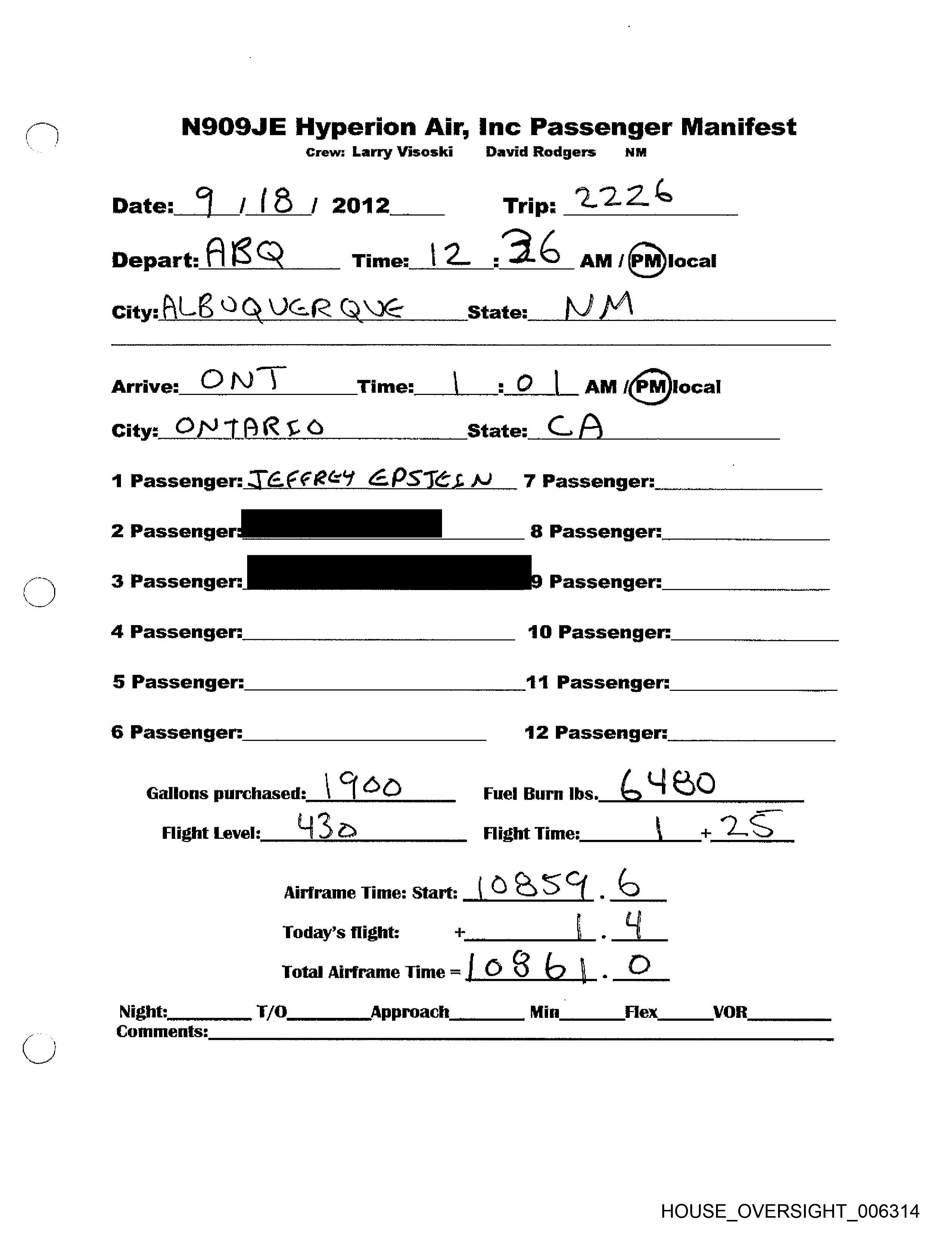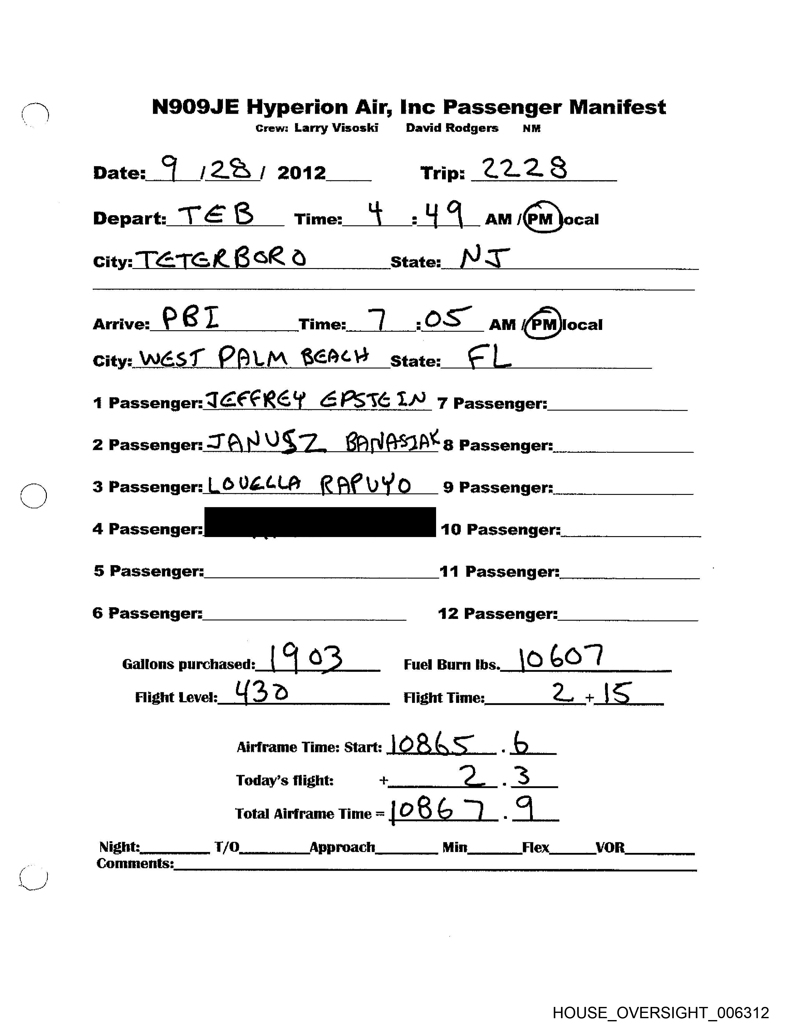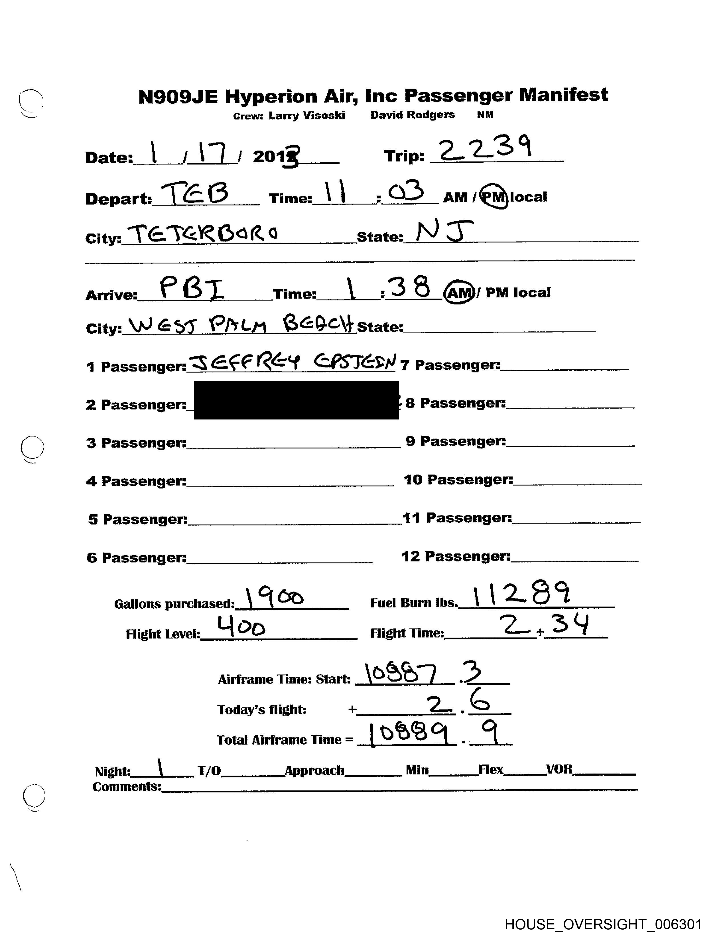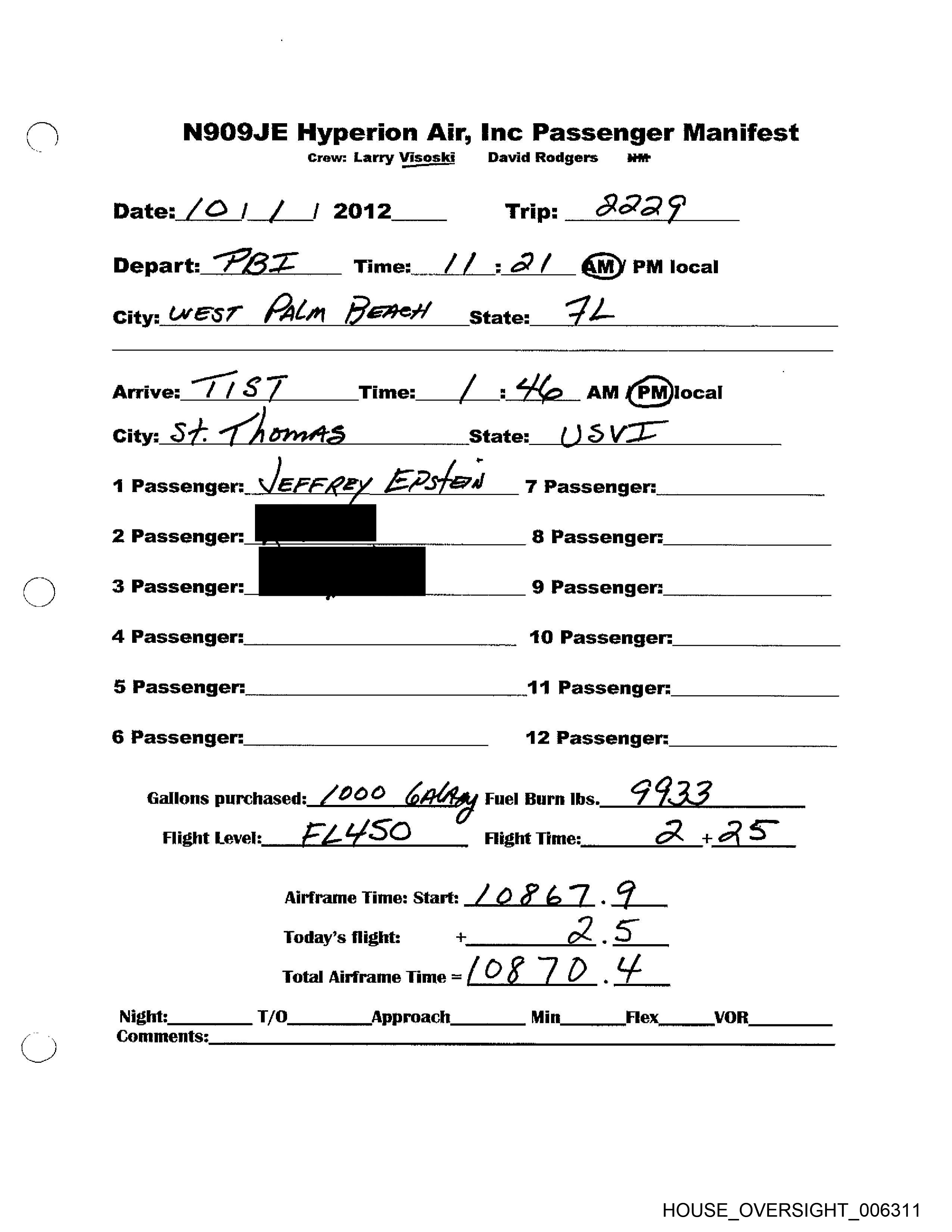 = NSOSJE Hyperion Air, Inc Passenger Manifest