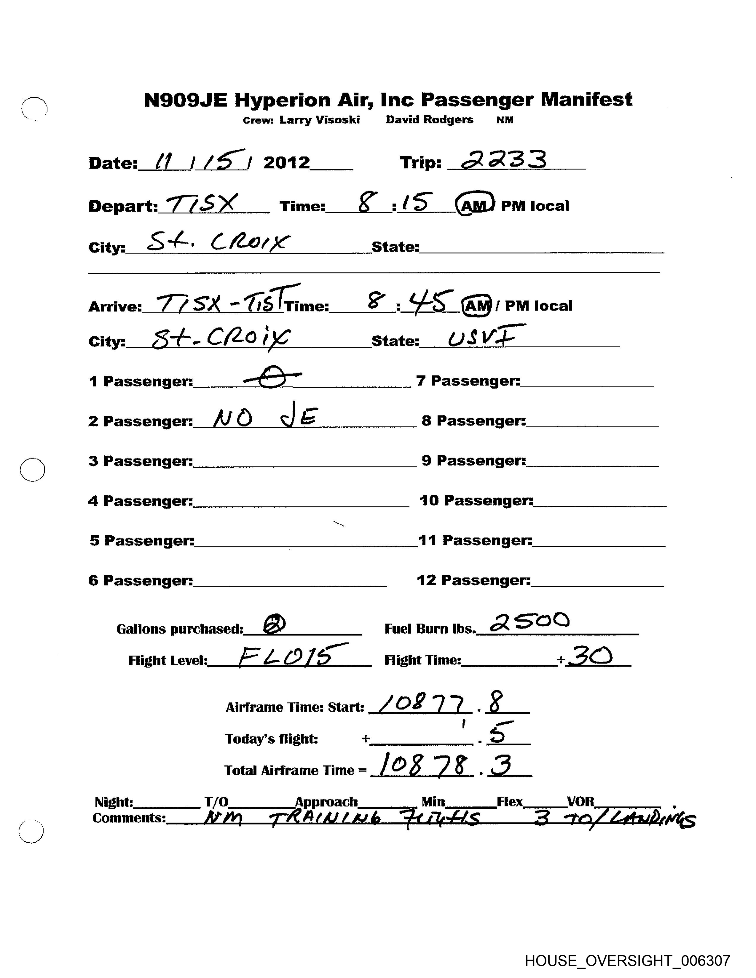 a NSOSJE Hyperion Air, inc Passenger Manifest