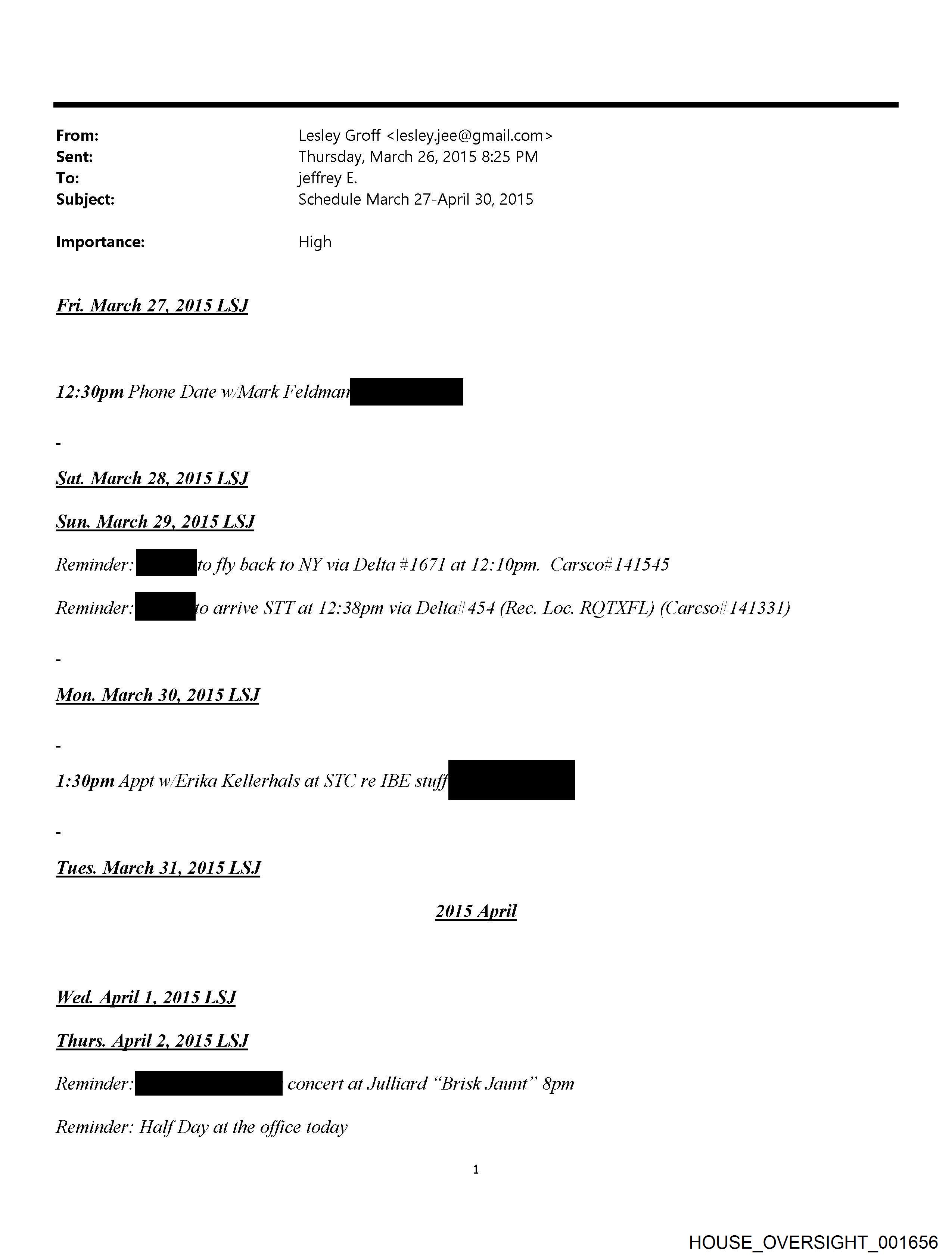 Subject: Schedule April 5-30, 2015