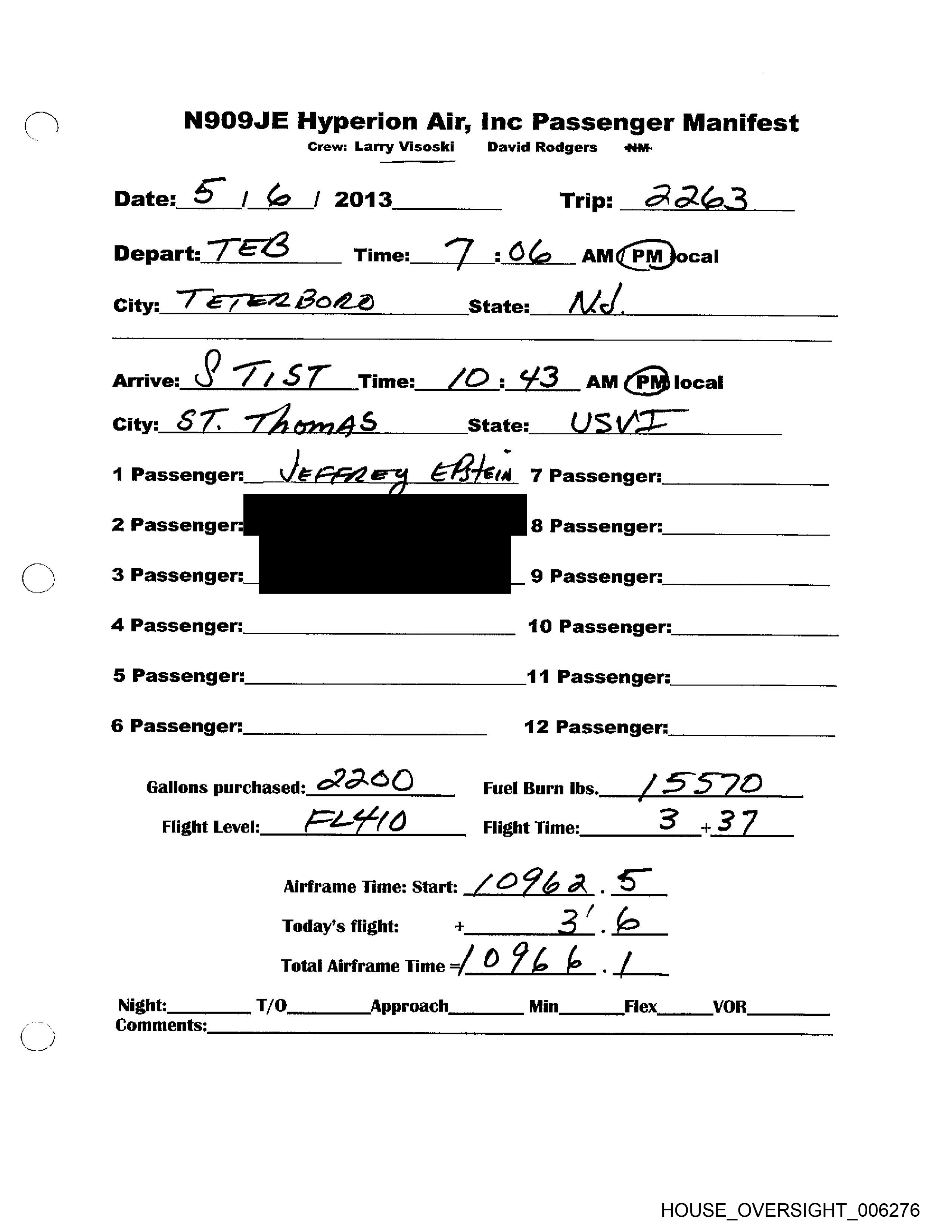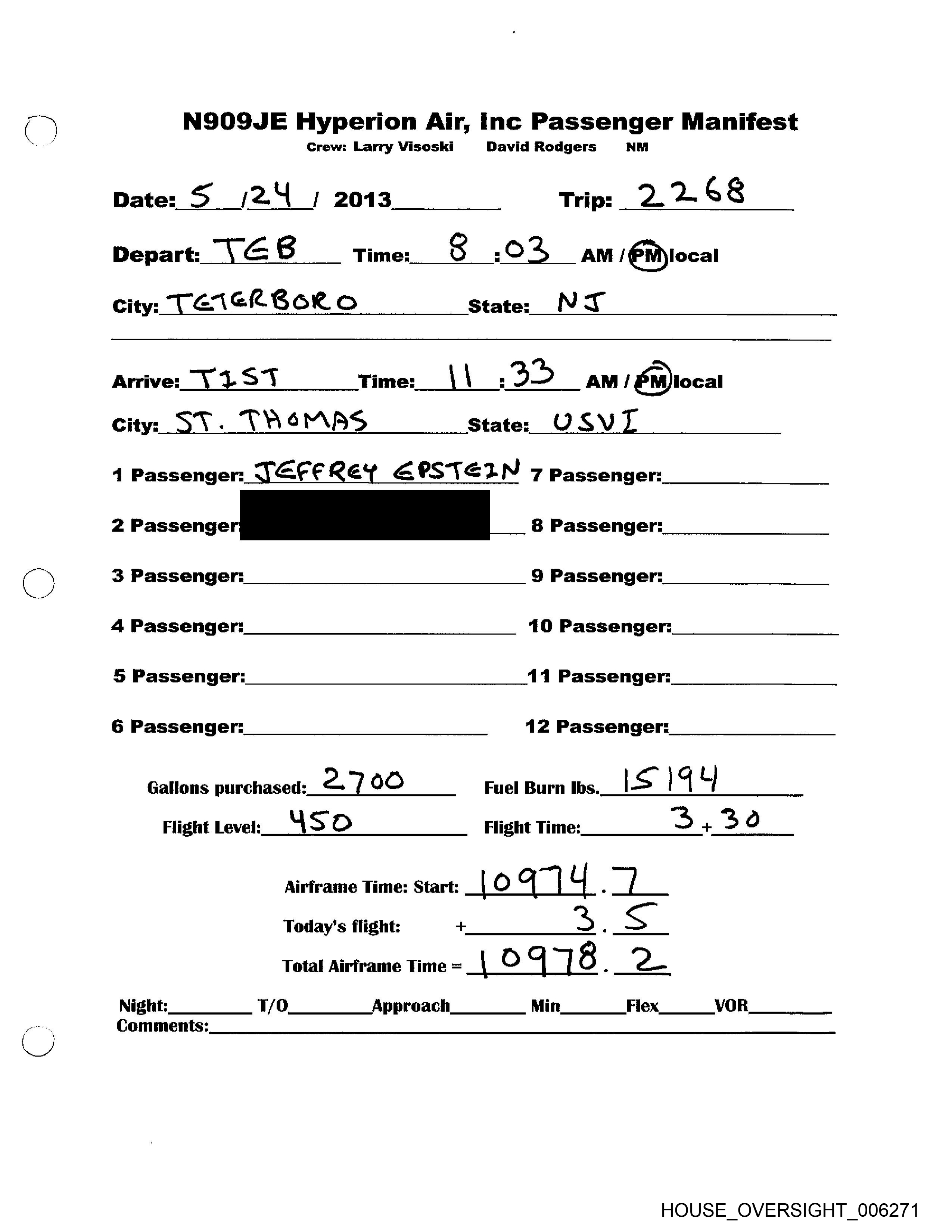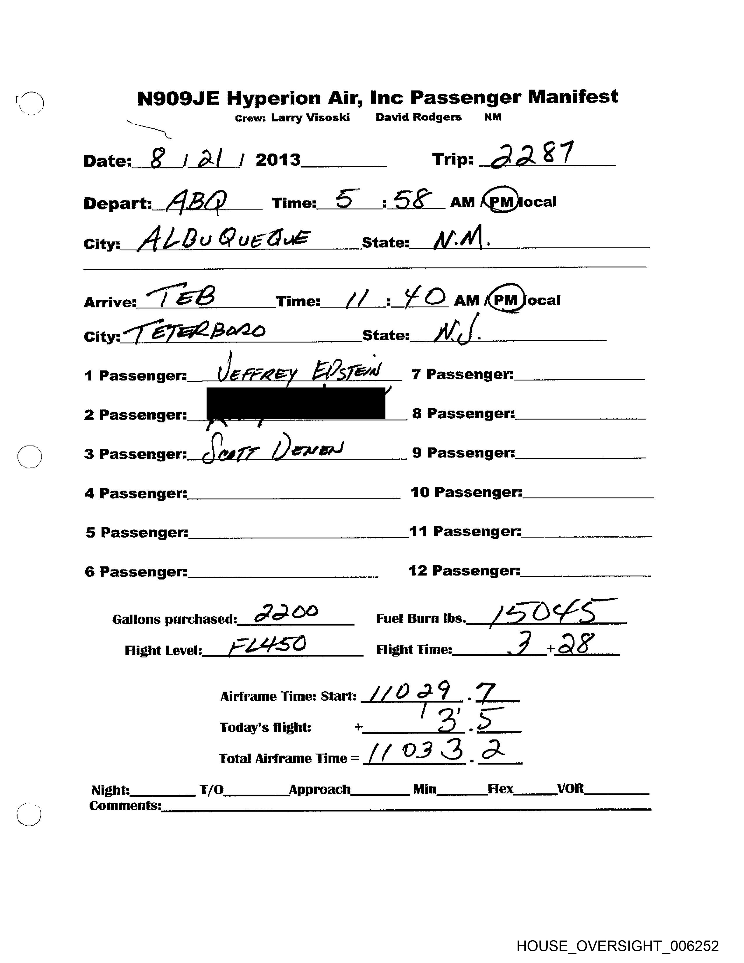 - NSOSJE Hyperion Air, Inc Passenger Manifest
