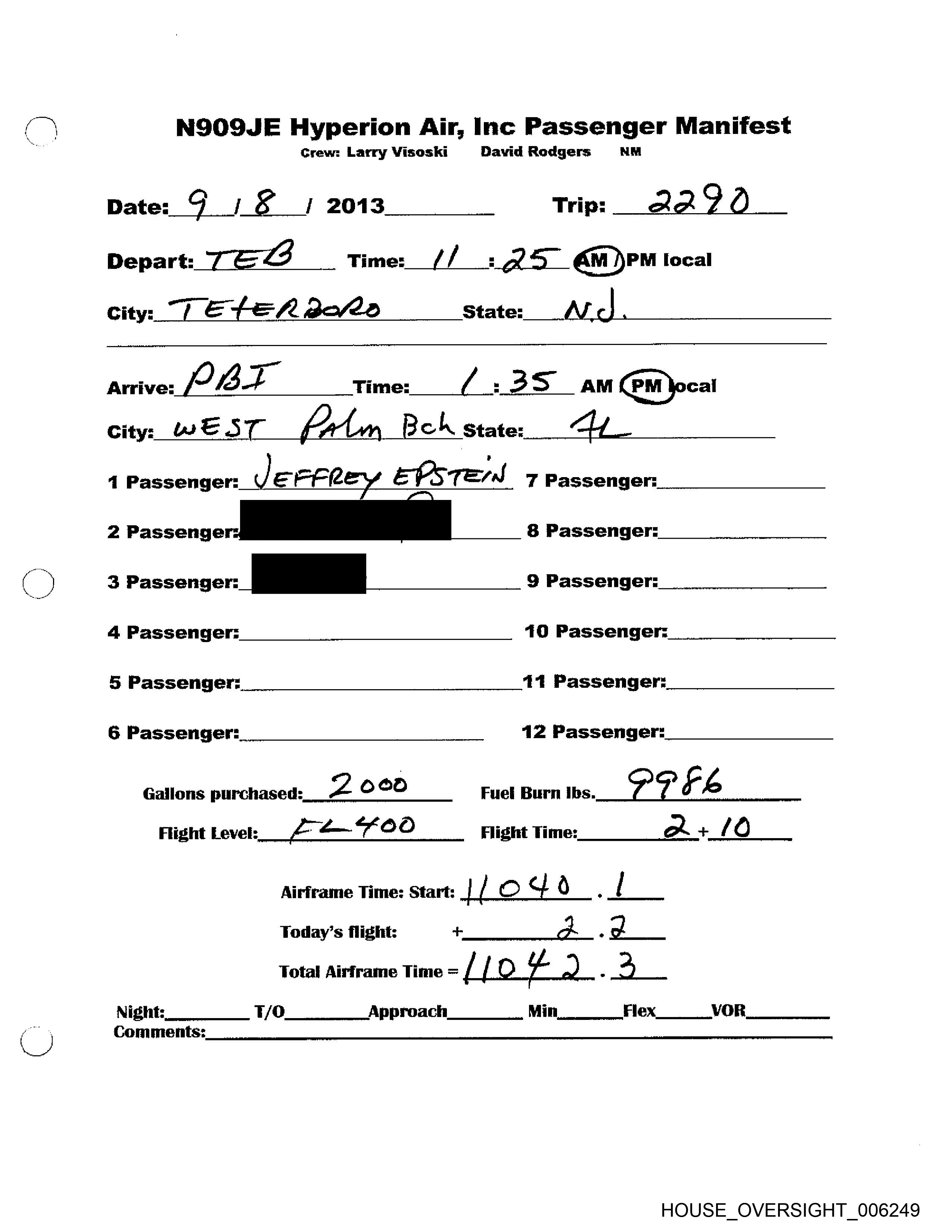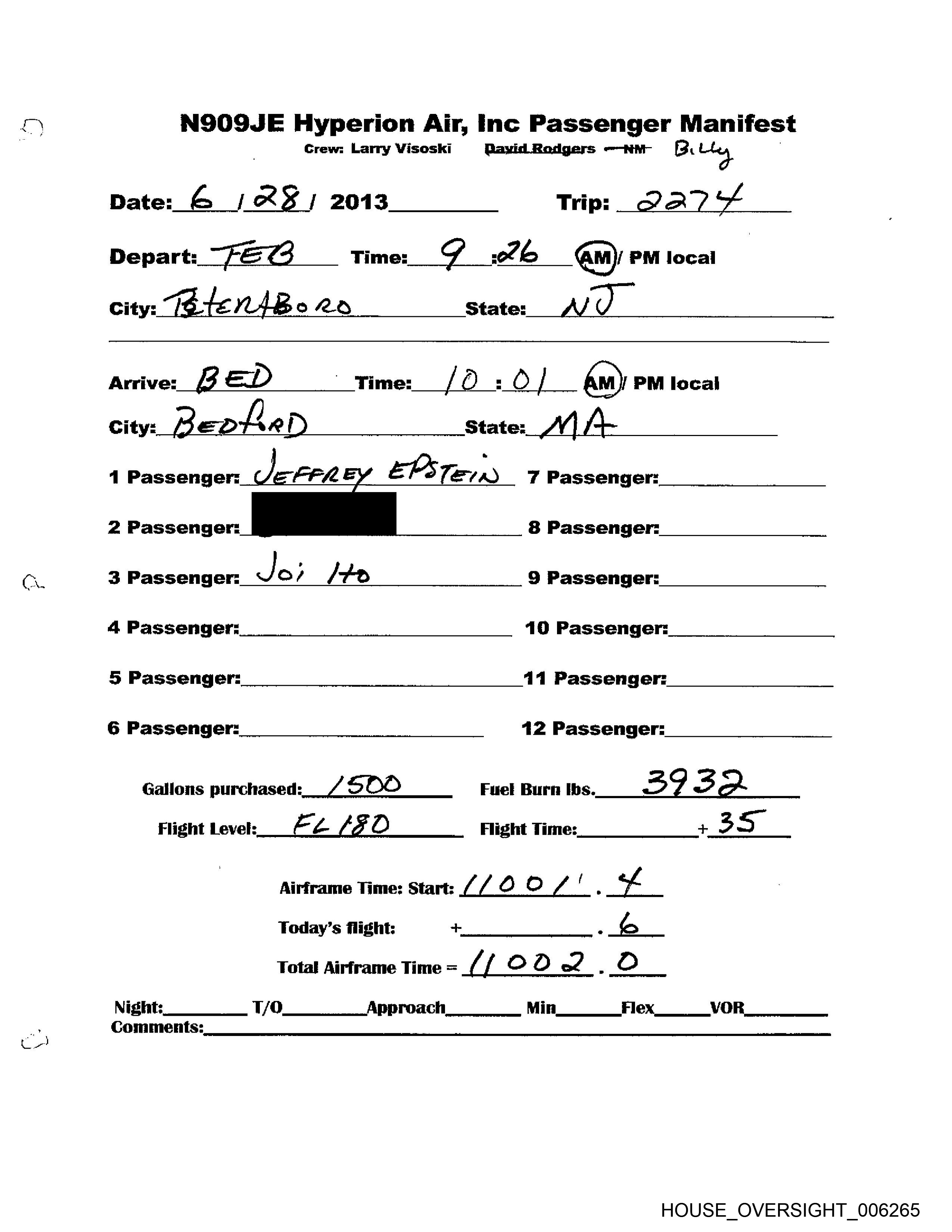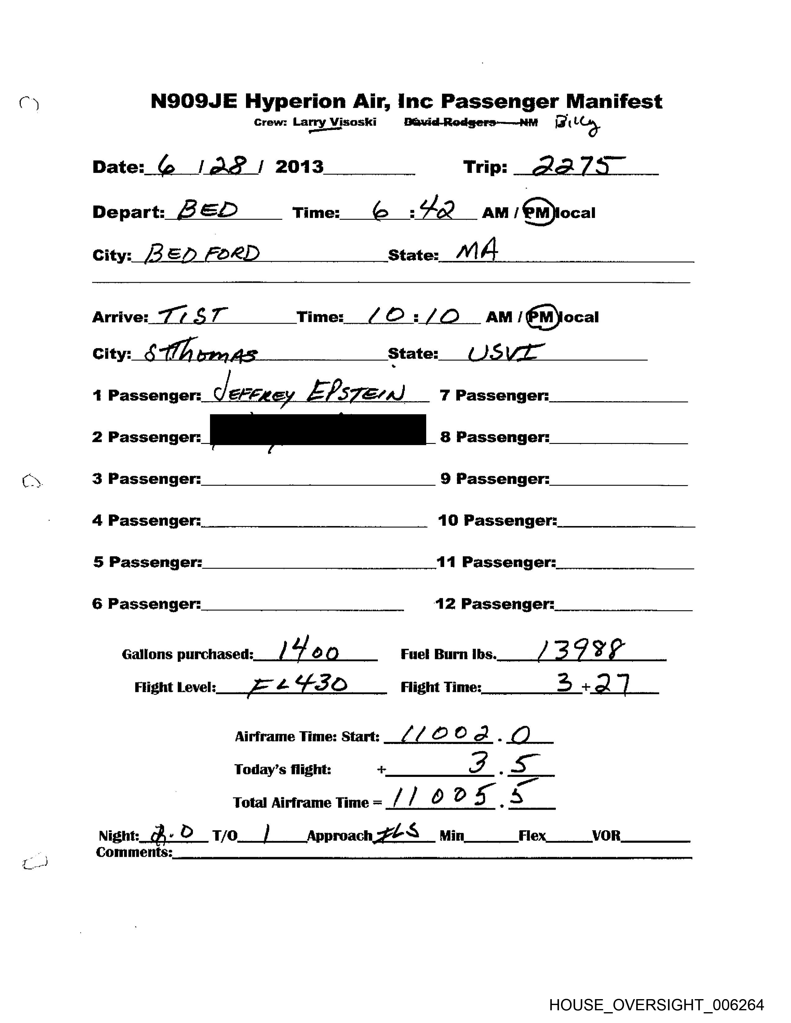 - NSOSJE Hyperion Air, Inc Passenger Manifest