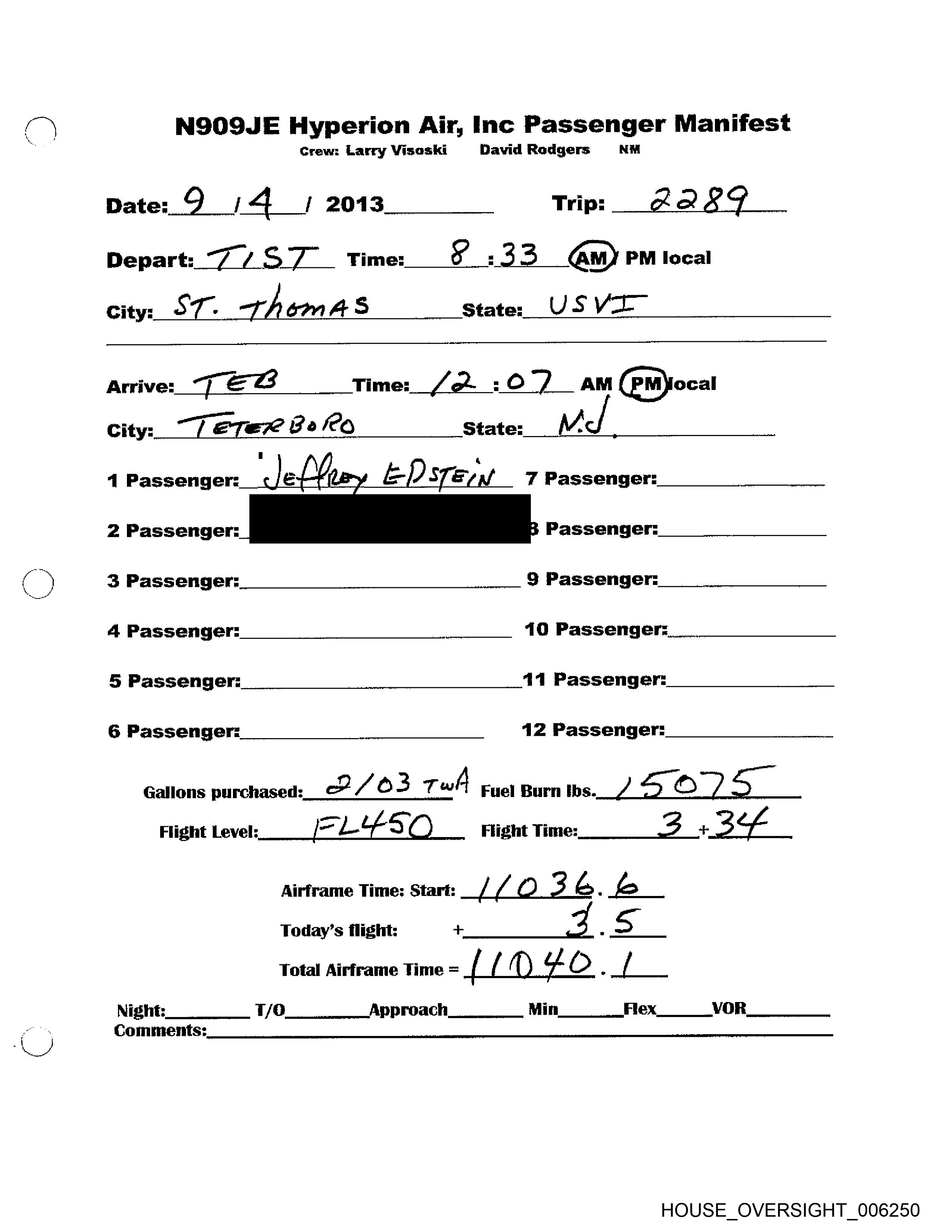 NSOSJE Hyperion Air, Inc Passenger Manifest