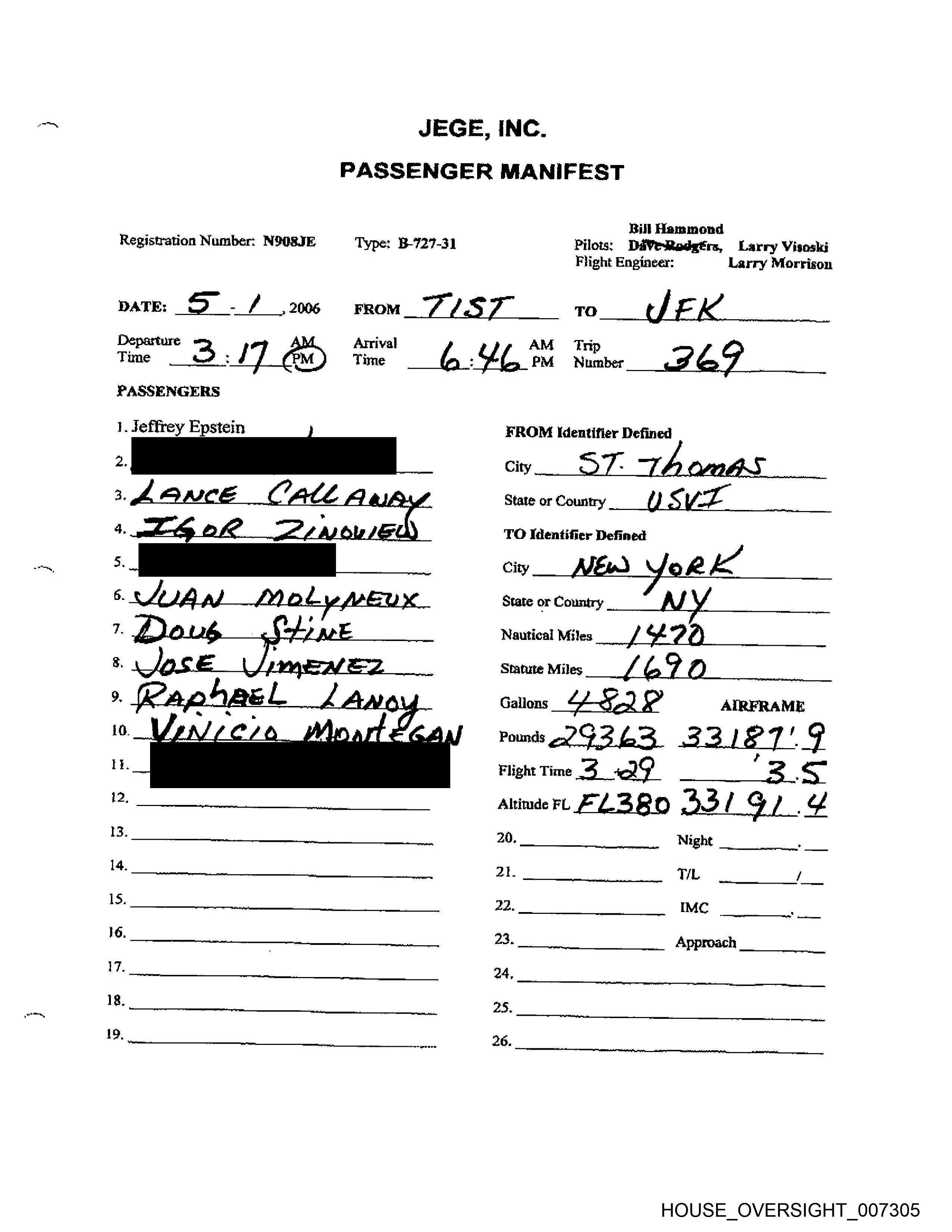 PASSENGER MANIFEST