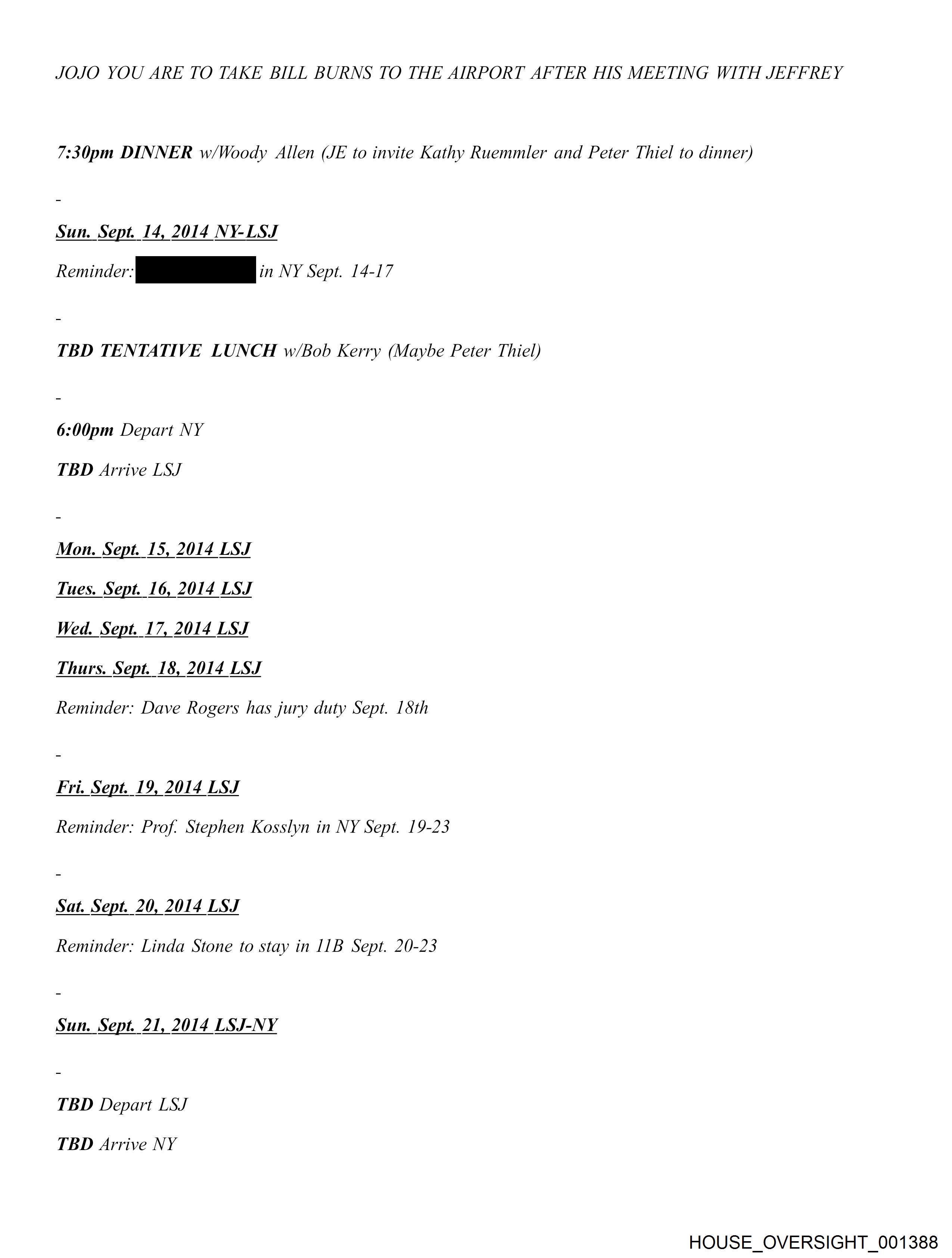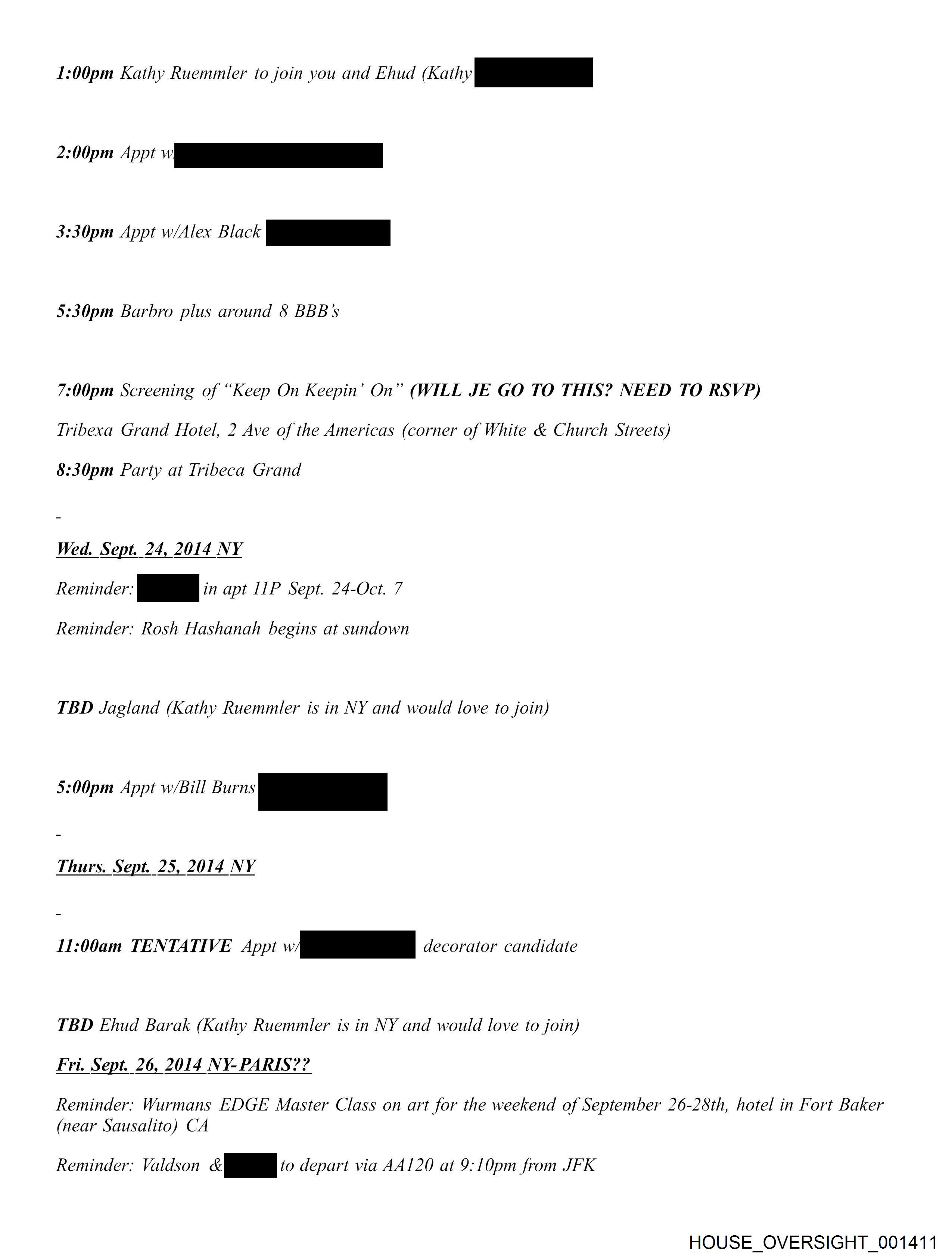 TBD (Kathy Ruemmler is in NY and would love to join)