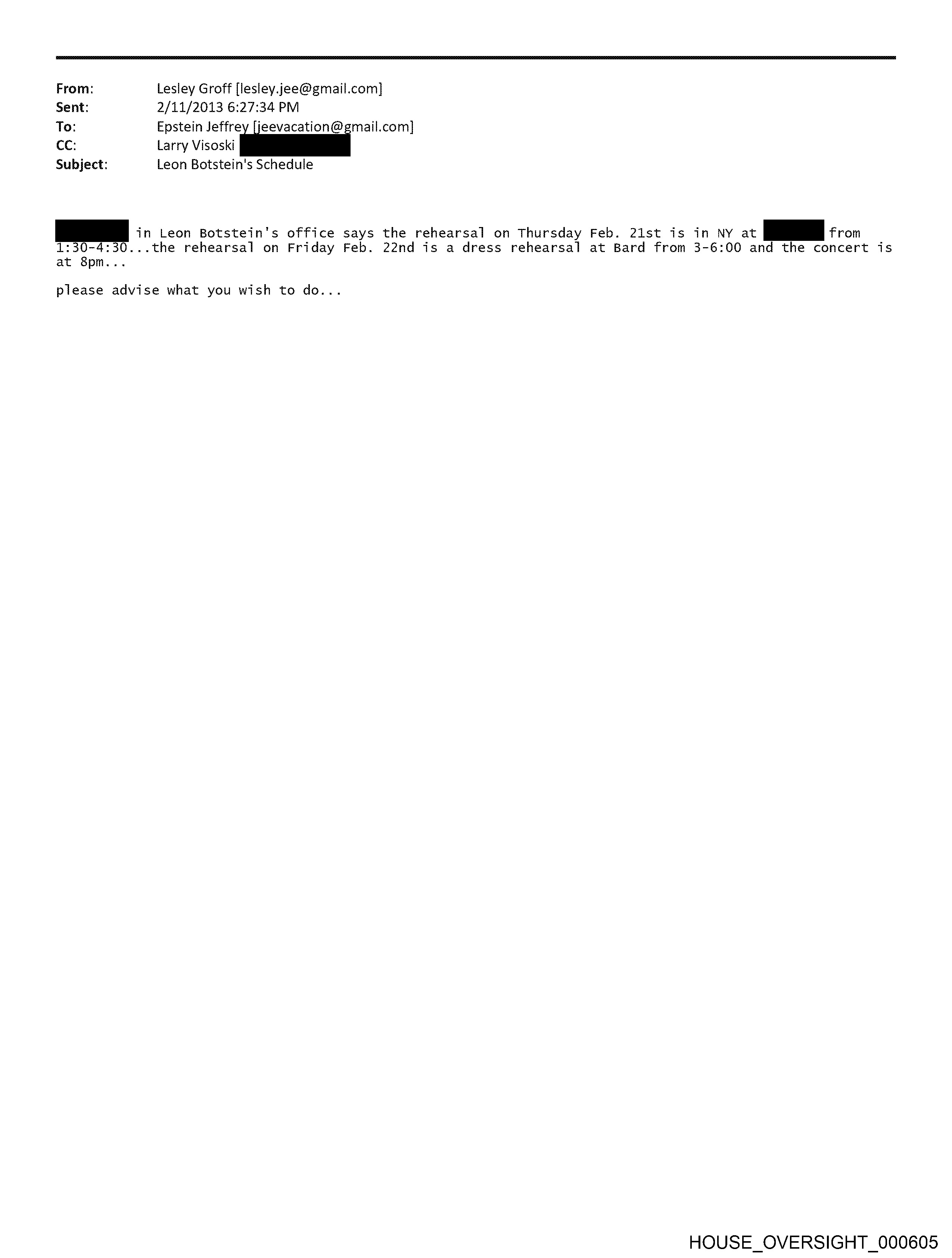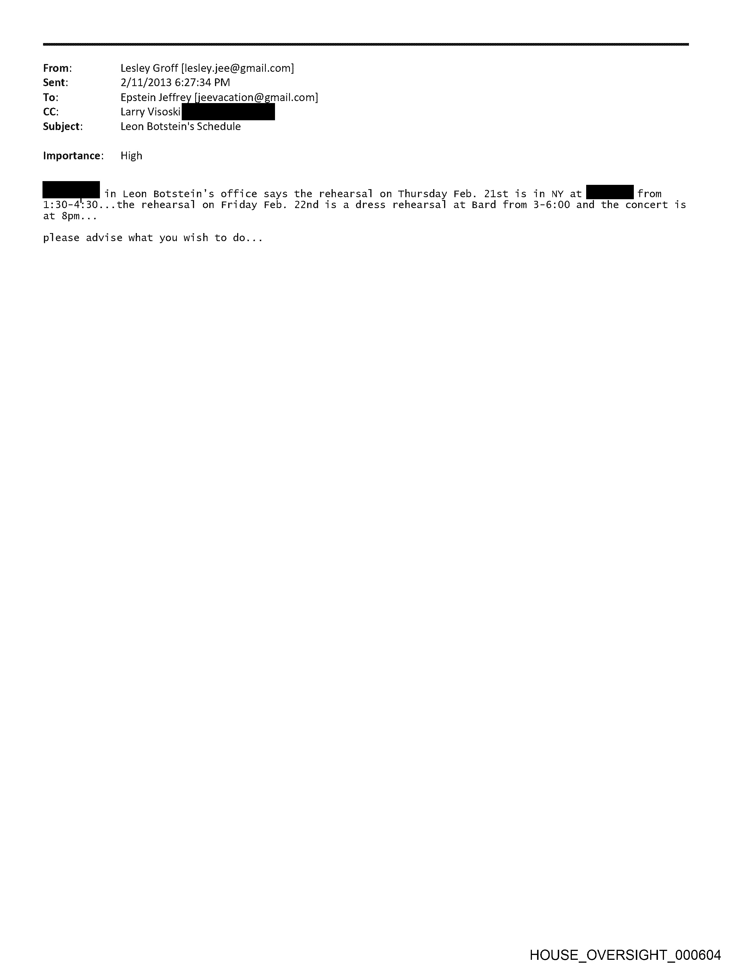 a in Leon Botstein's office says the rehearsal on Thursday Feb. 21st is in NY at from