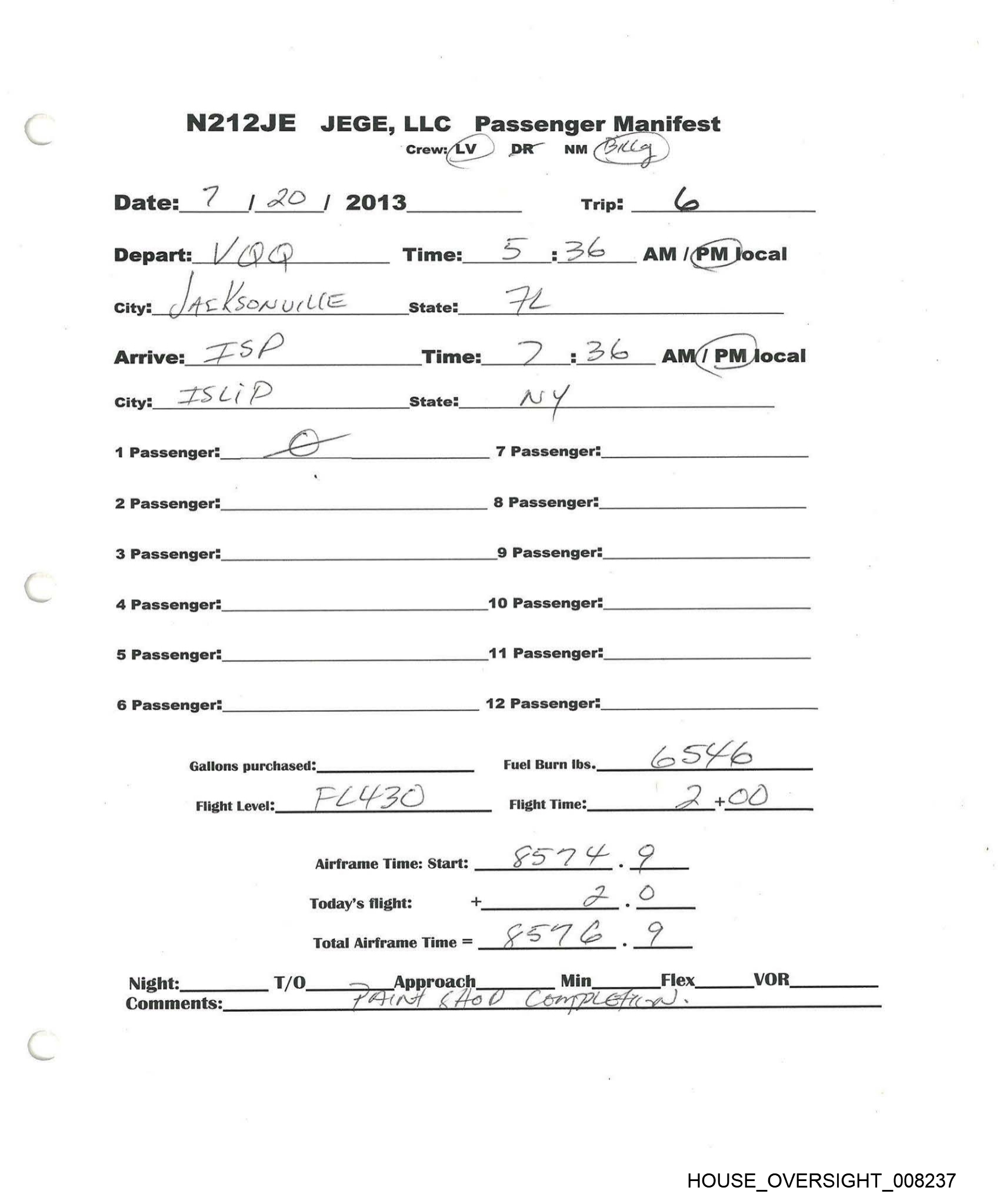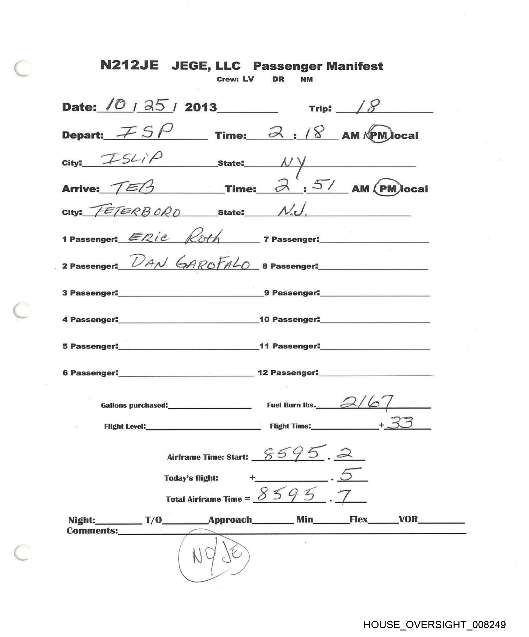 ~N212JE JEGE,LLC Passenger Manifest