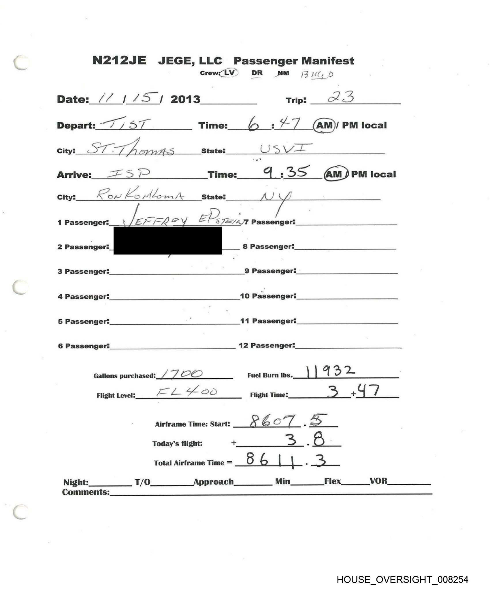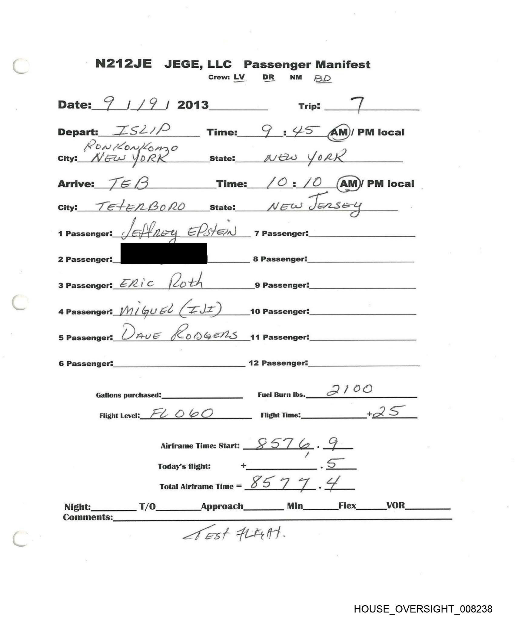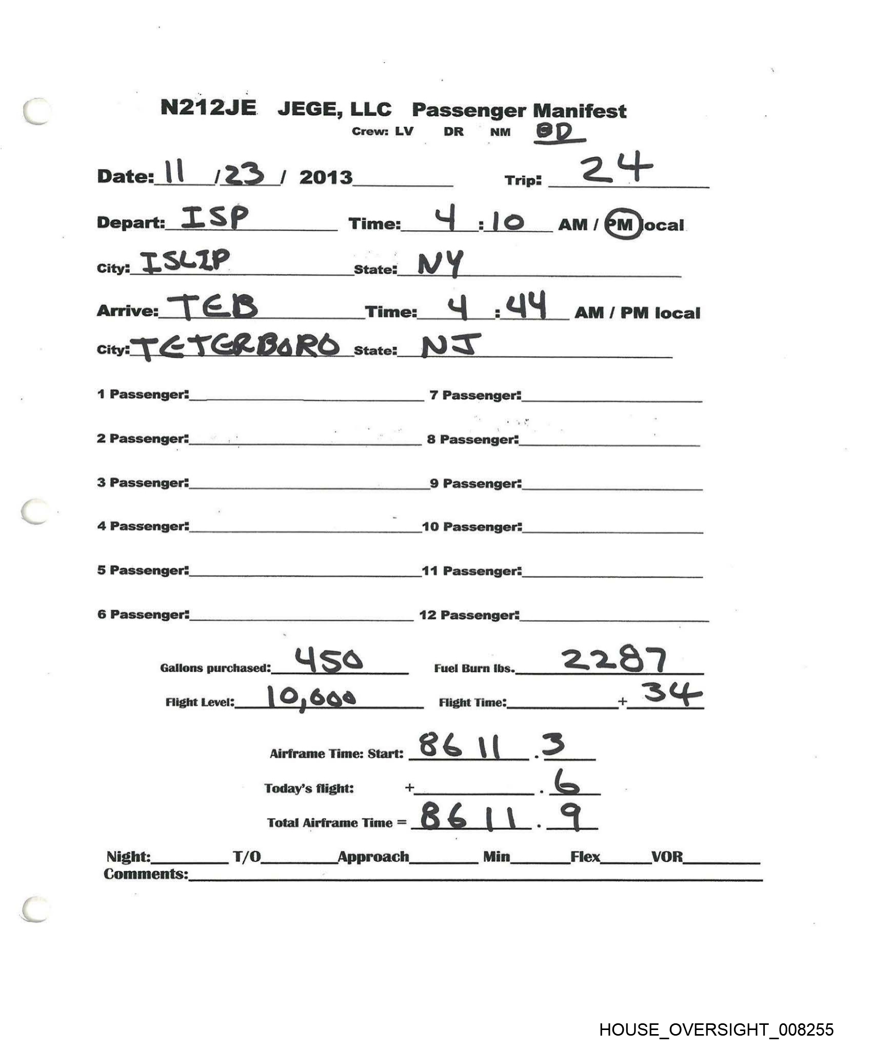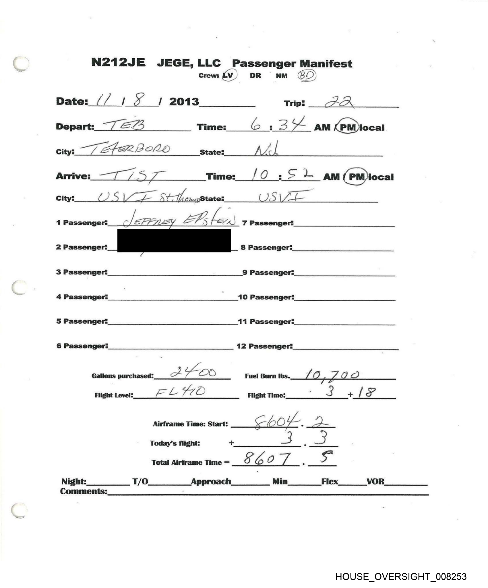 N212JE JEGE,LLC Passenger Manifest