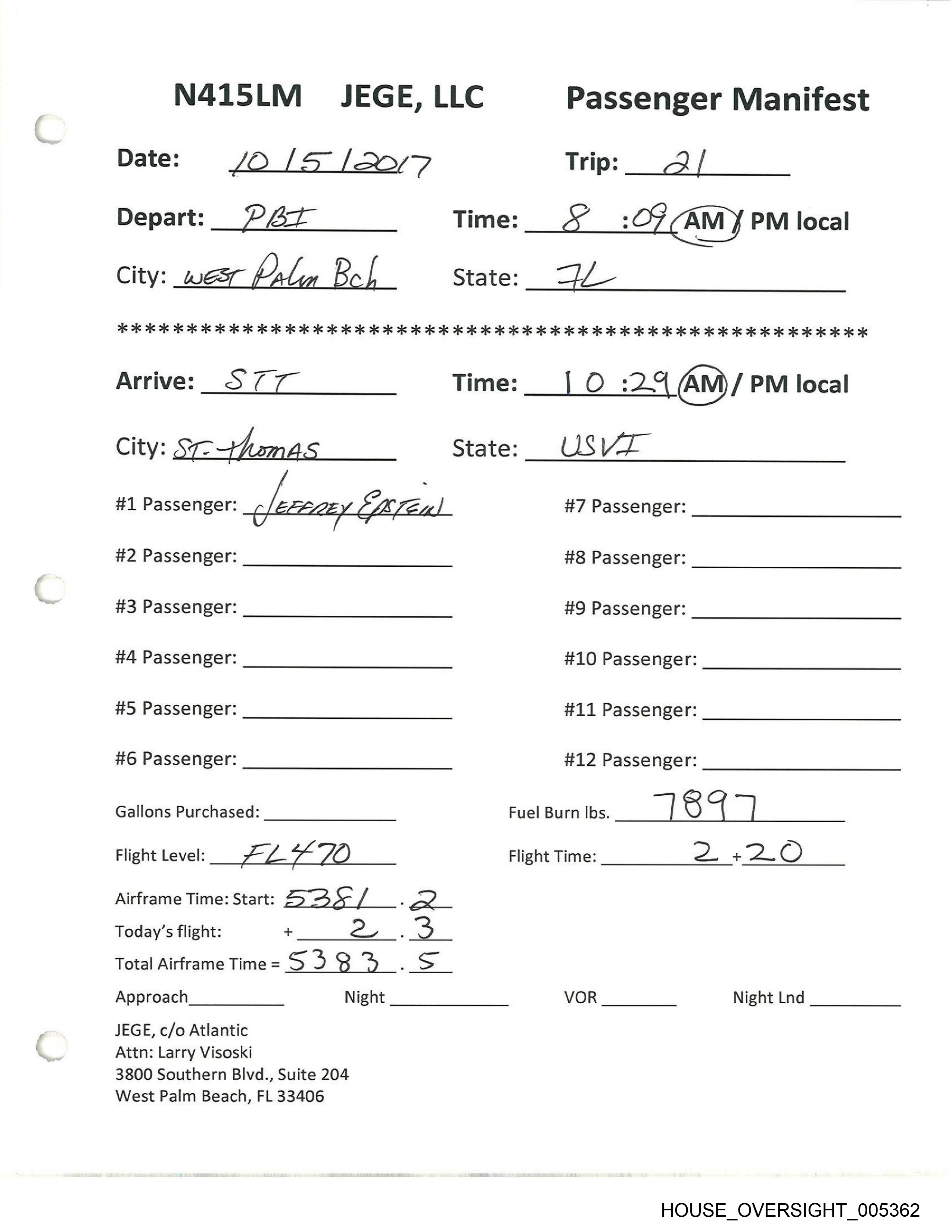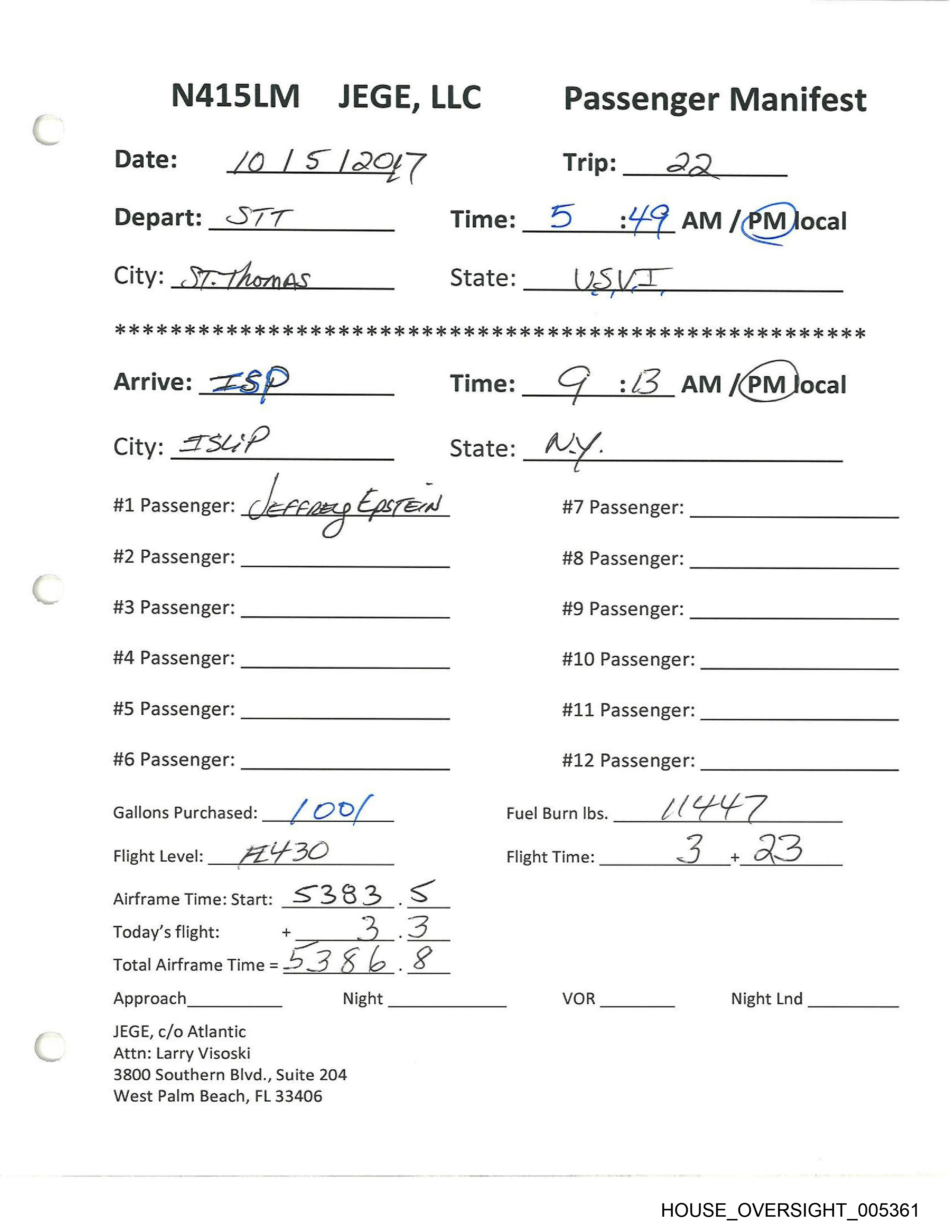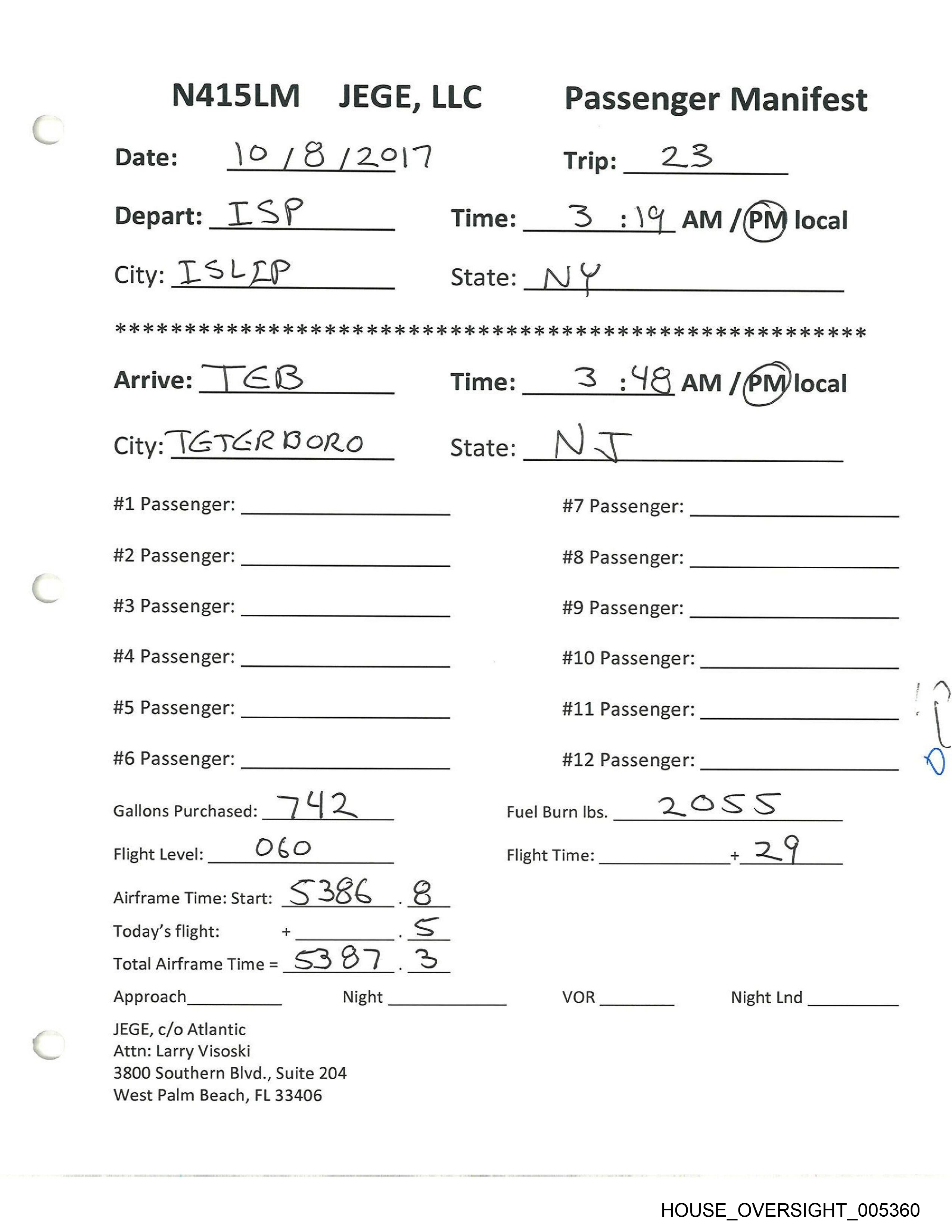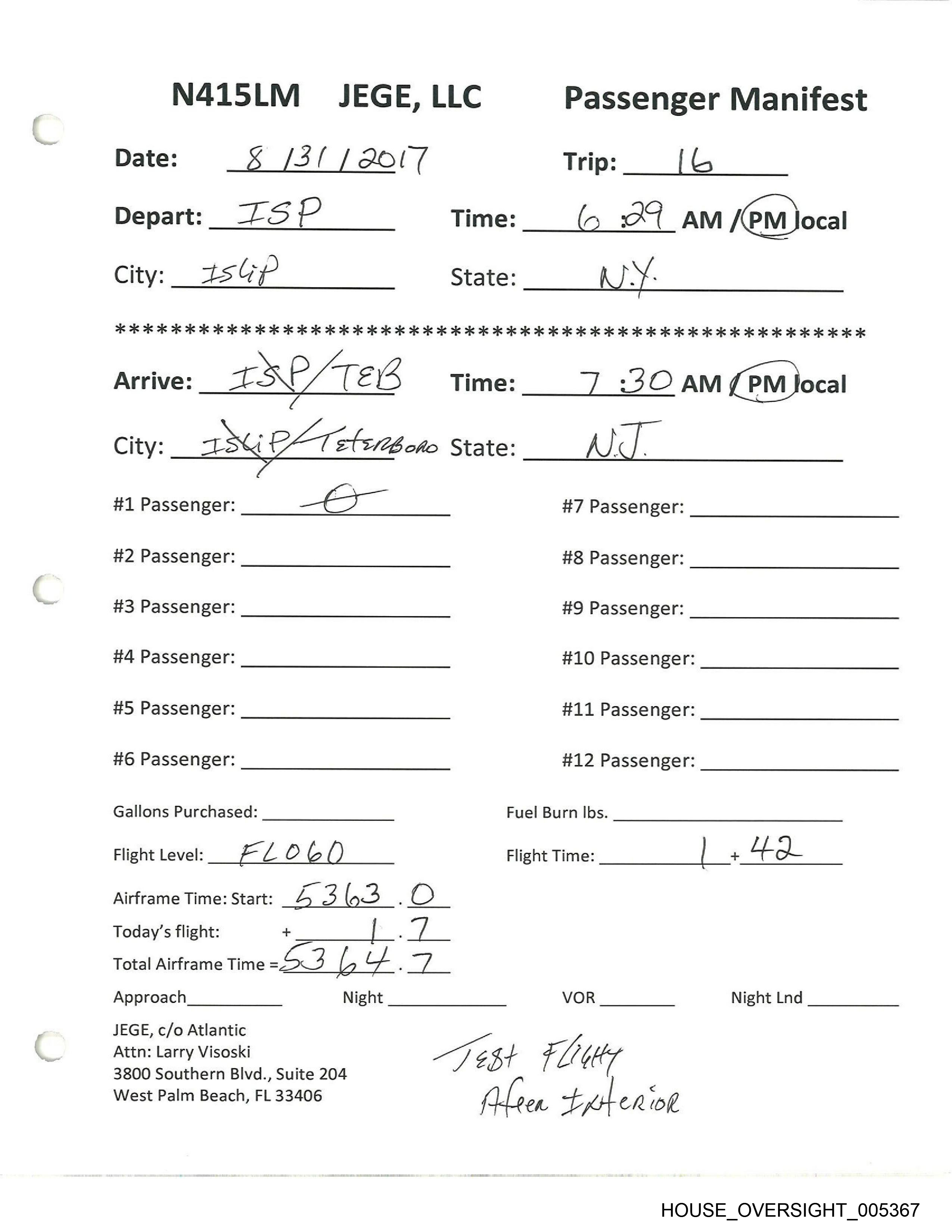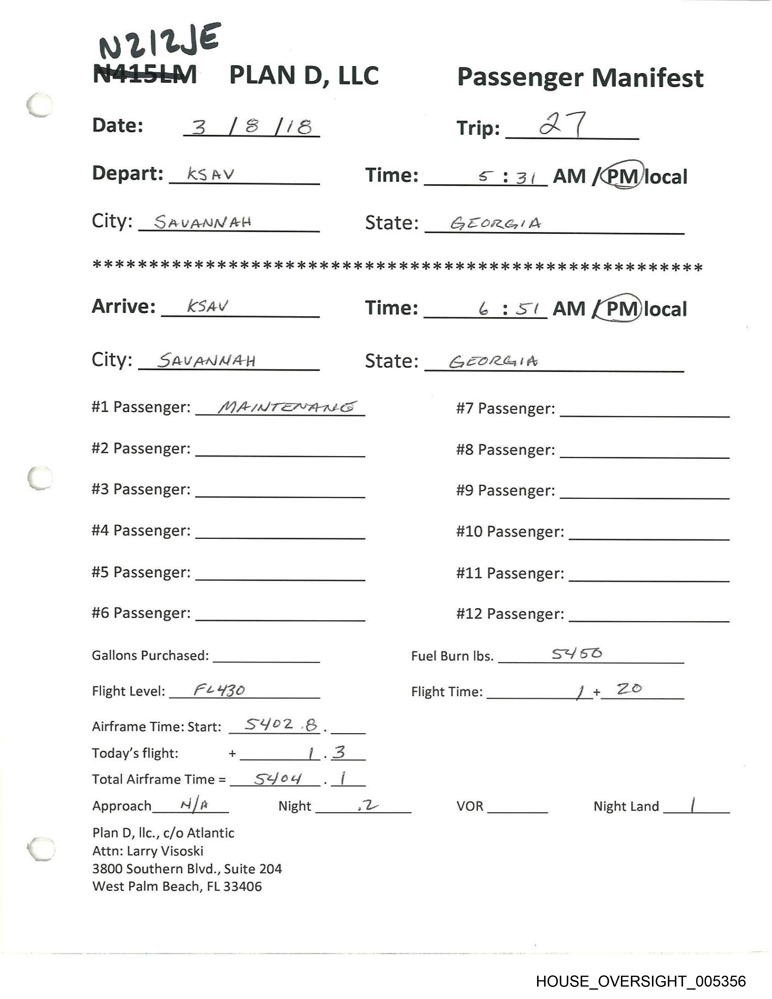 N415LM_ PLAN D, LLC Passenger Manifest