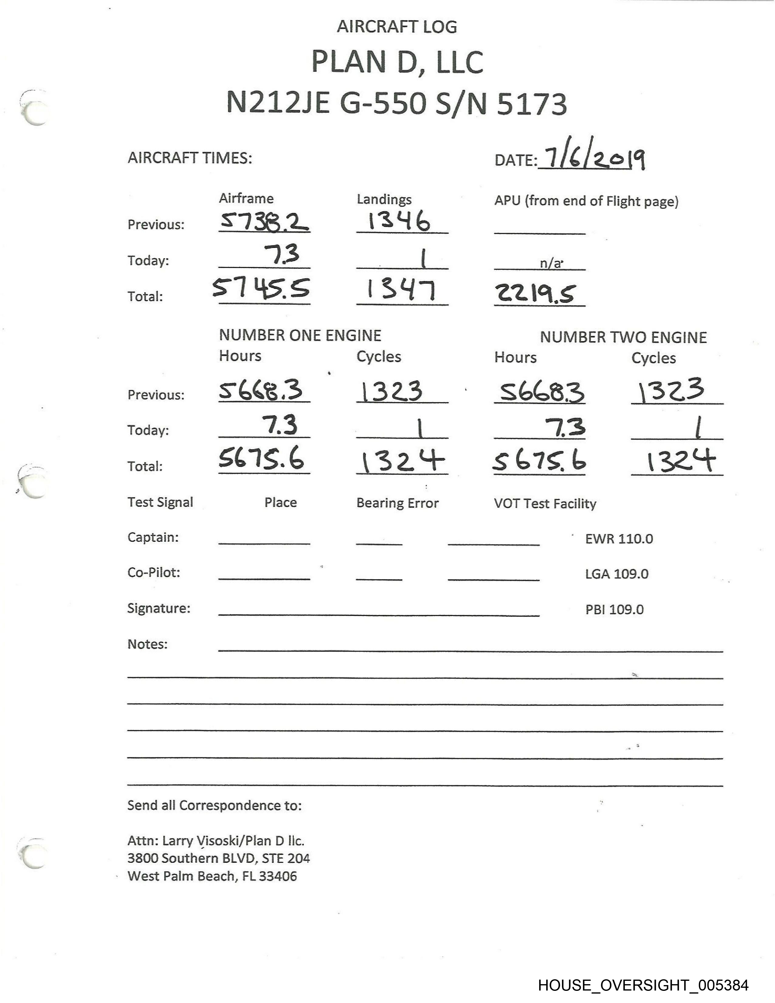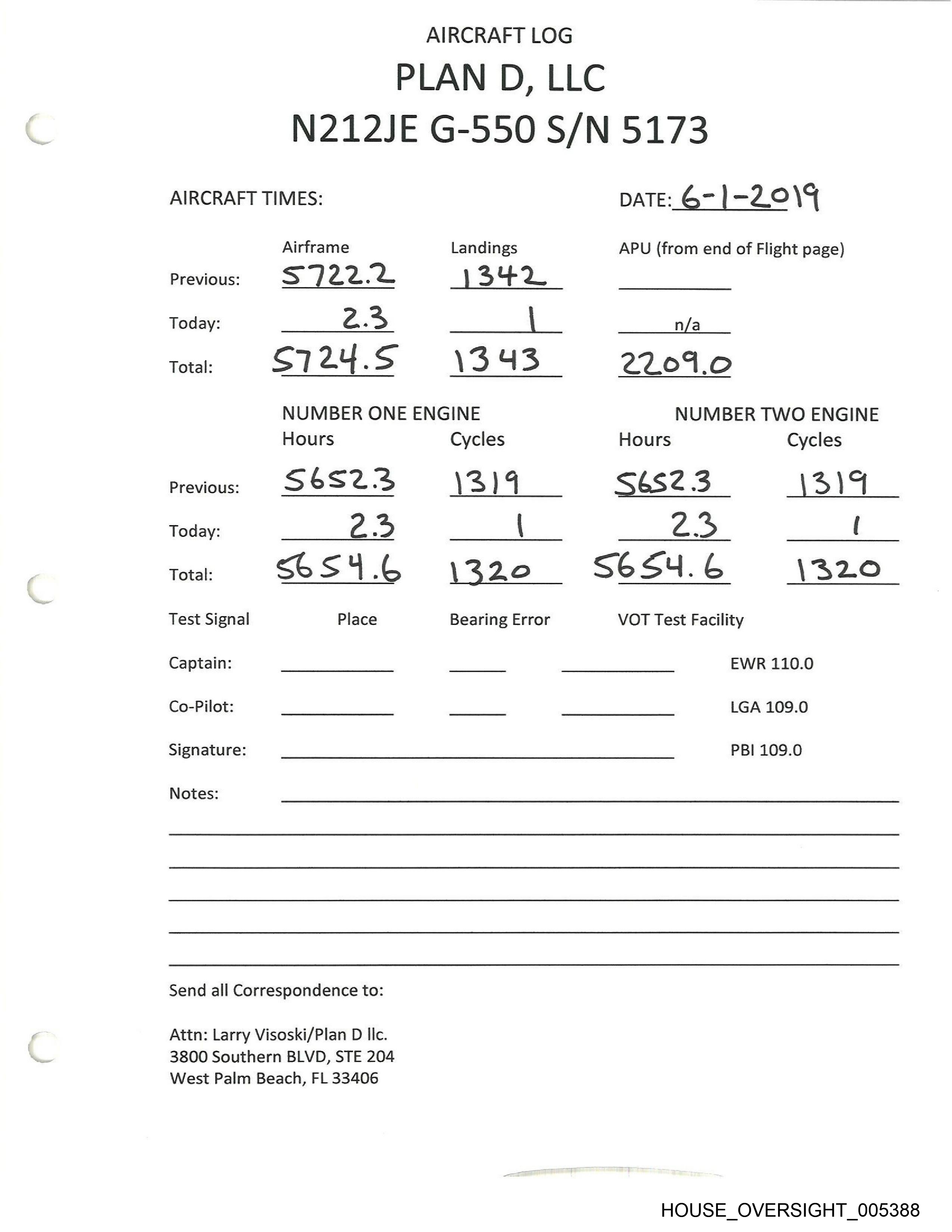 AIRCRAFT LOG