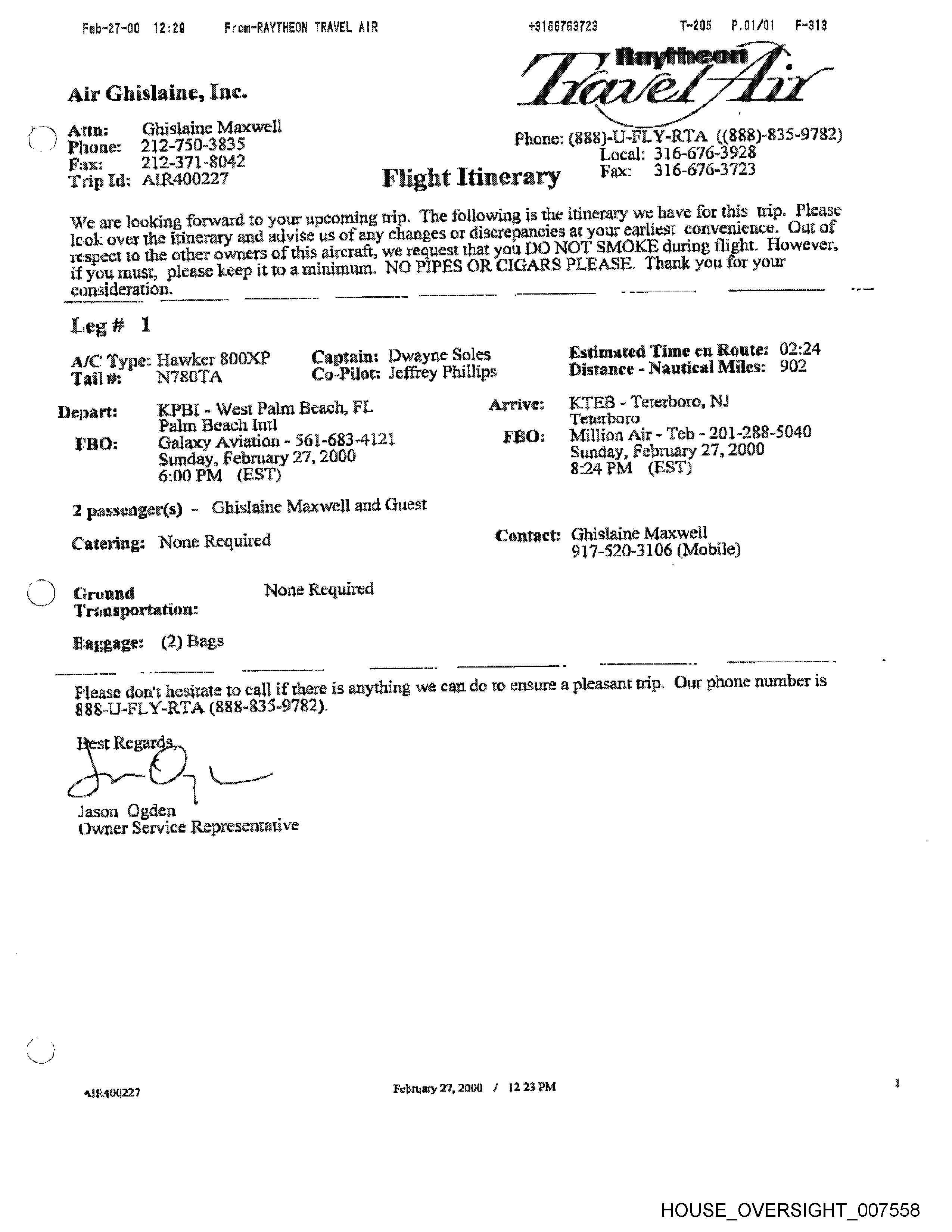 2 passenger(s) - Ghislaine Maxwell and Guest